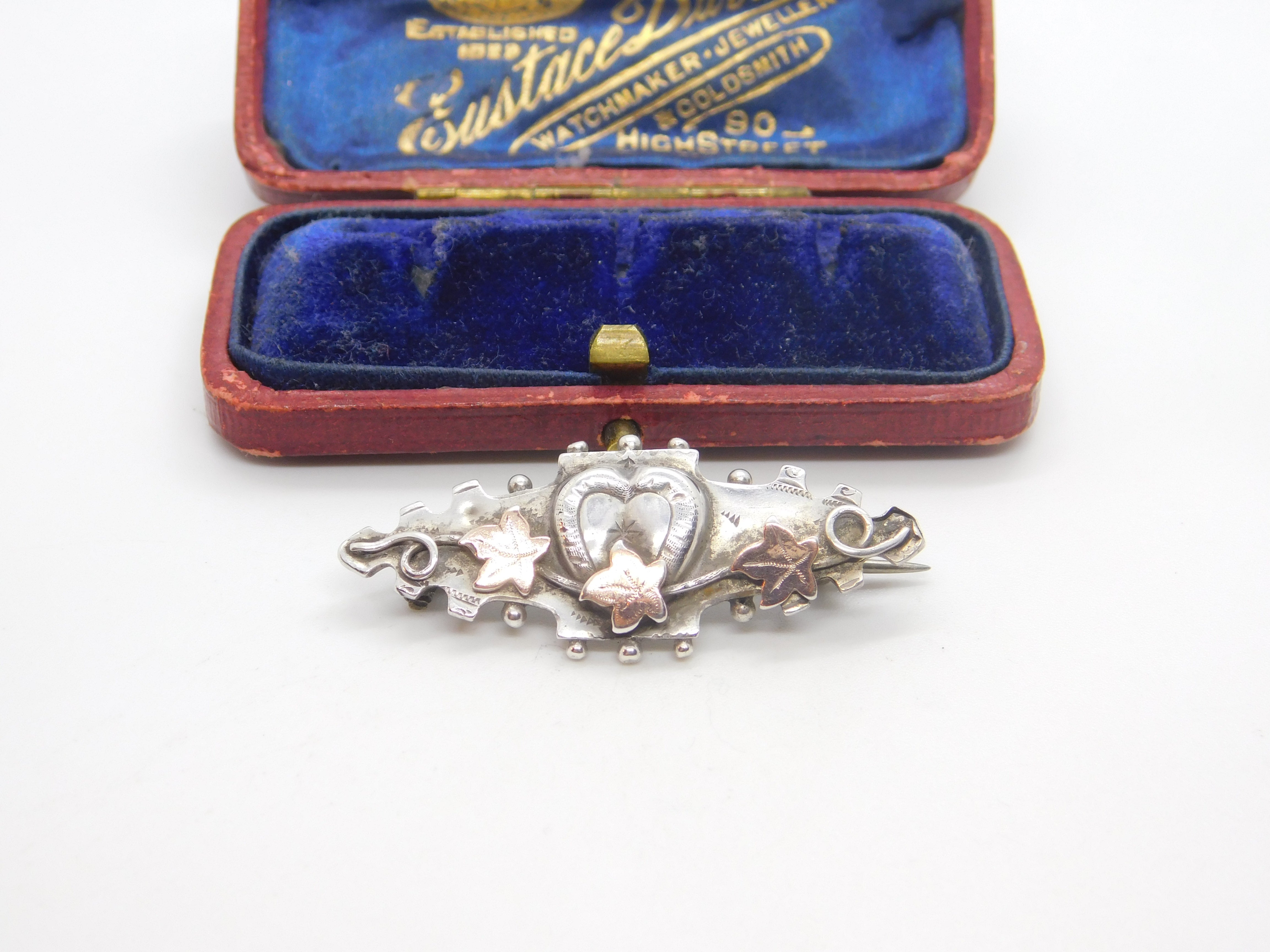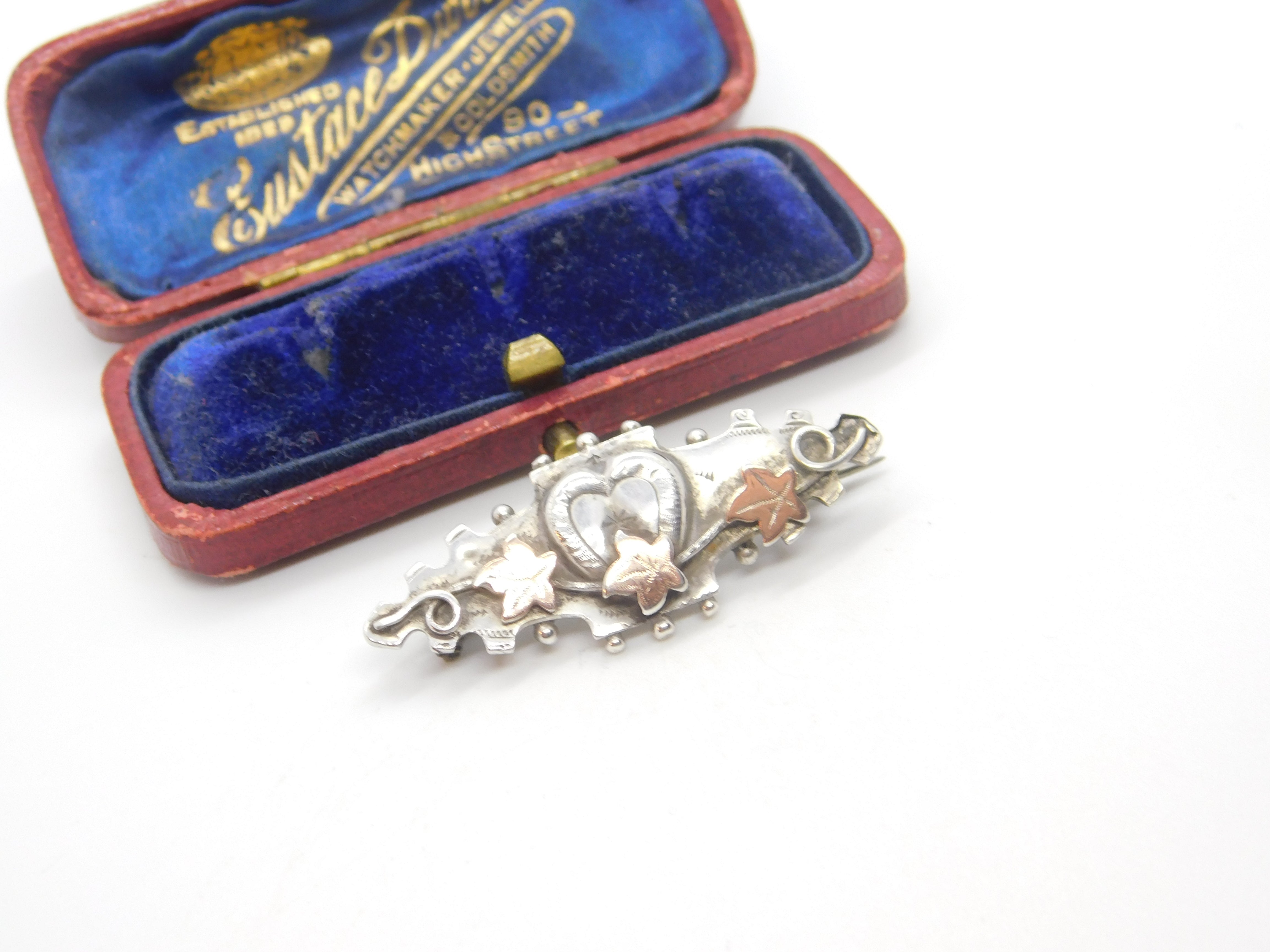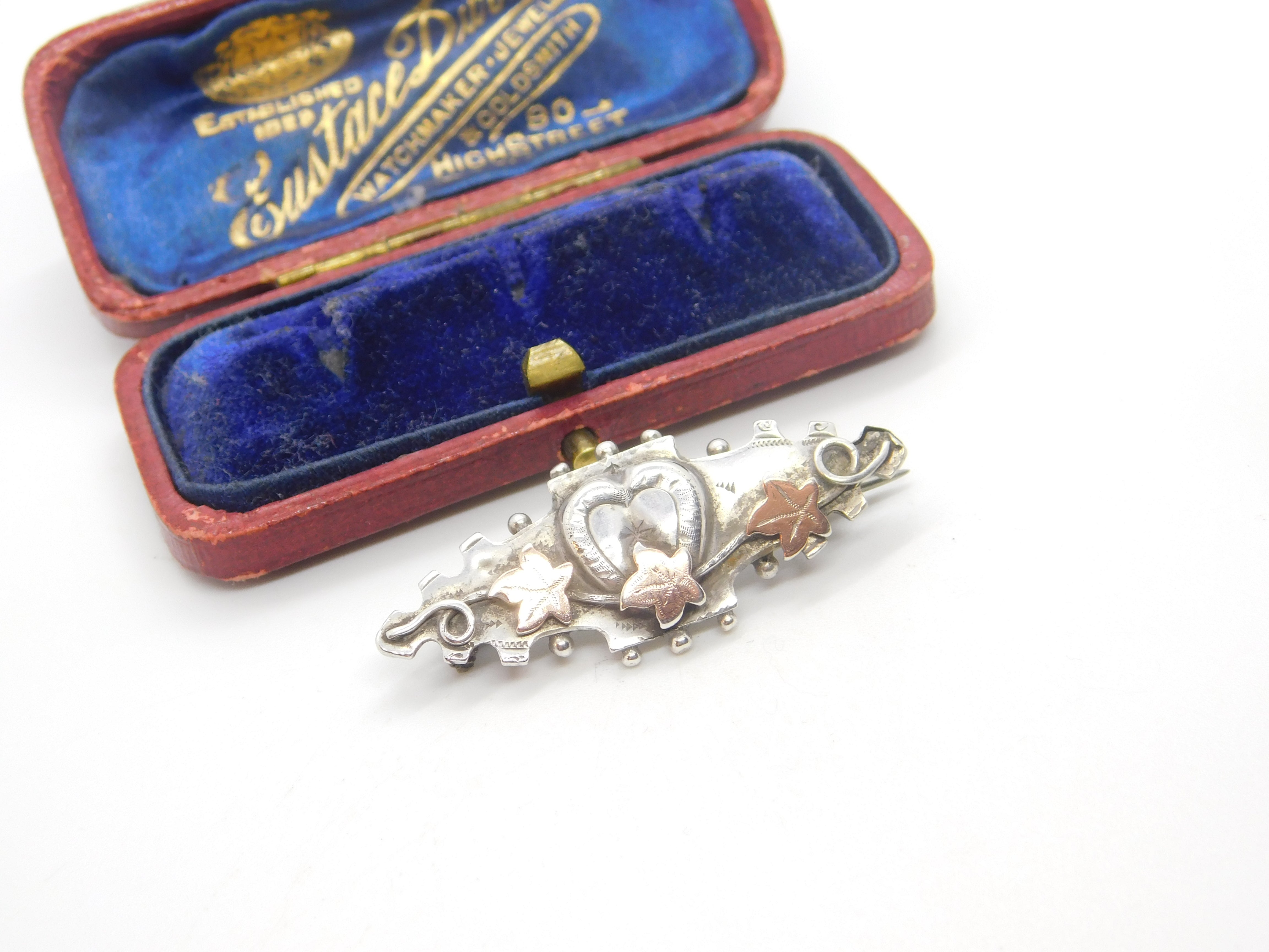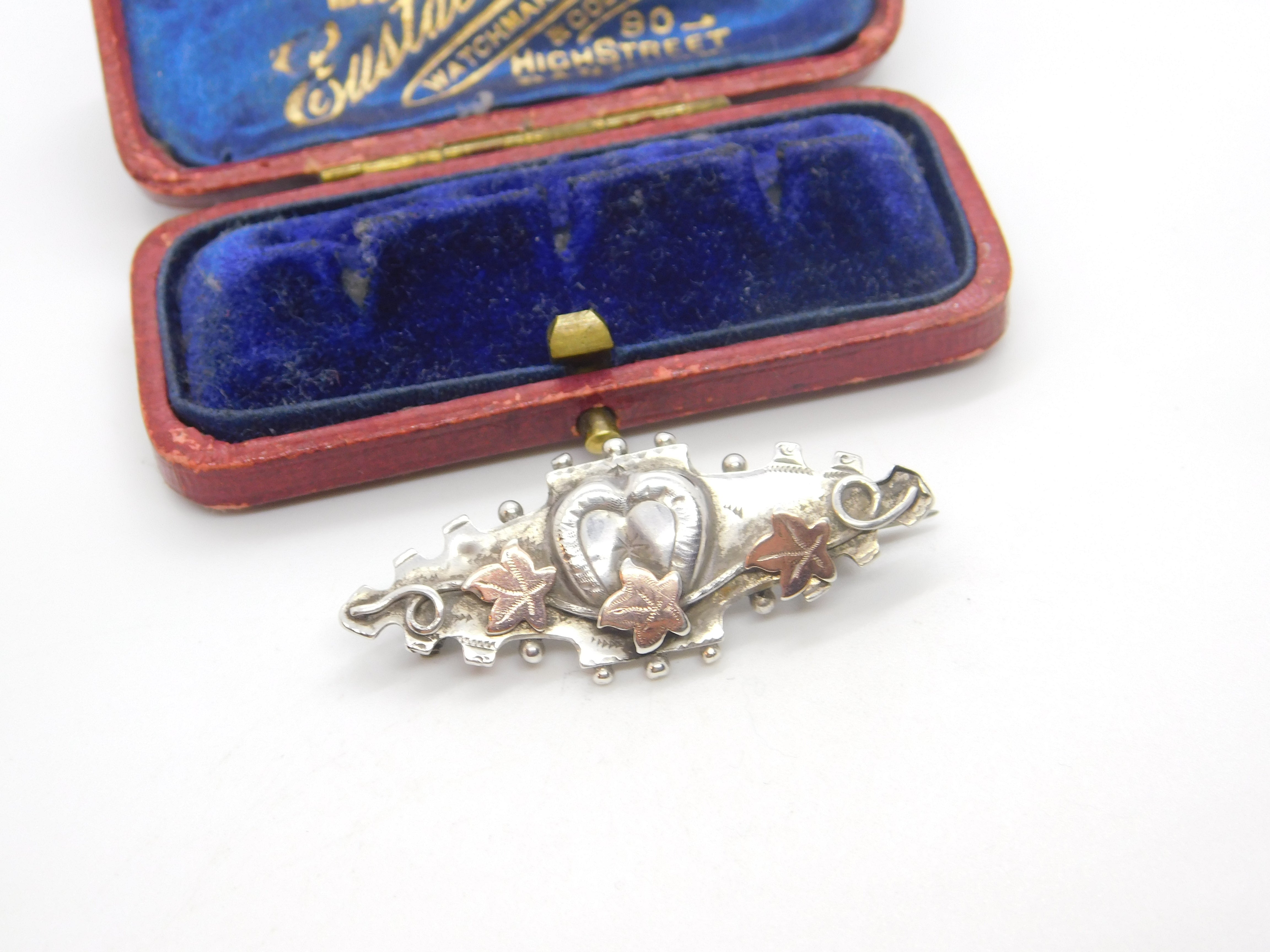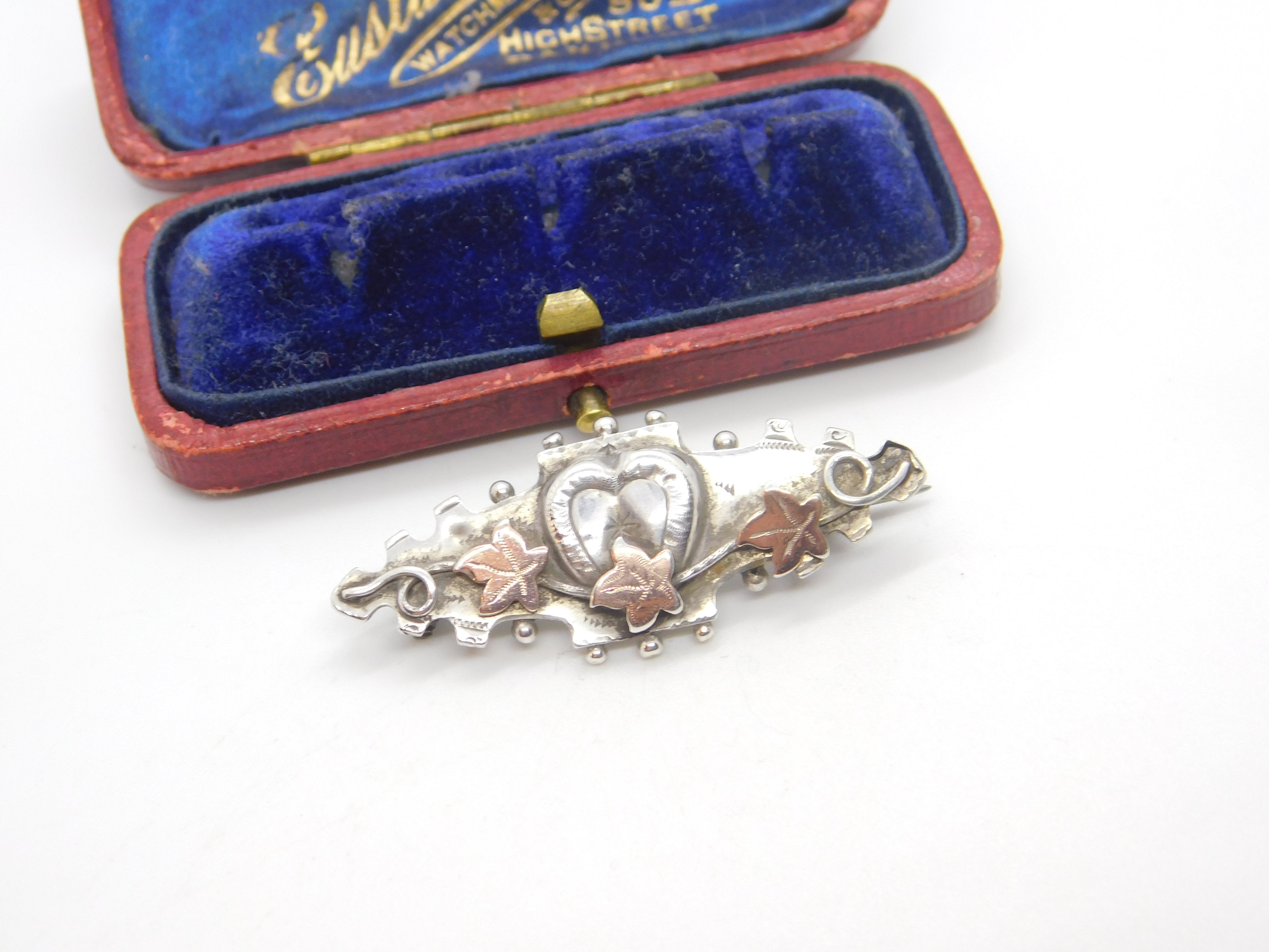Victorian 9ct Gold & Sterling Silver Ivy Leaf Sweetheart Brooch 1895 Chester