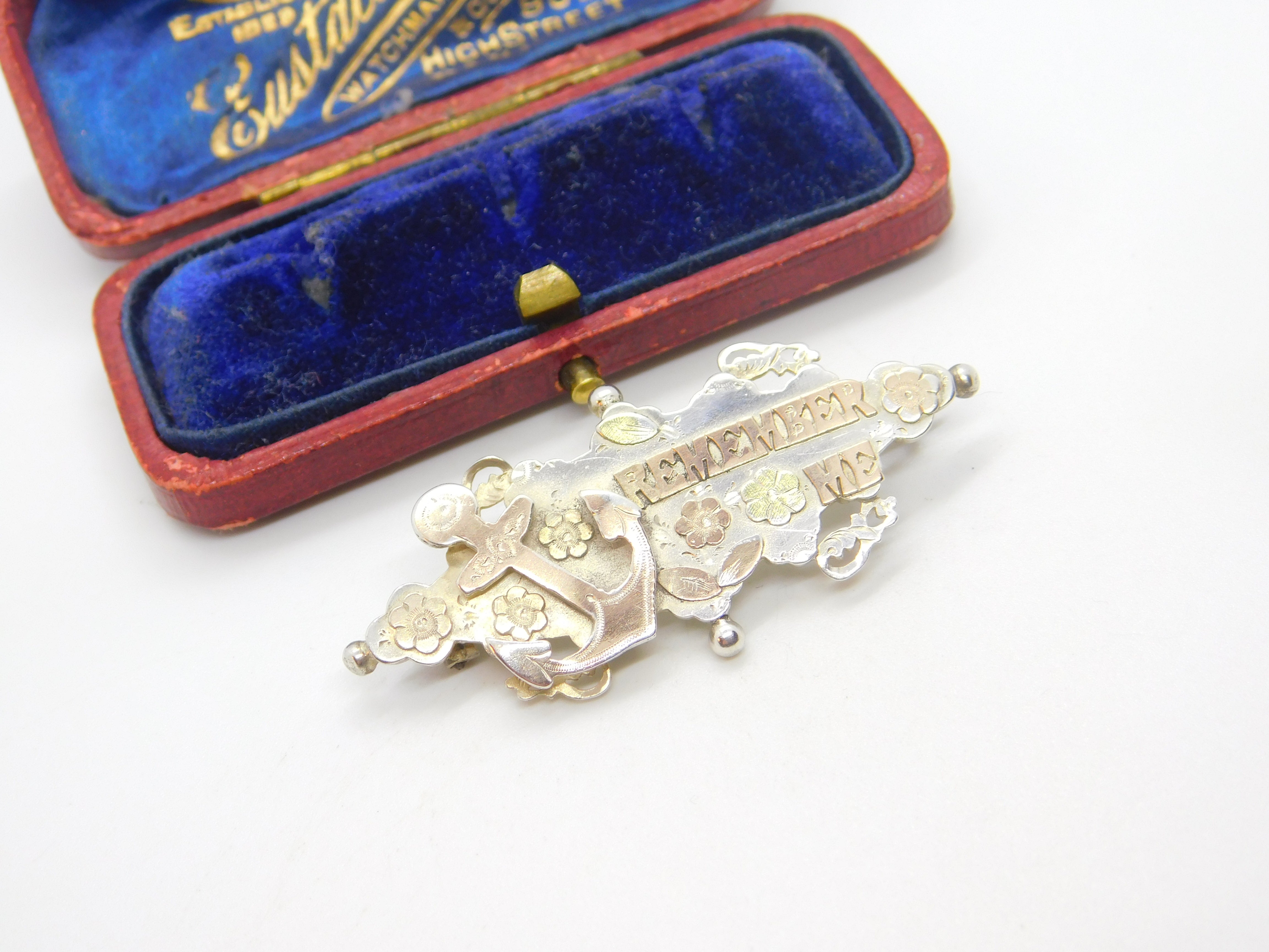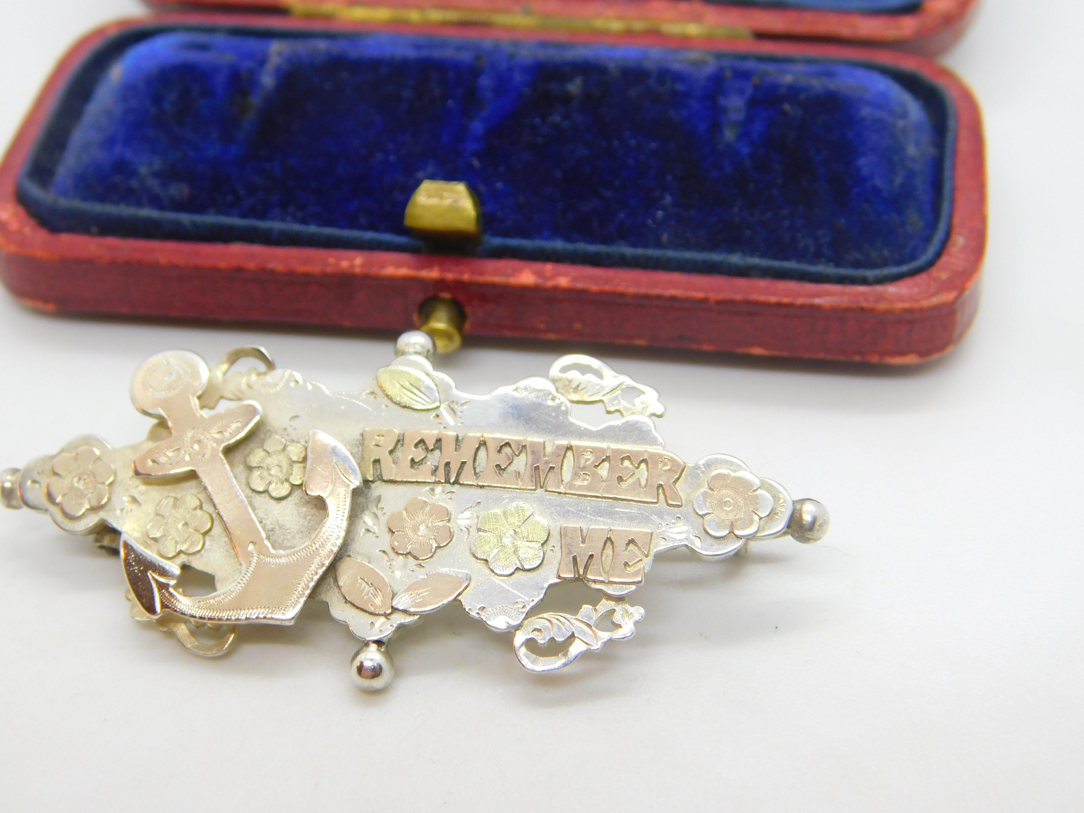 Details: A fantastic and wonderfully designed antique Victorian 9ct gold on sterling silver Remember Me anchor of hope naval sweetheart brooch with lovely detail hallmarked Birmingham 1901. This is a wonderful item that would make a perfect gift or addition to any collection. The BOX pictured is for PRESENTATION ONLY and is NOT included in the listings but used to frame the pictures unless specifically stated otherwise.