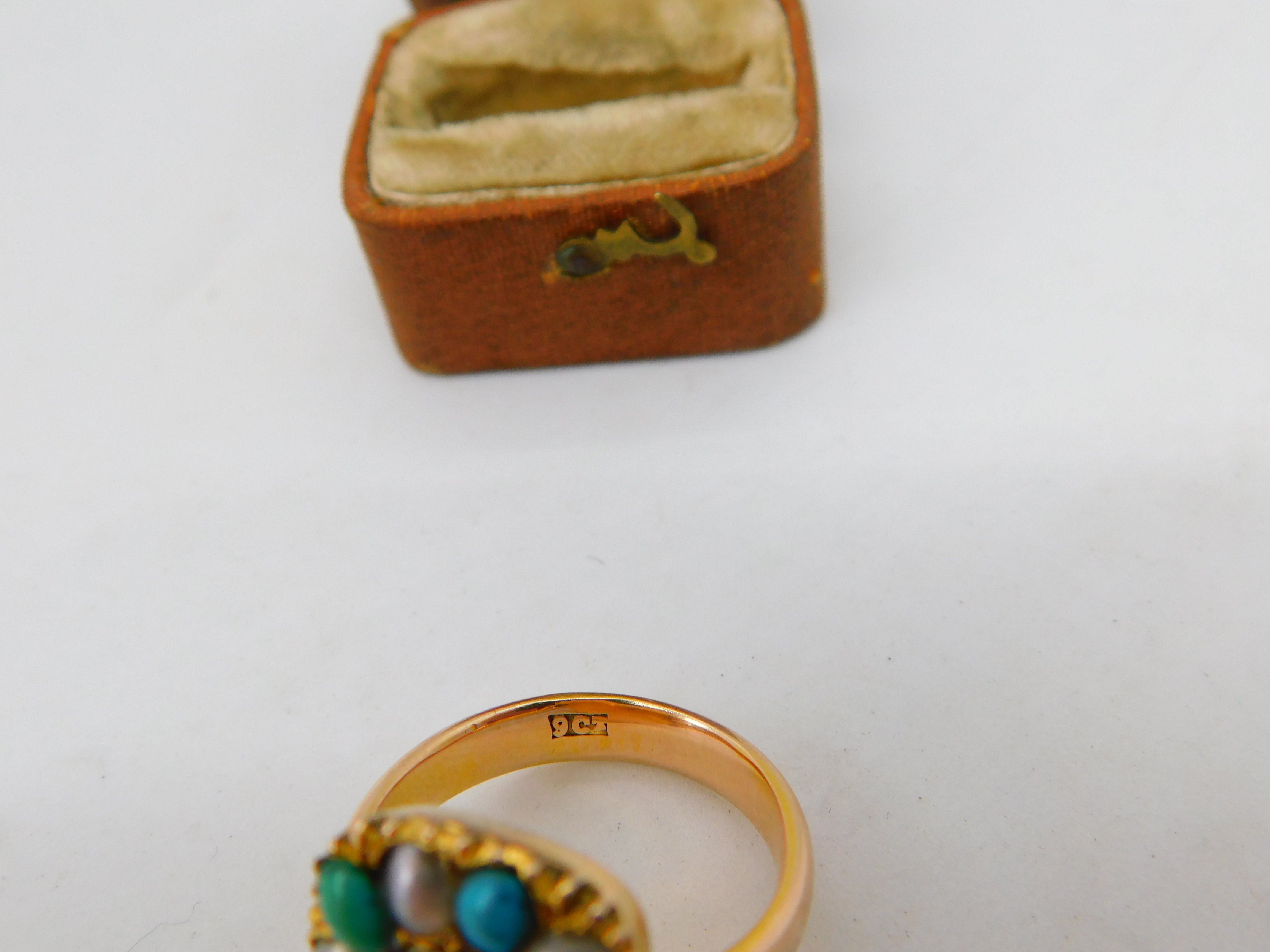 Victorian 9ct Gold, Turquoise & Pearl Hair Set Mourning Ring Antique c1840