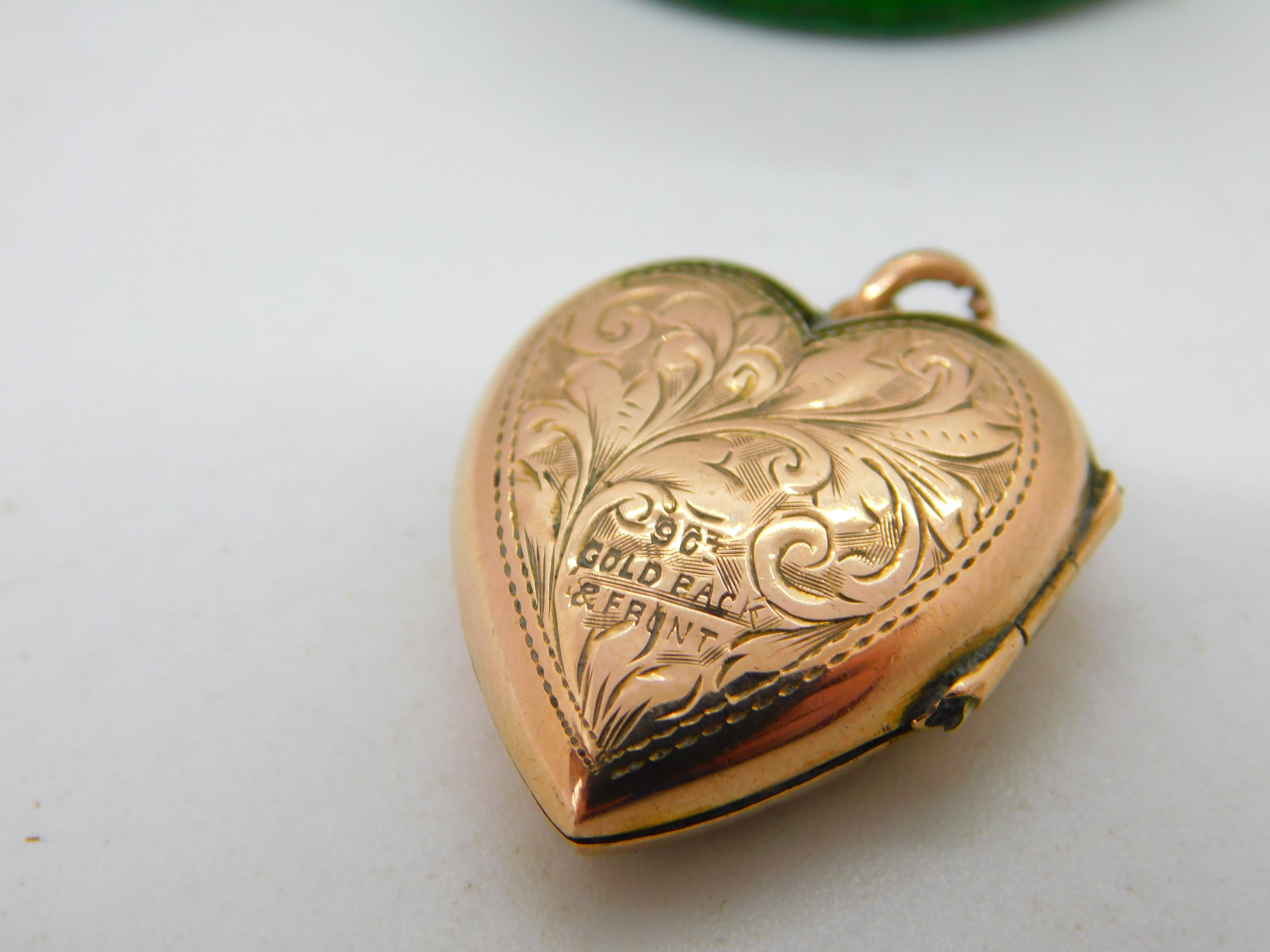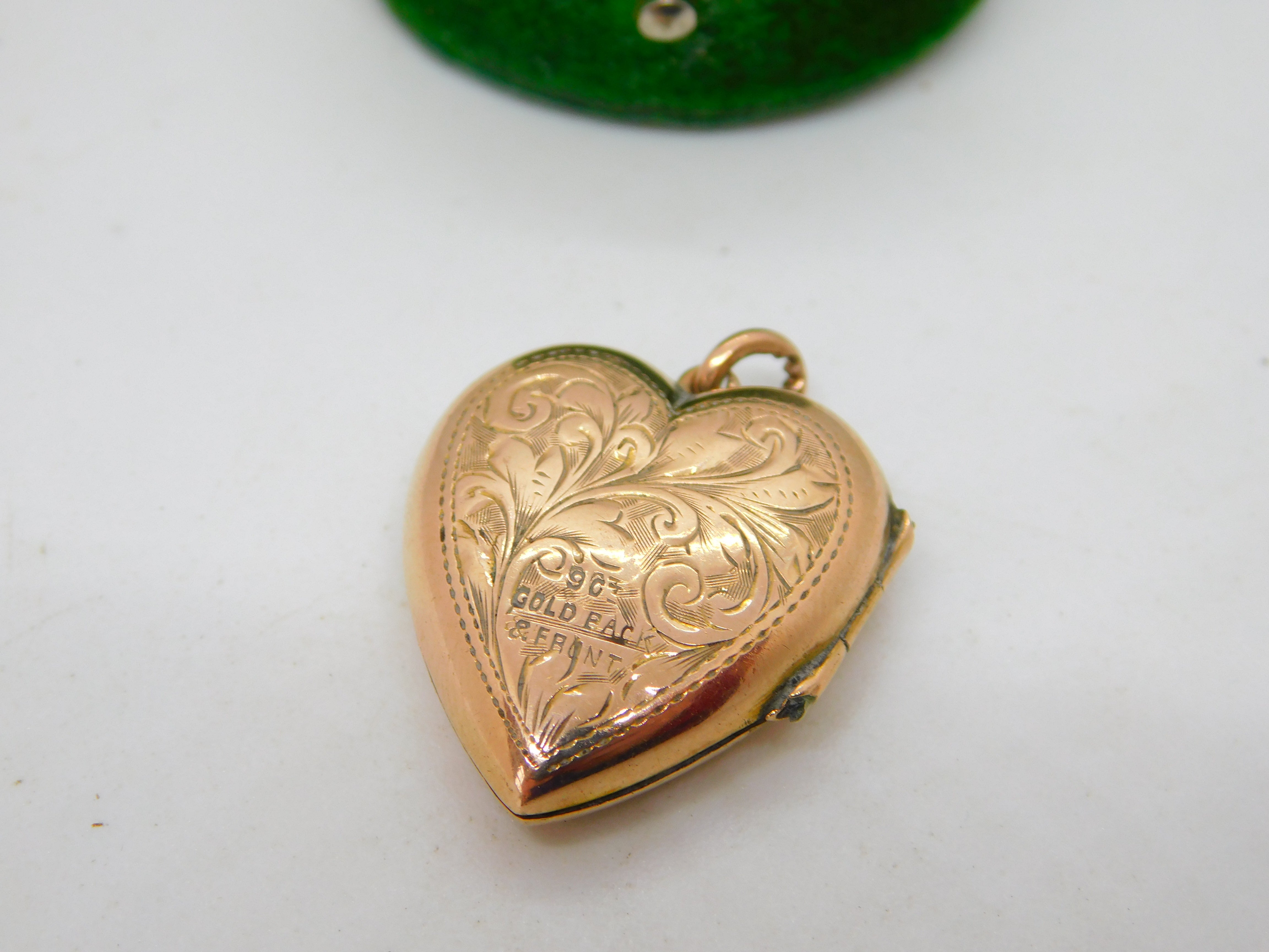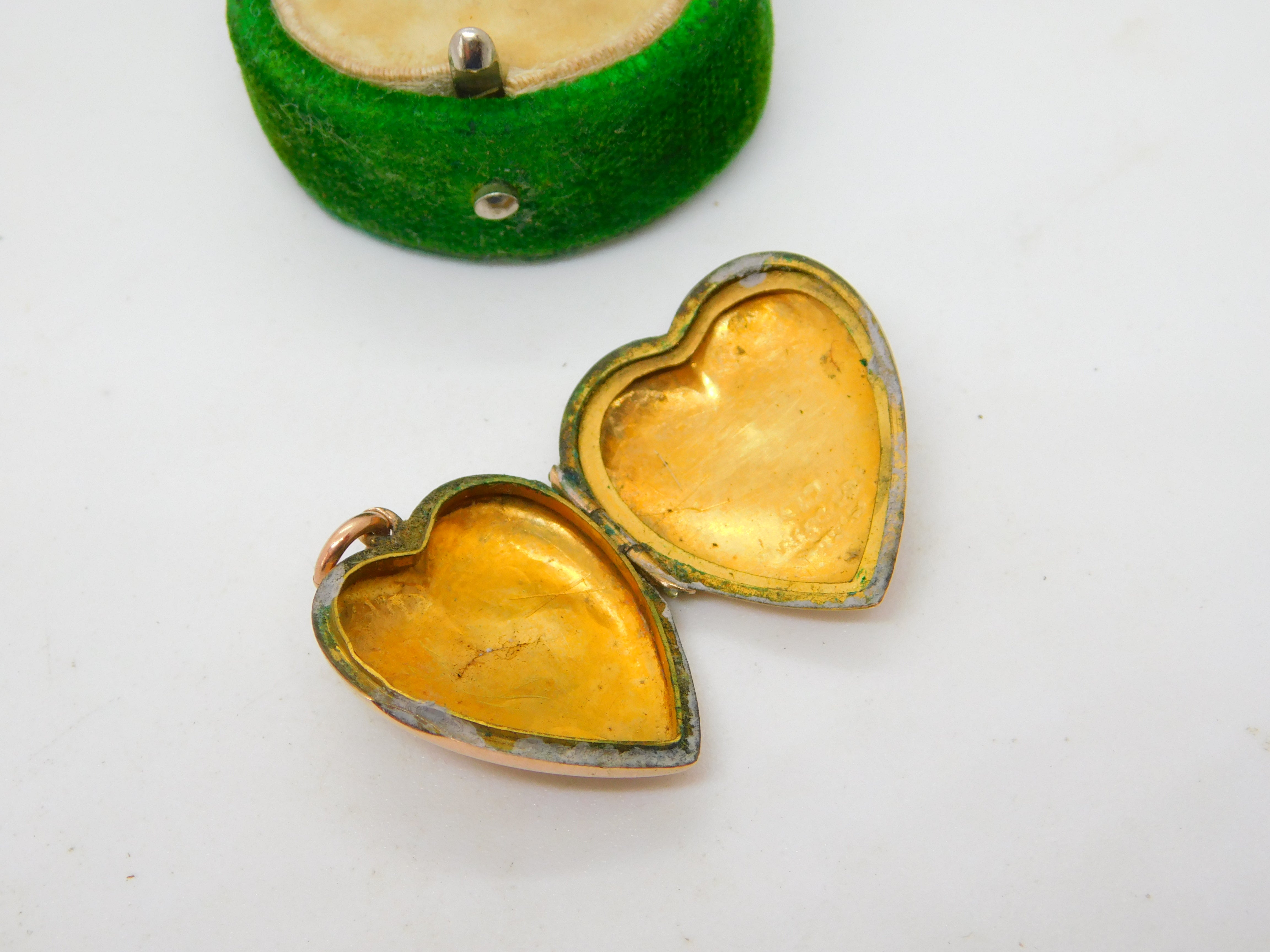 Victorian 9ct Rose Gold Back & Front Floral Heart Locket Pendant Antique c1890