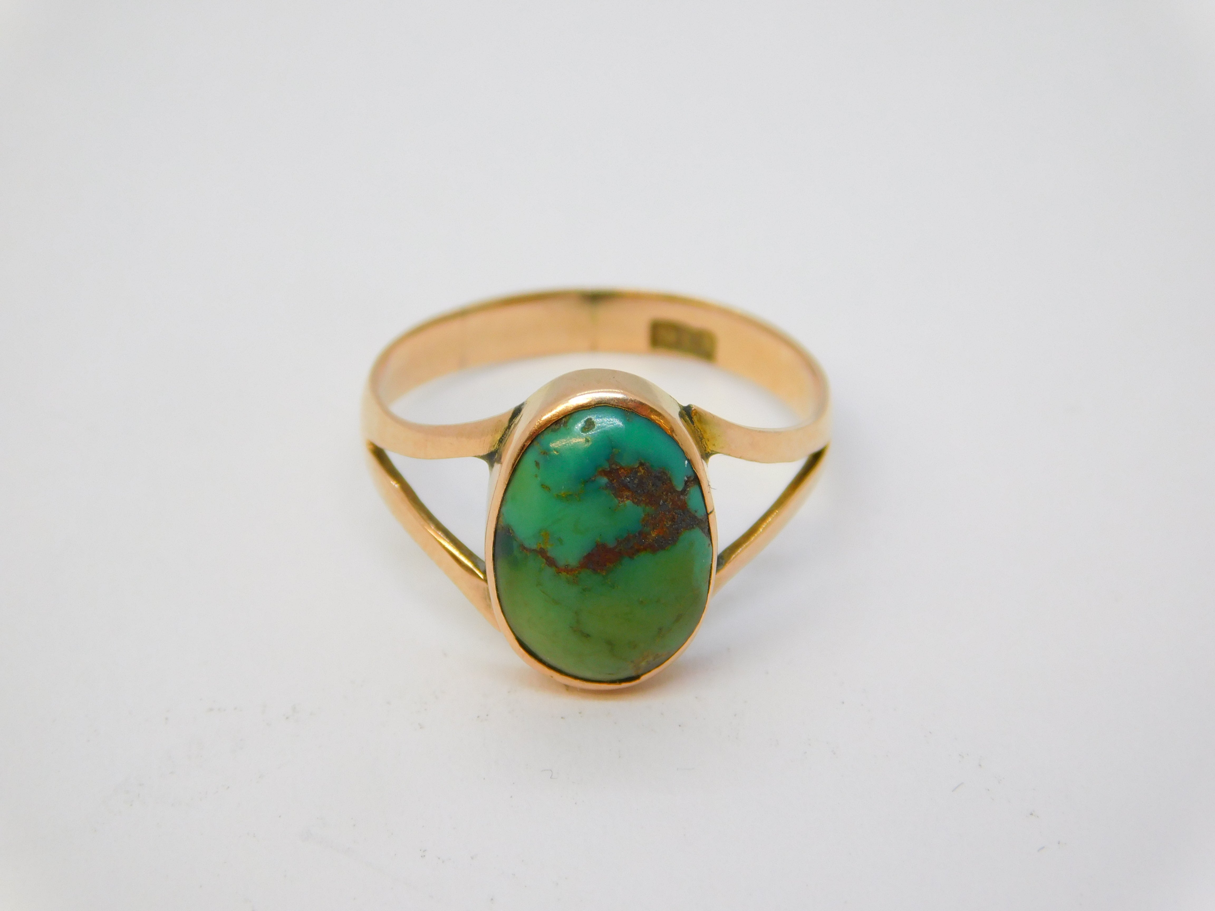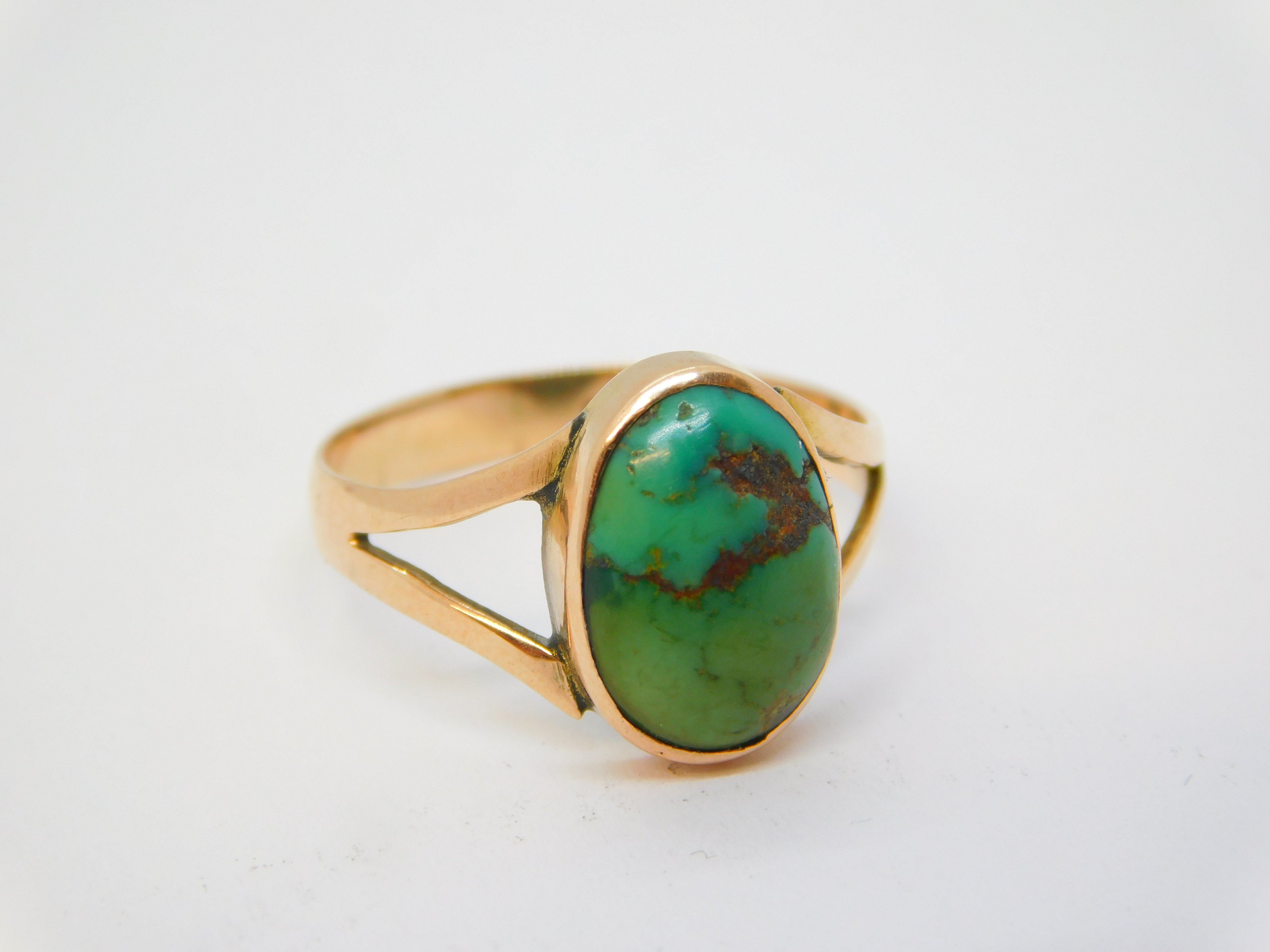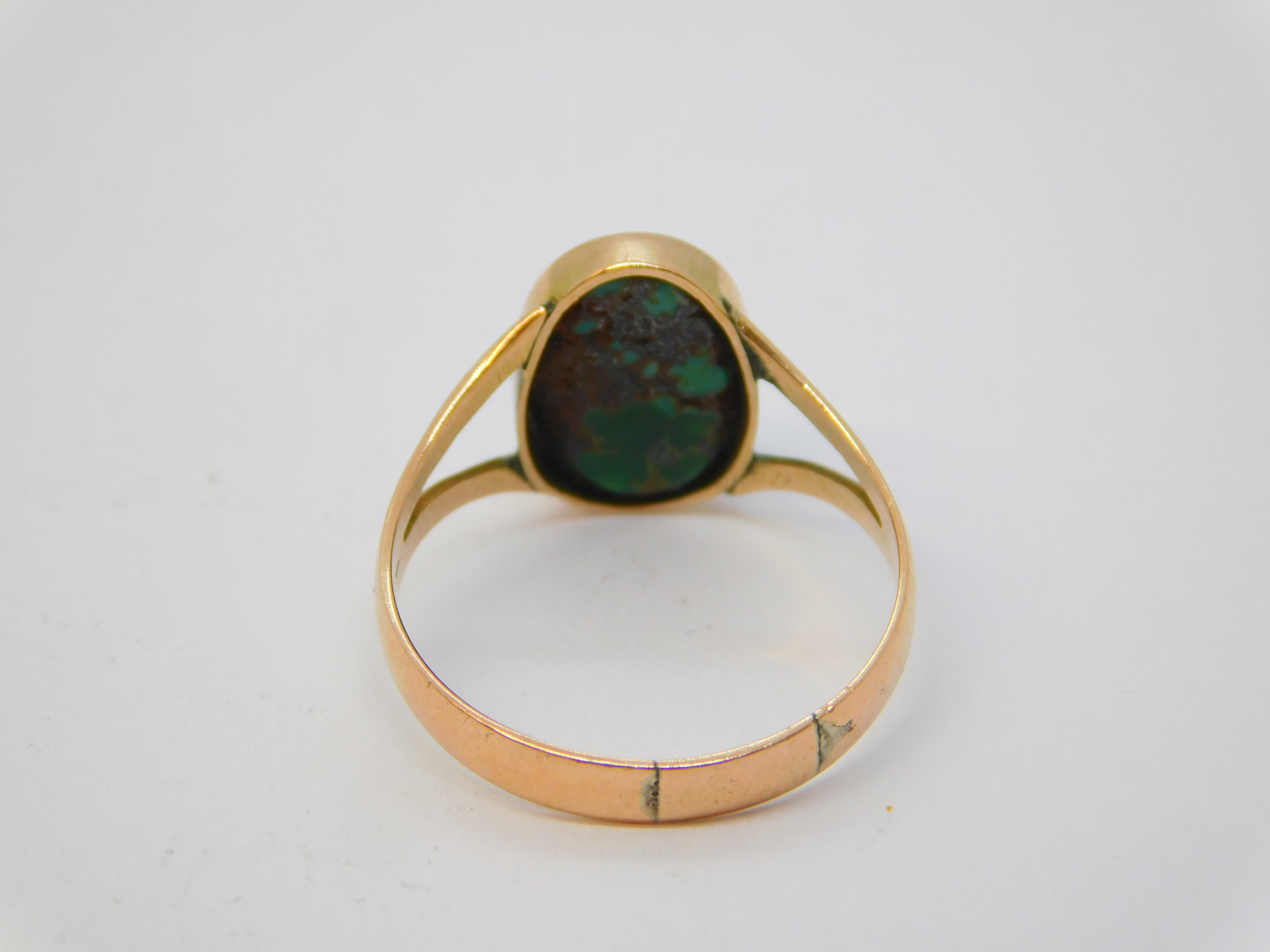 Victorian 9ct Rose Gold & Cabochon Cut Turquoise Dress Ring Antique c1890