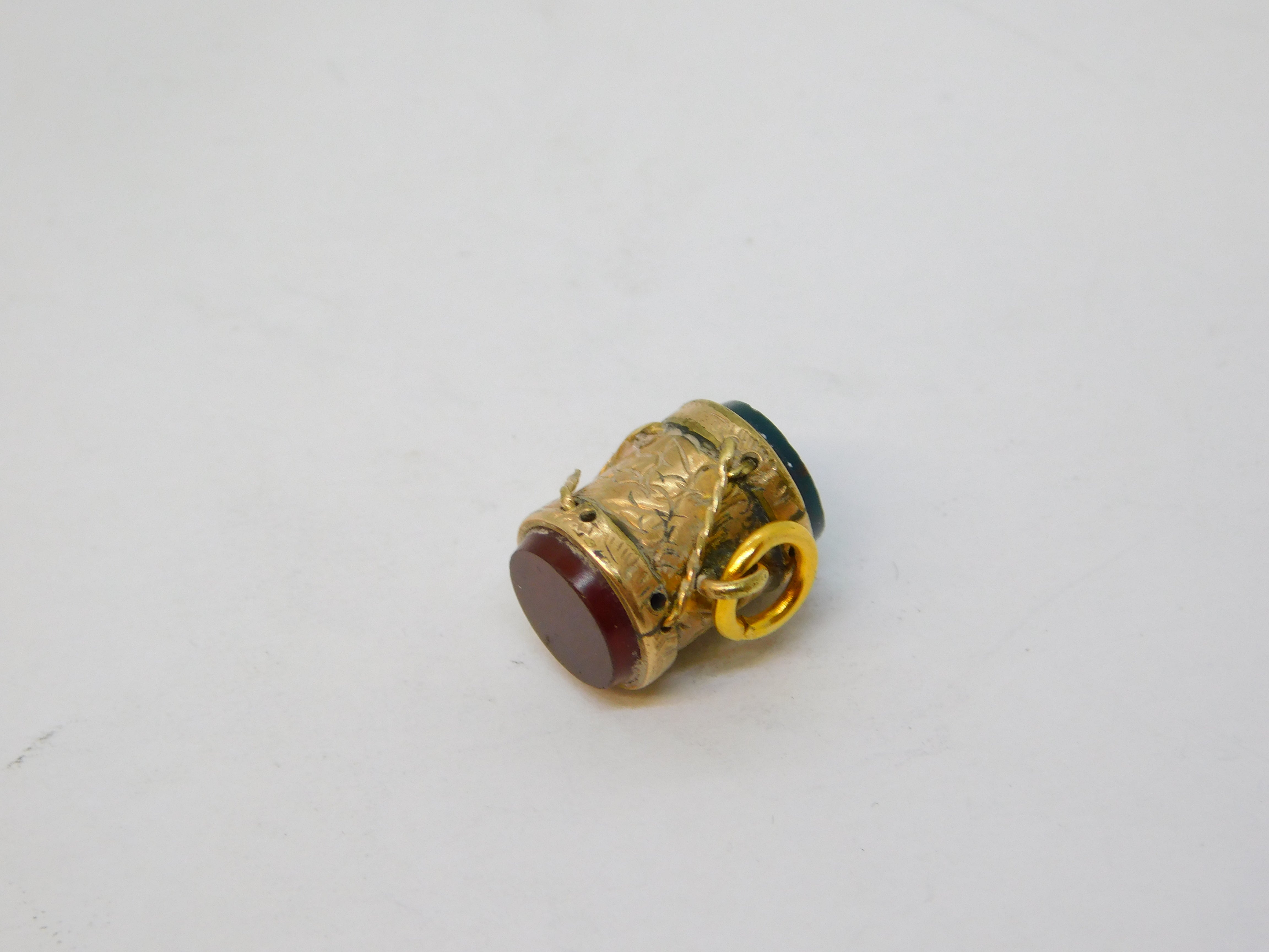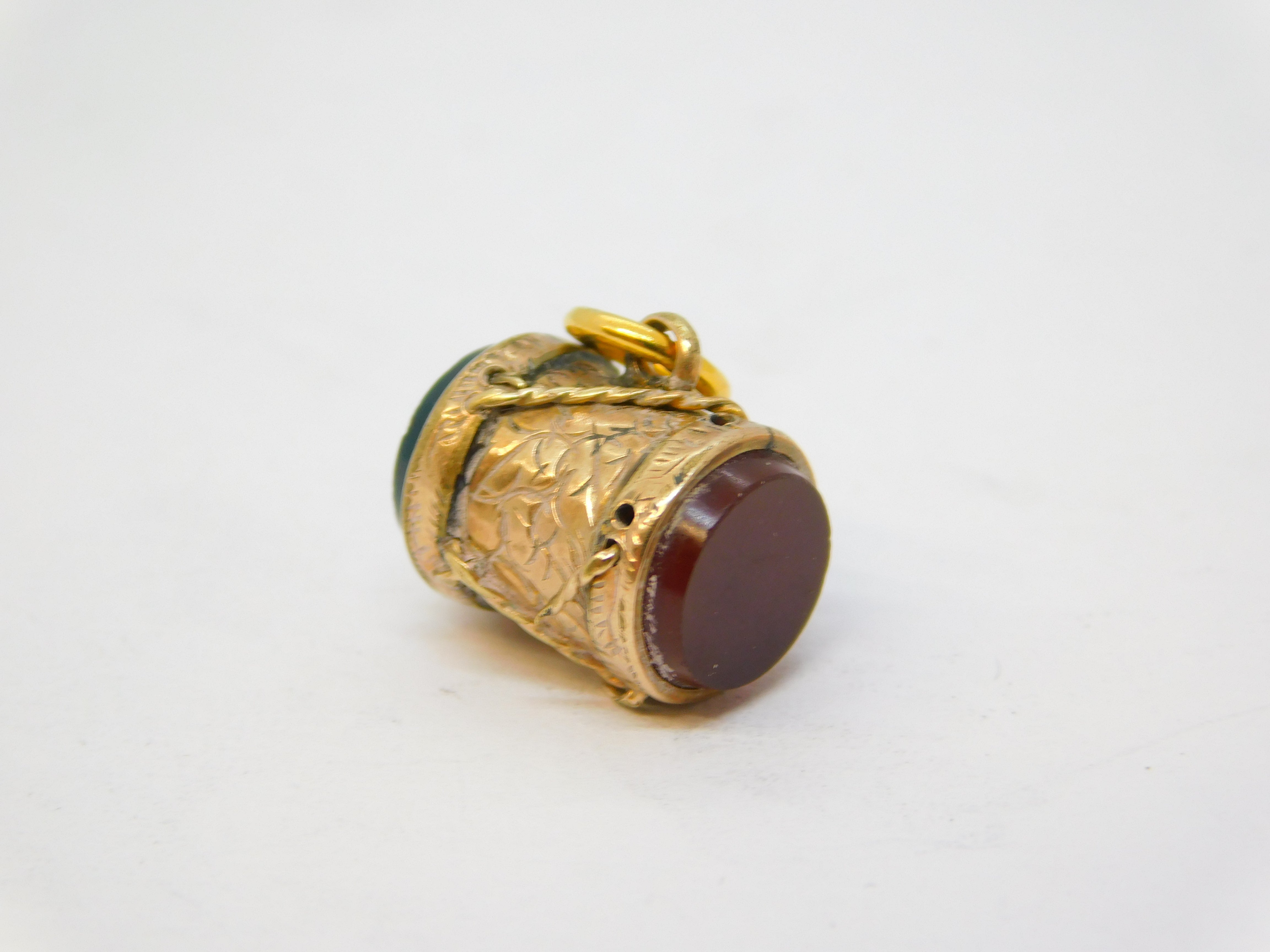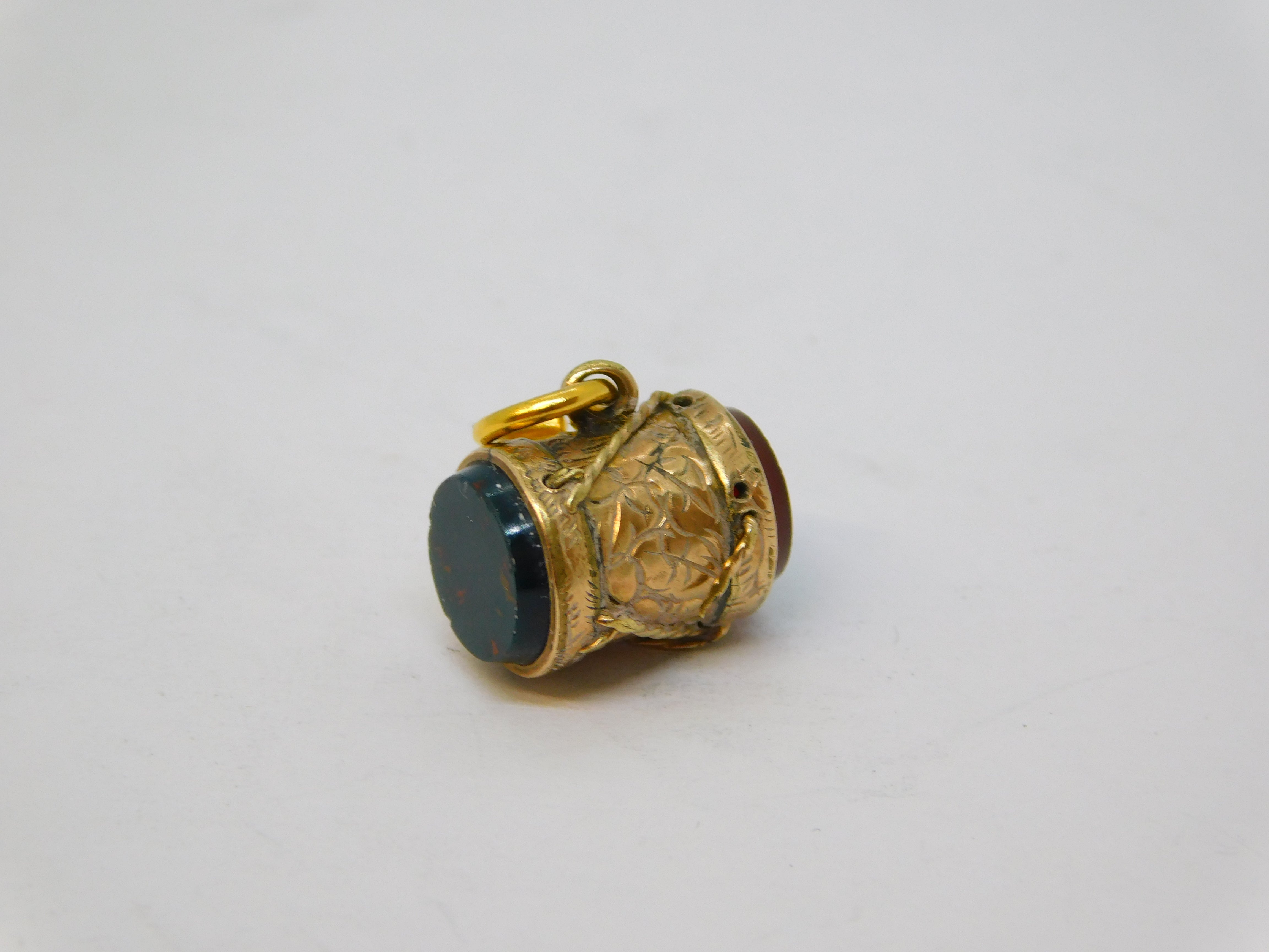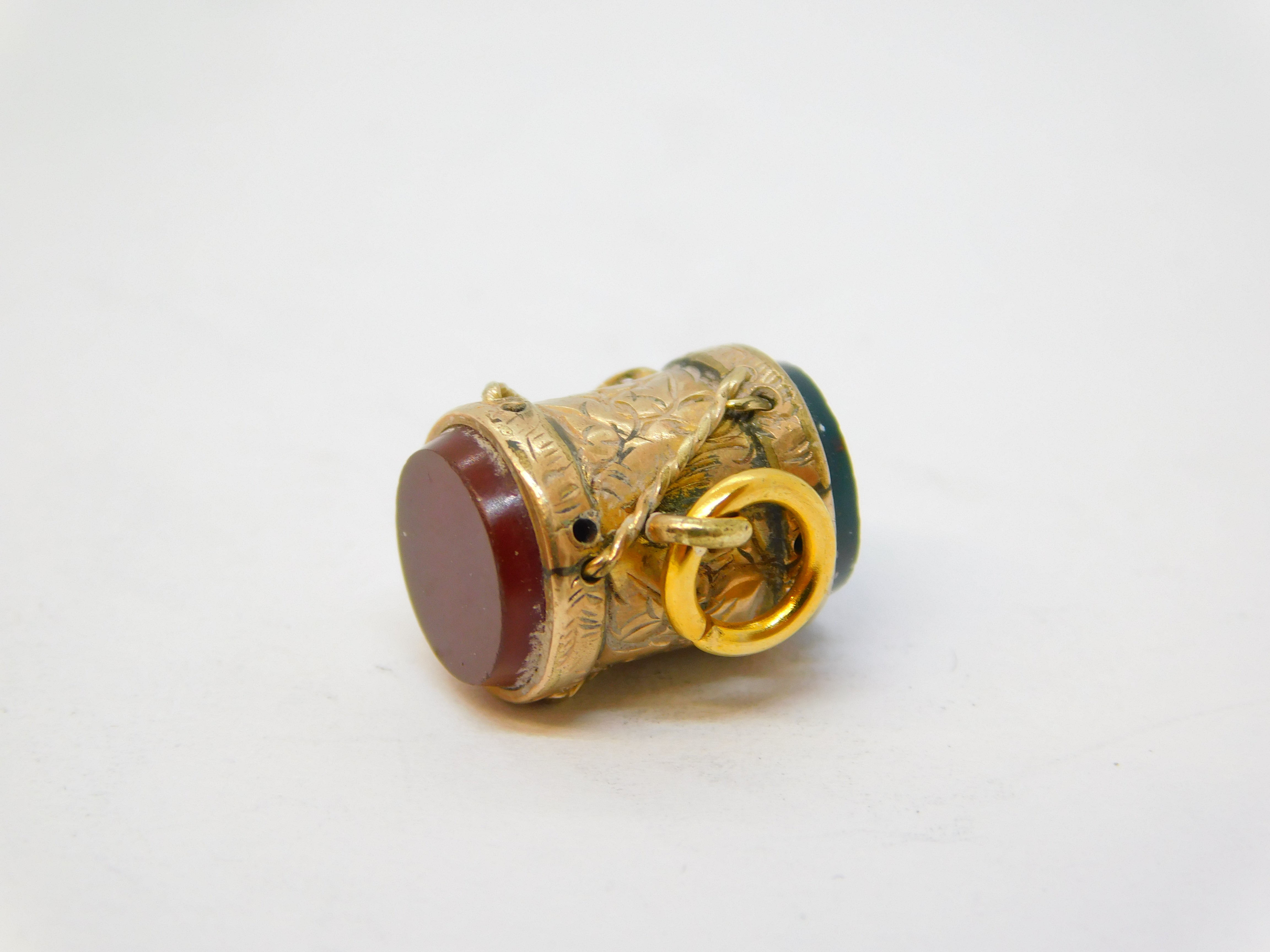 Victorian 9ct Rose Gold, Carnelian, Bloodstone Drum Form Charm Antique c1880