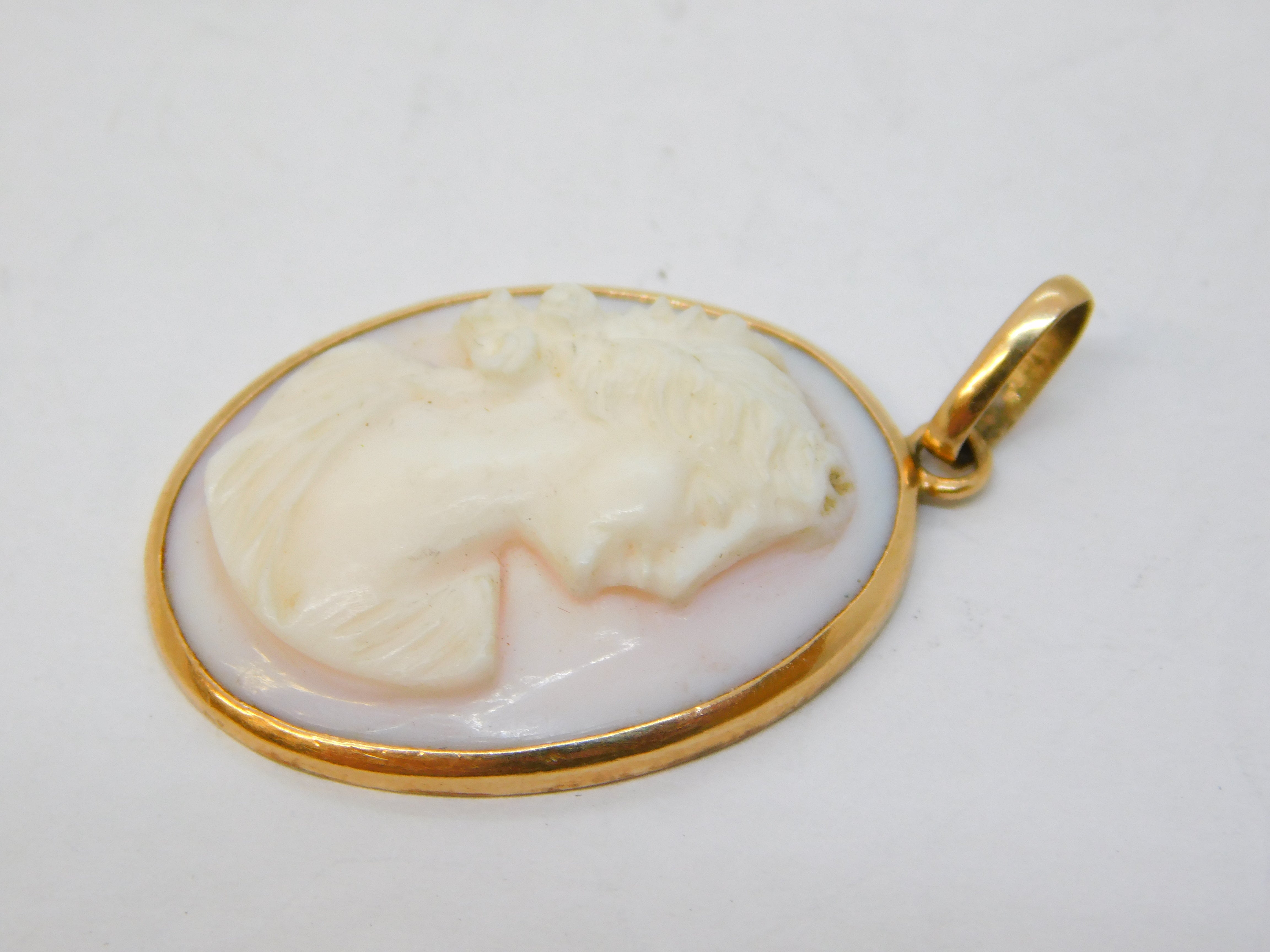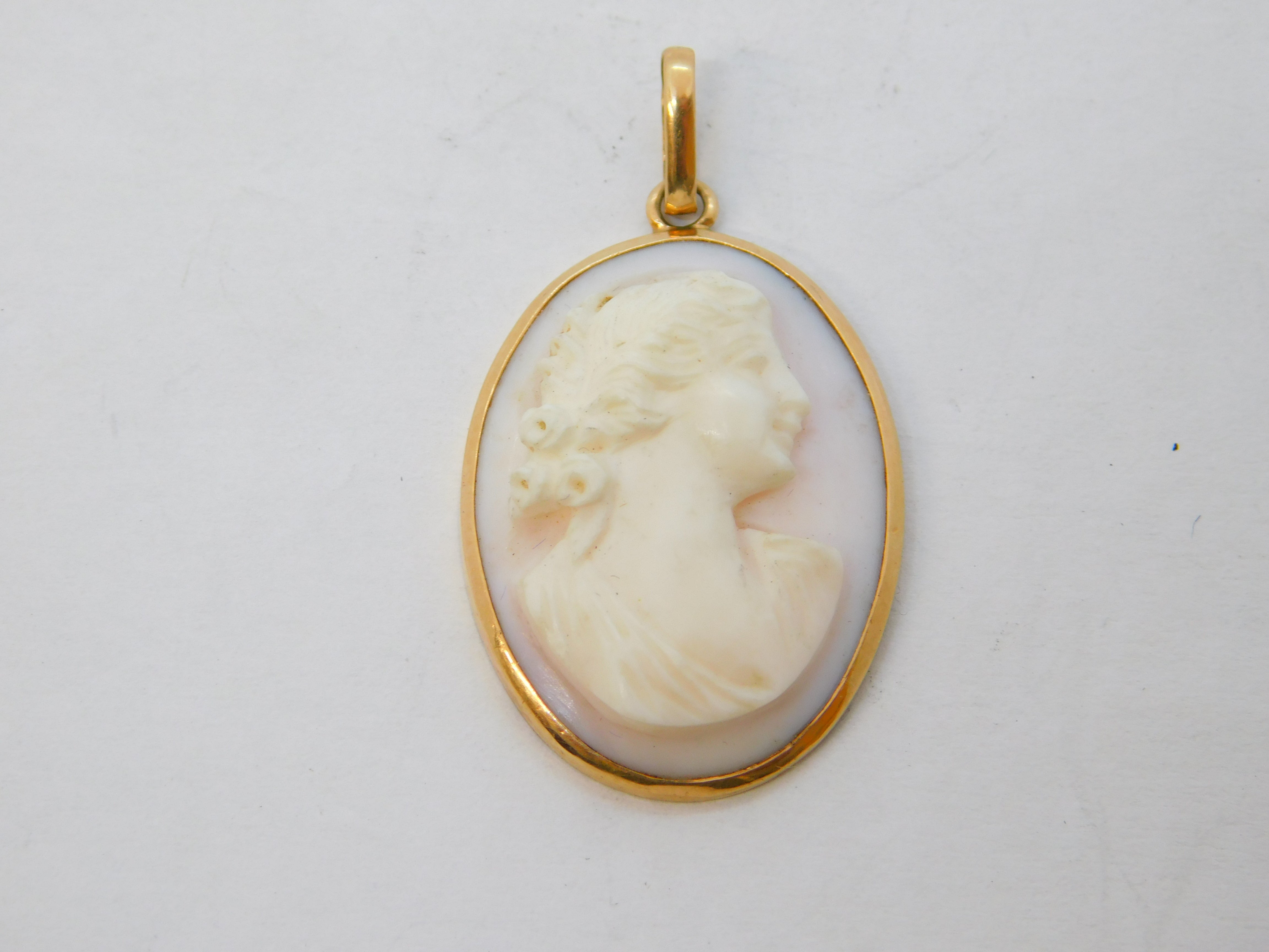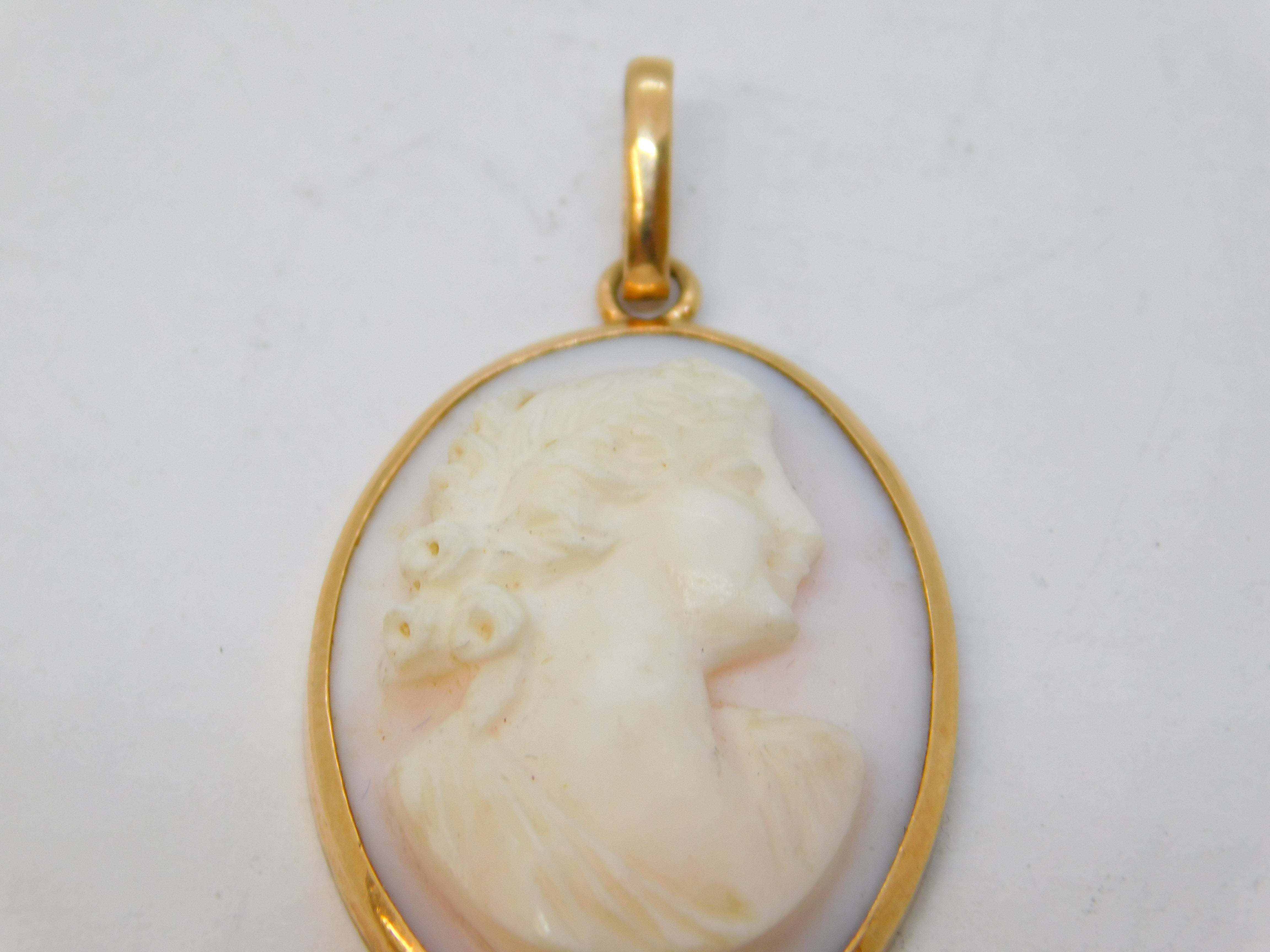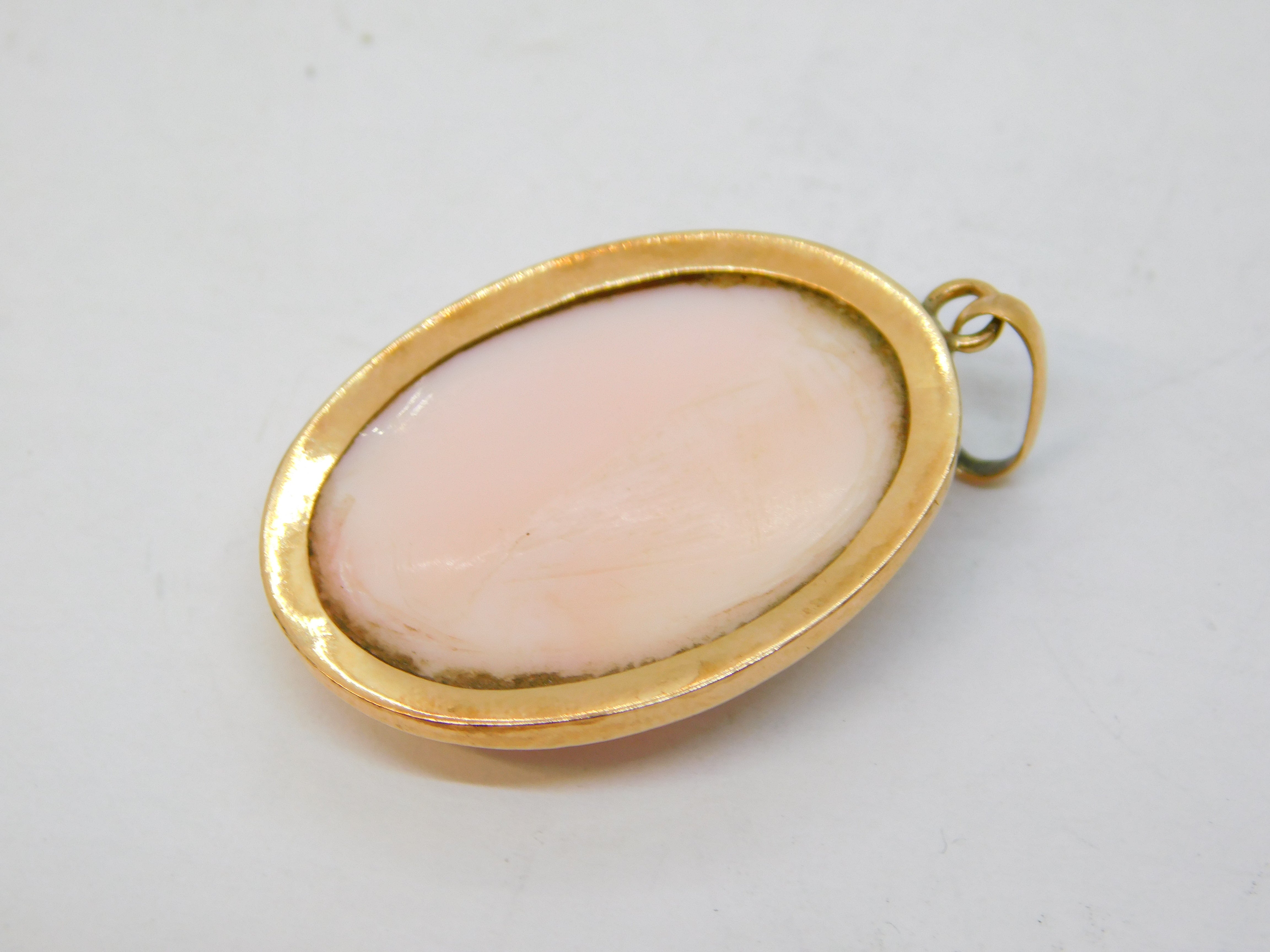 Victorian 9ct Rose Gold Carved Angel Skin Coral Cameo Pendant Antique c1860