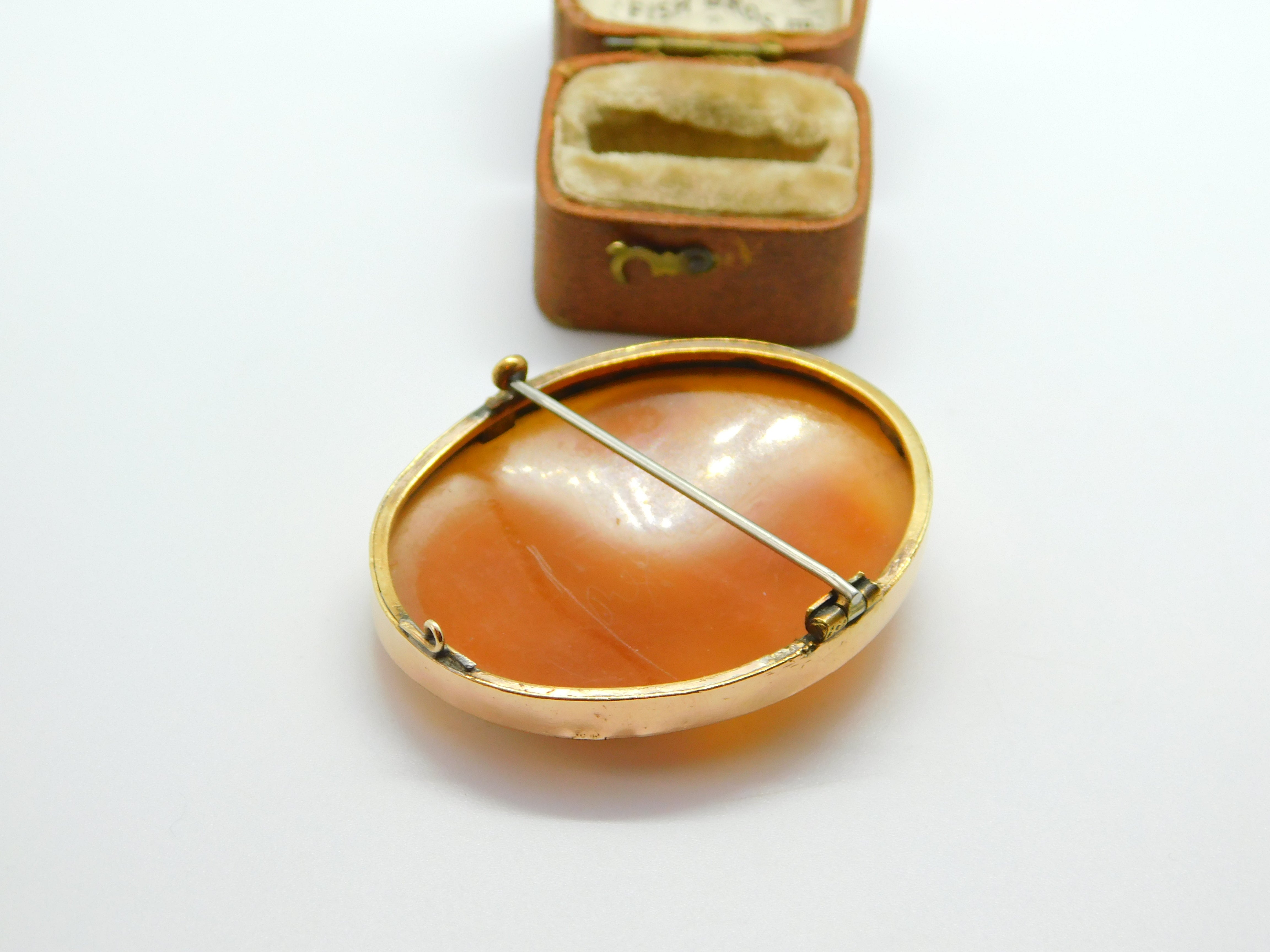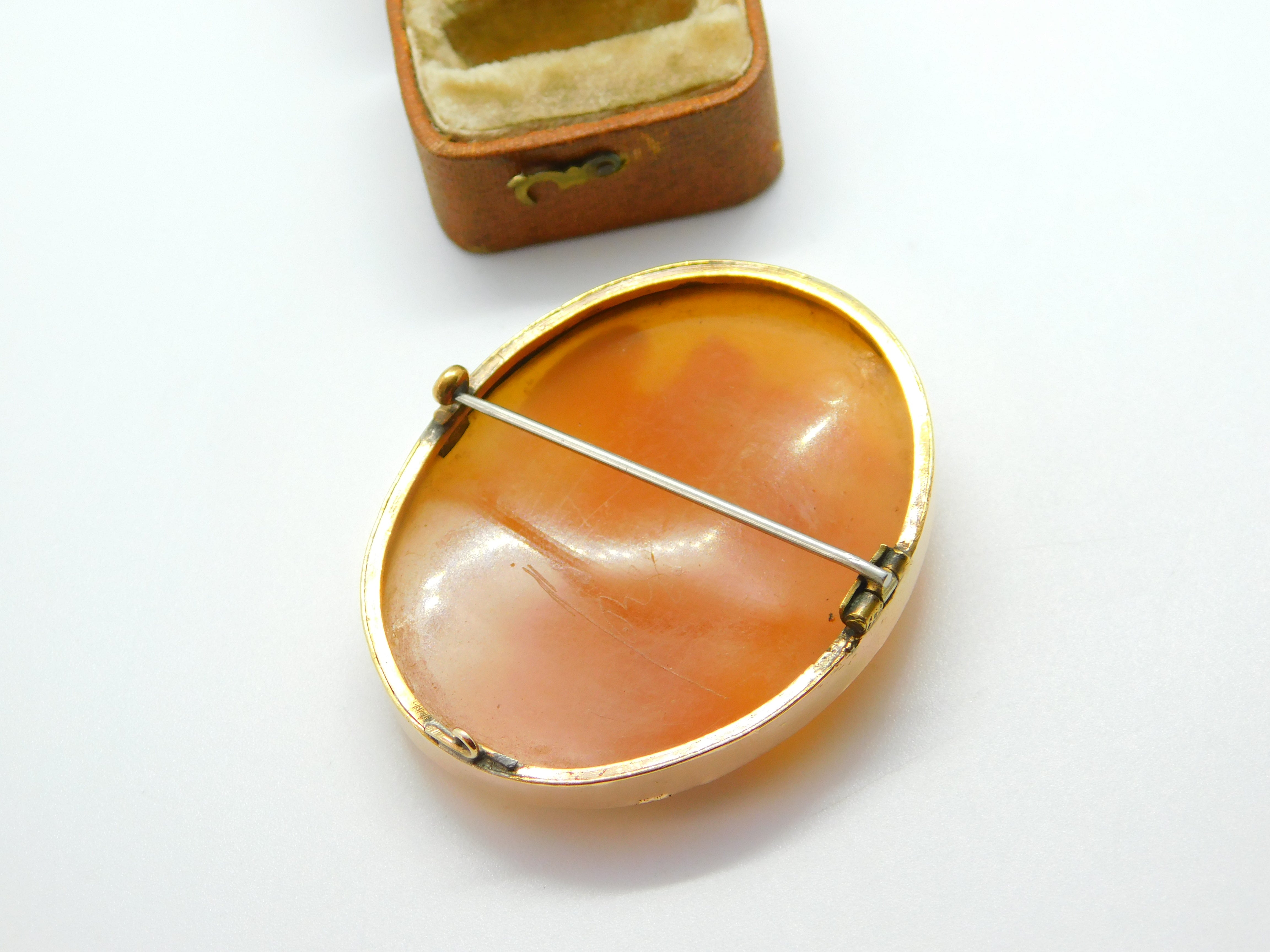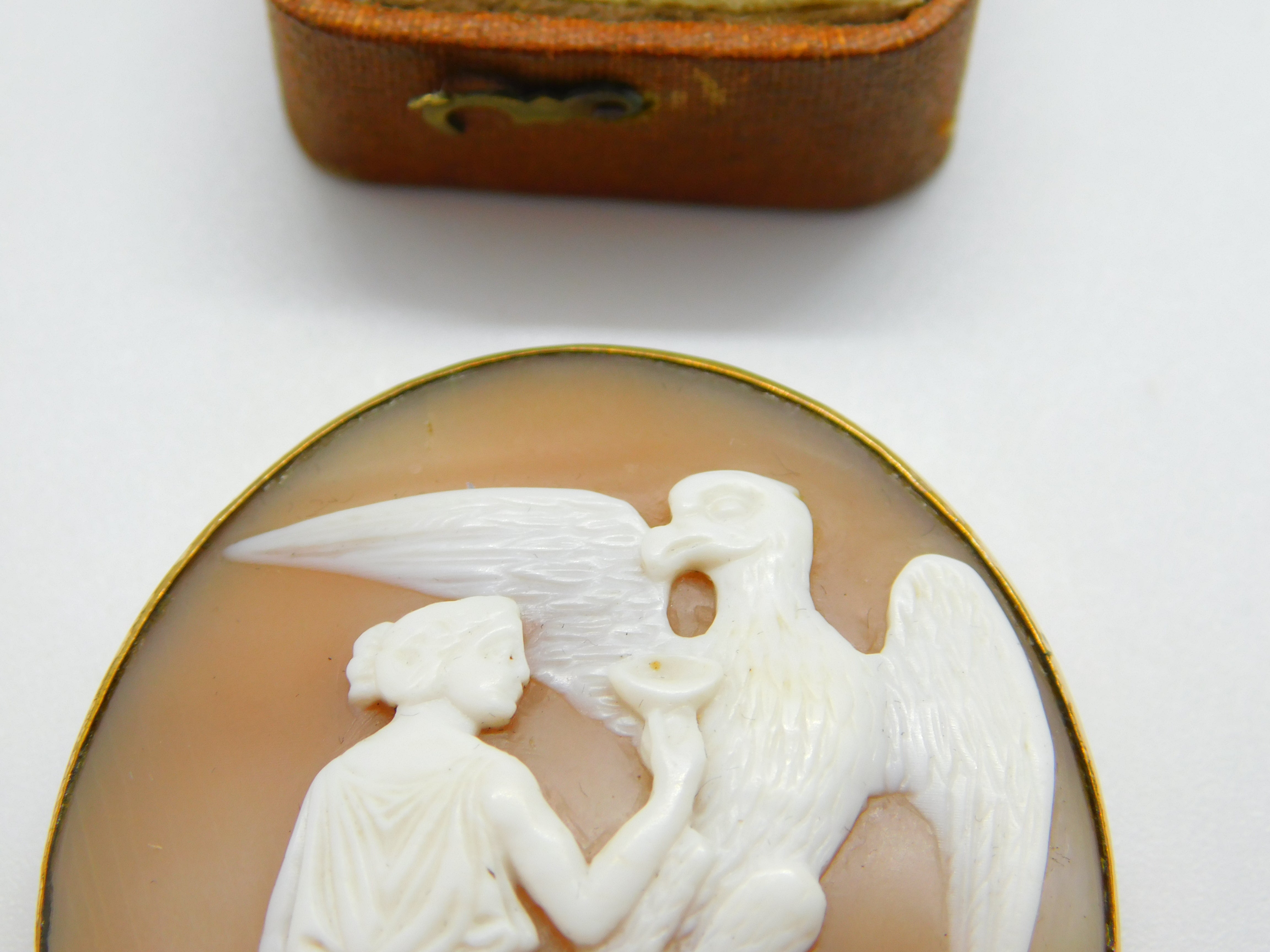 Victorian 9ct Rose Gold Carved Shell Cameo Hebe Feeding Eagle Brooch c1850