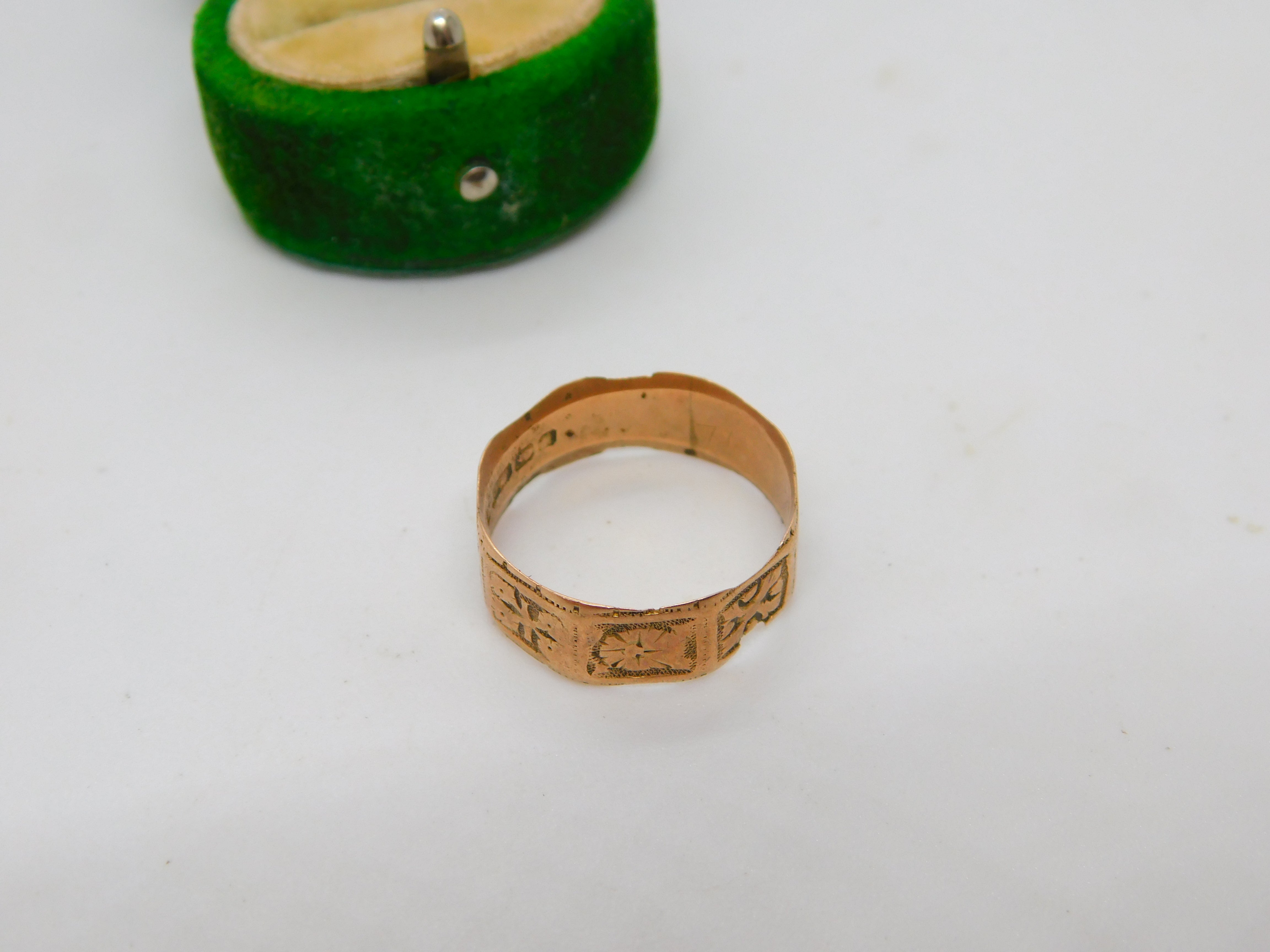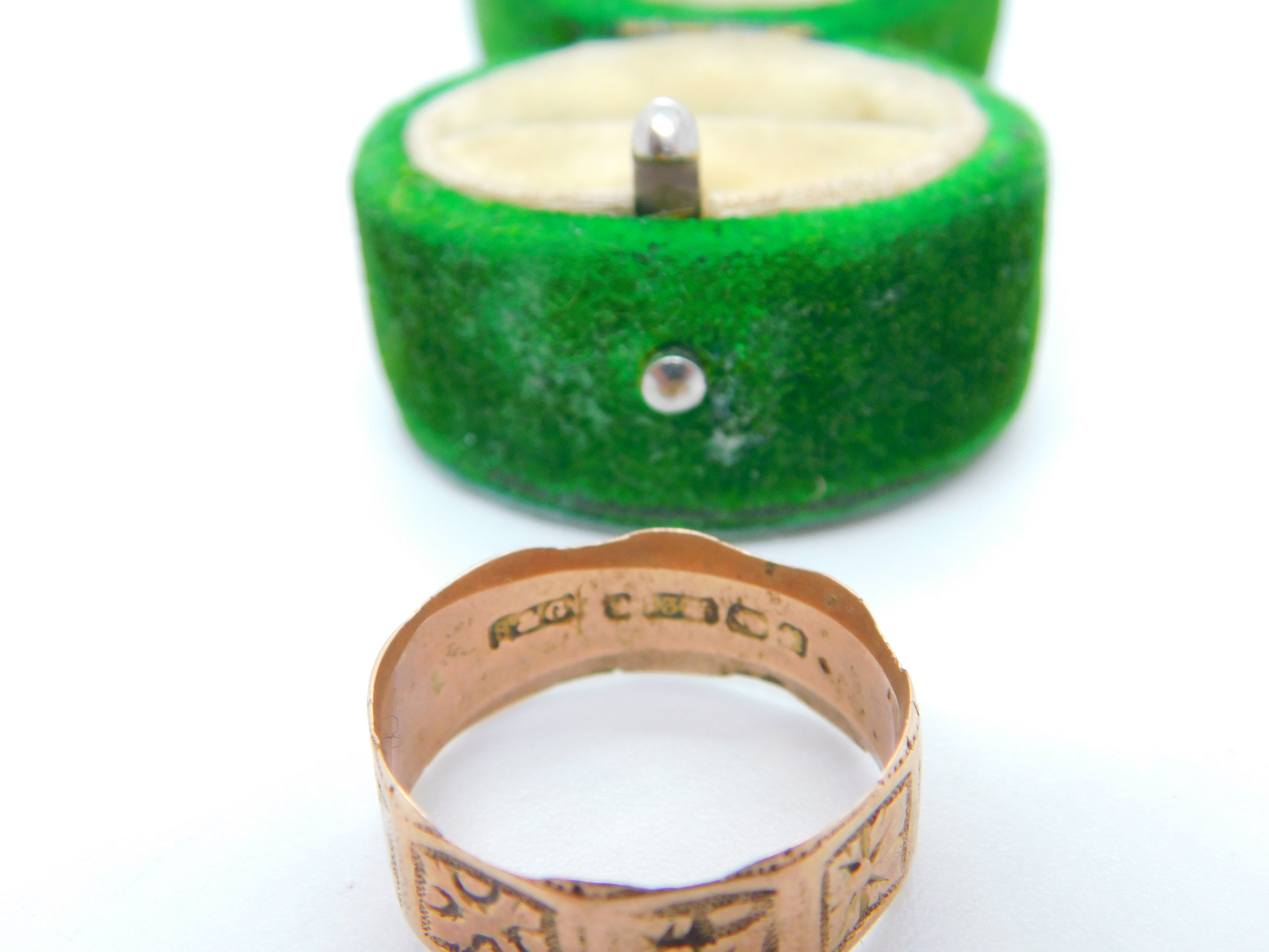 Victorian 9ct Rose Gold Cross Pattern Band Ring Antique 1887 Birmingham