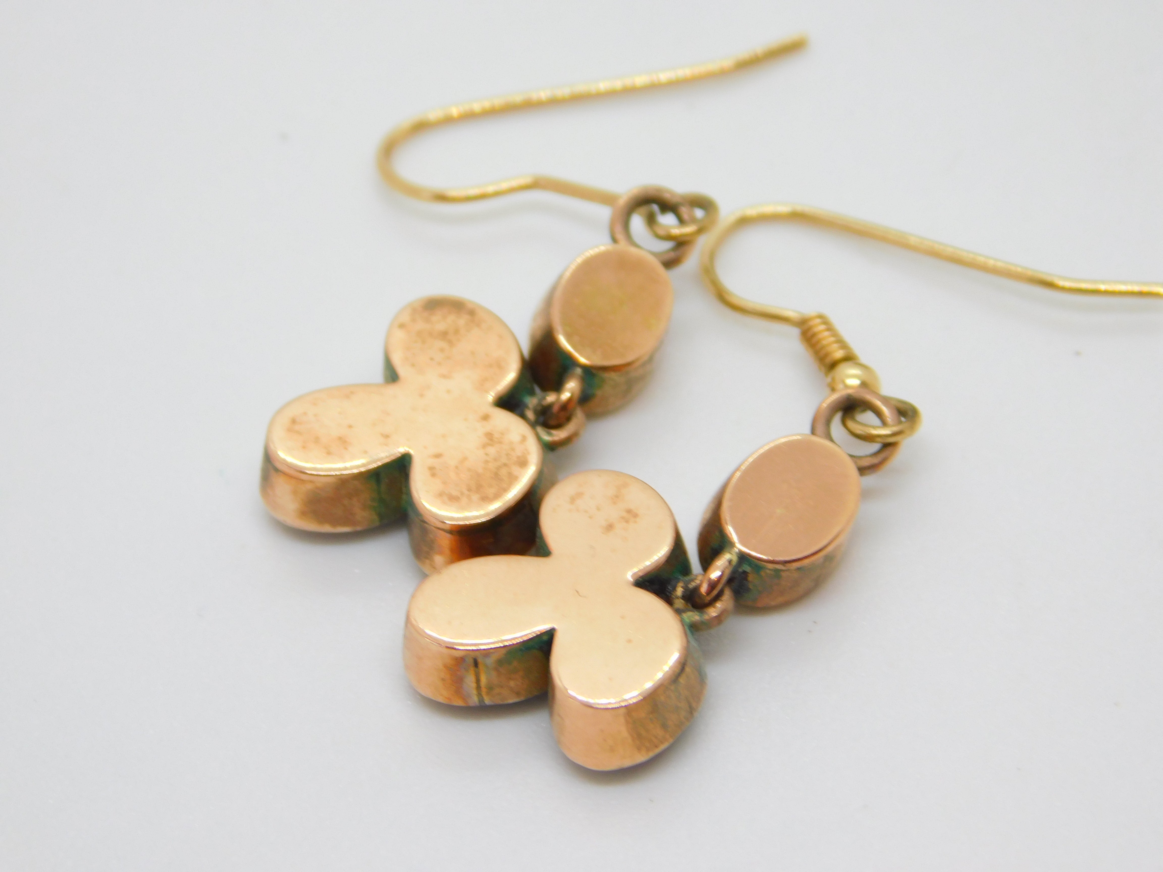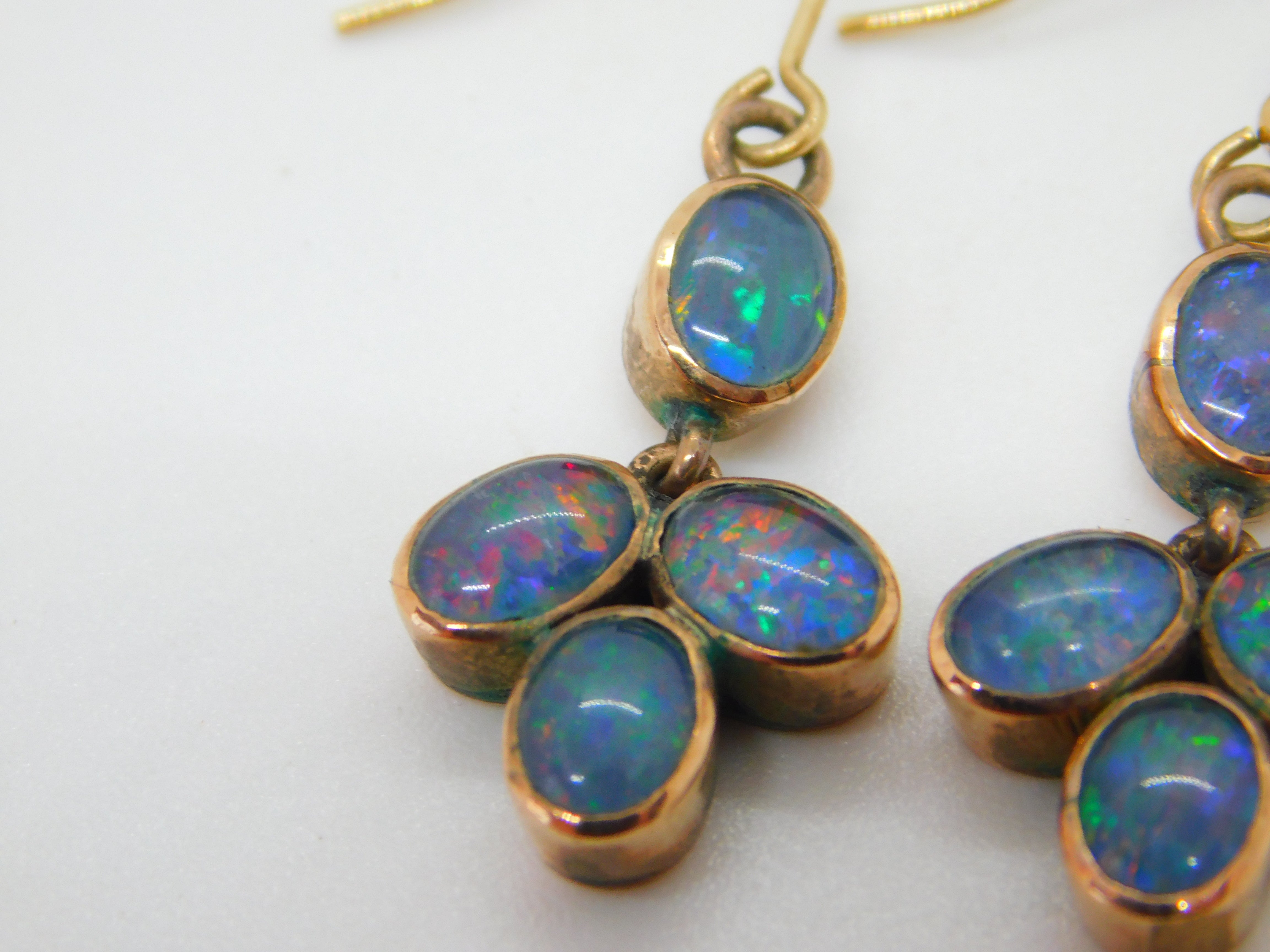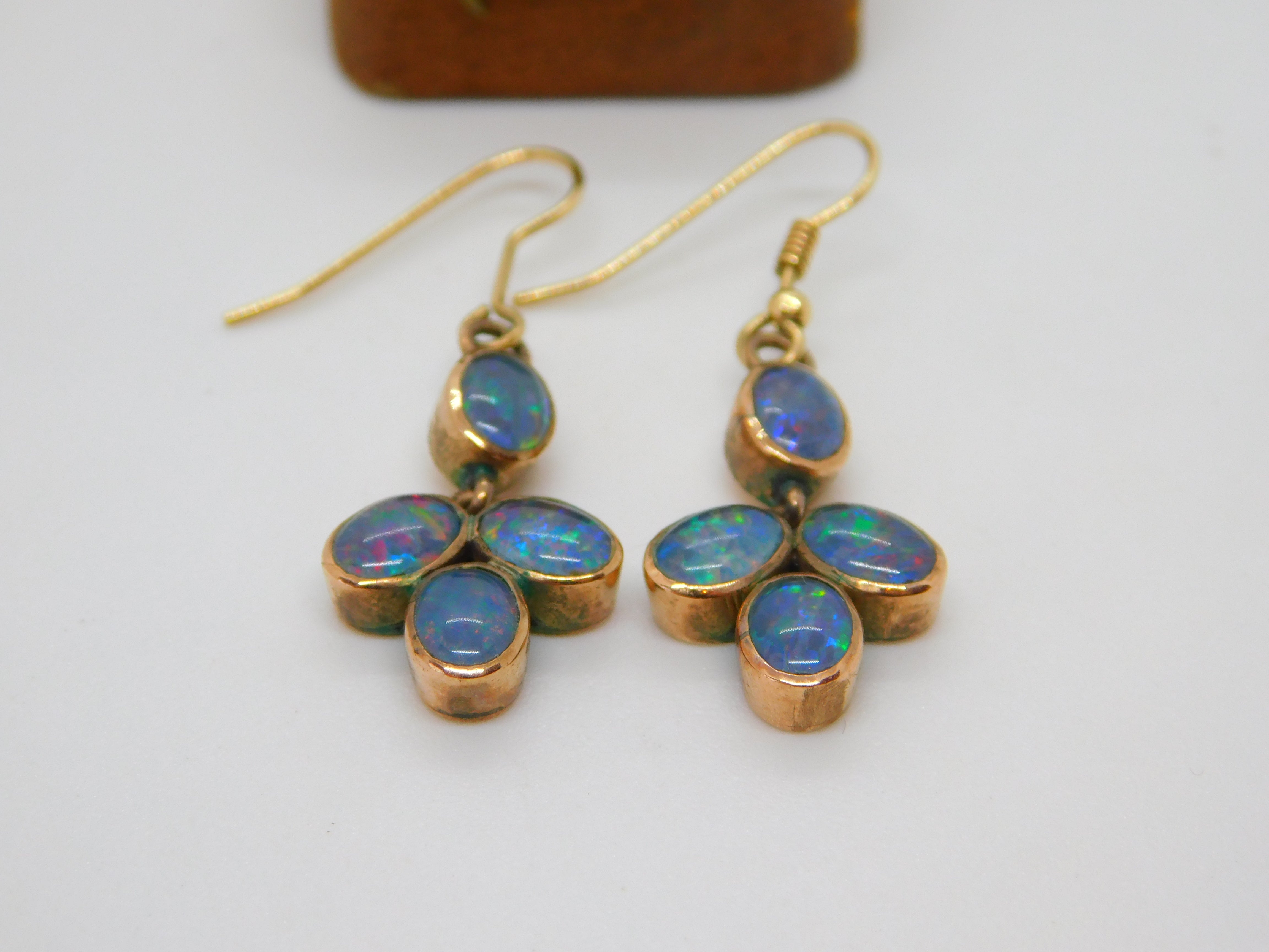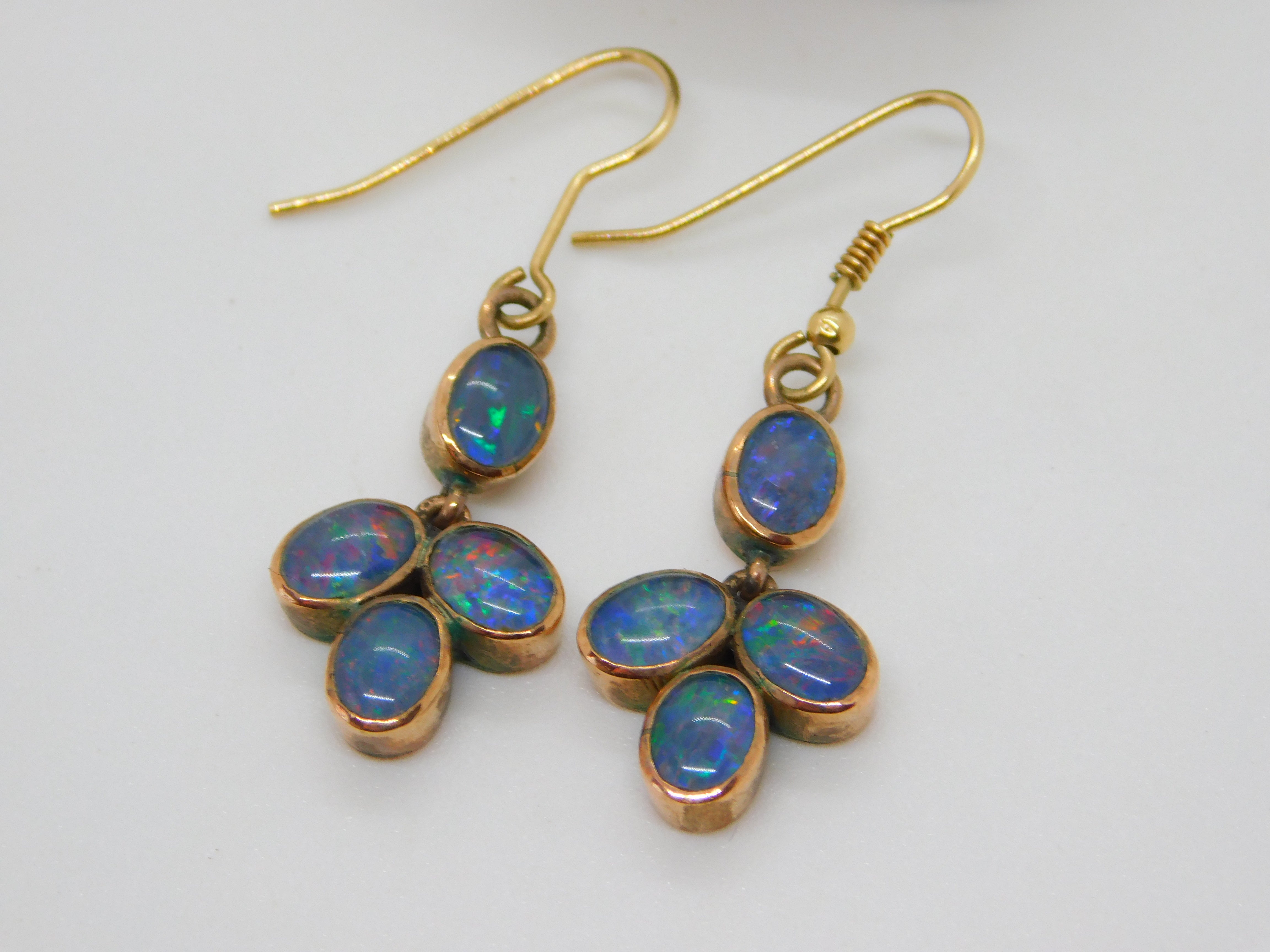 Victorian 9ct Rose Gold & Doublet Opal Set Floral Drop Earrings c1880 Antique