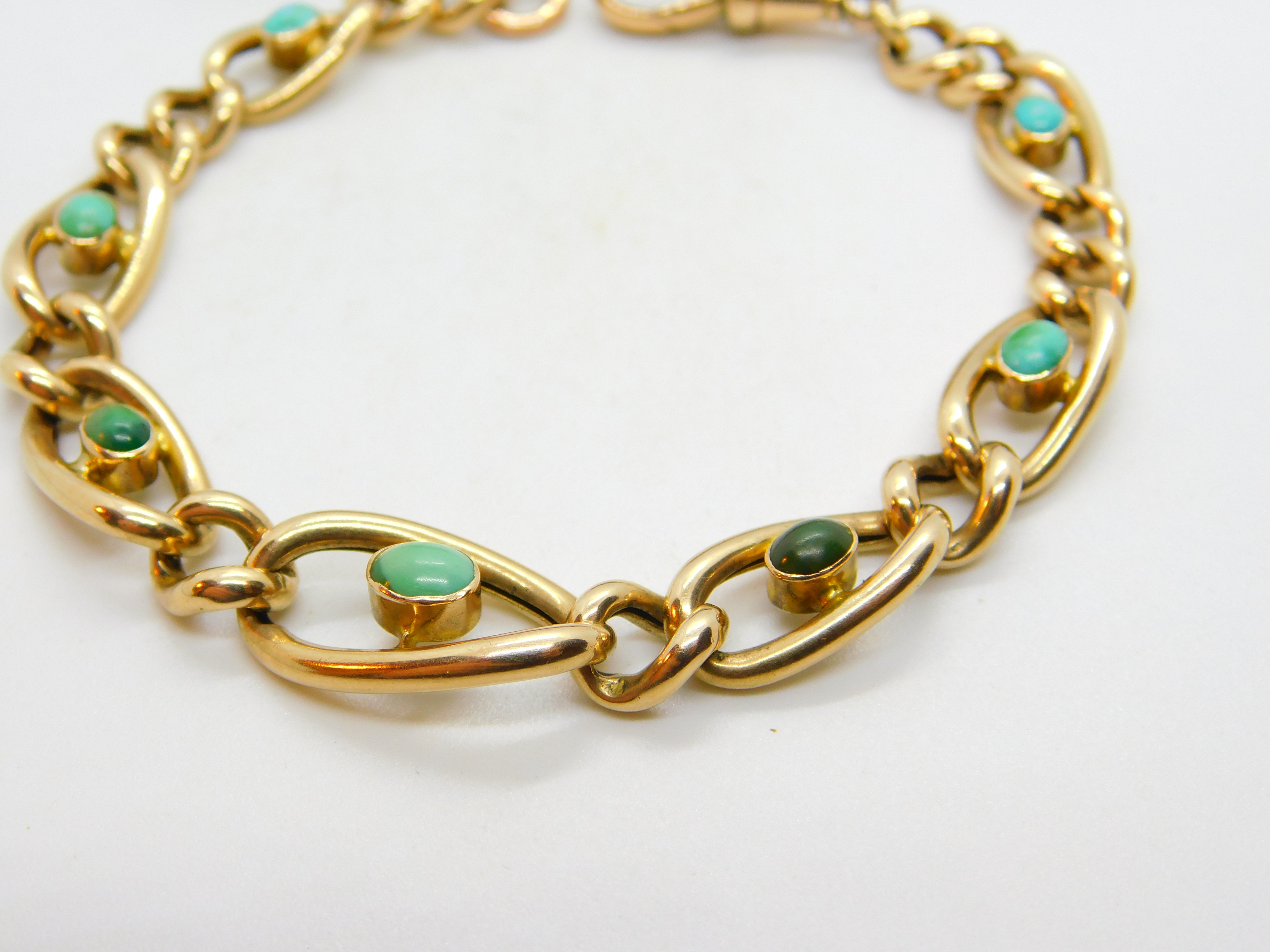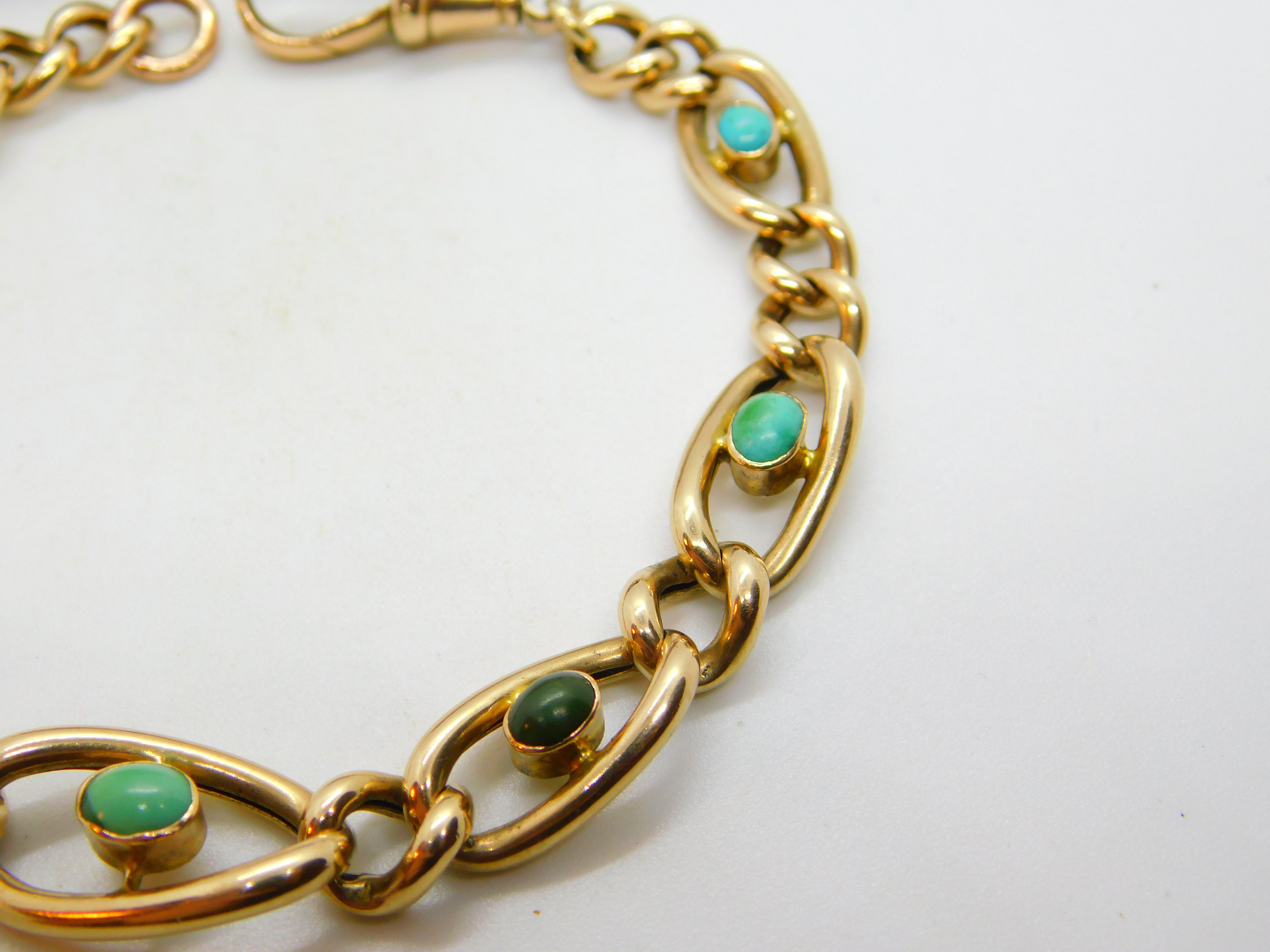 Victorian 9ct Rose Gold Graduating Cabochon Turquoise Bracelet c1890 Antique