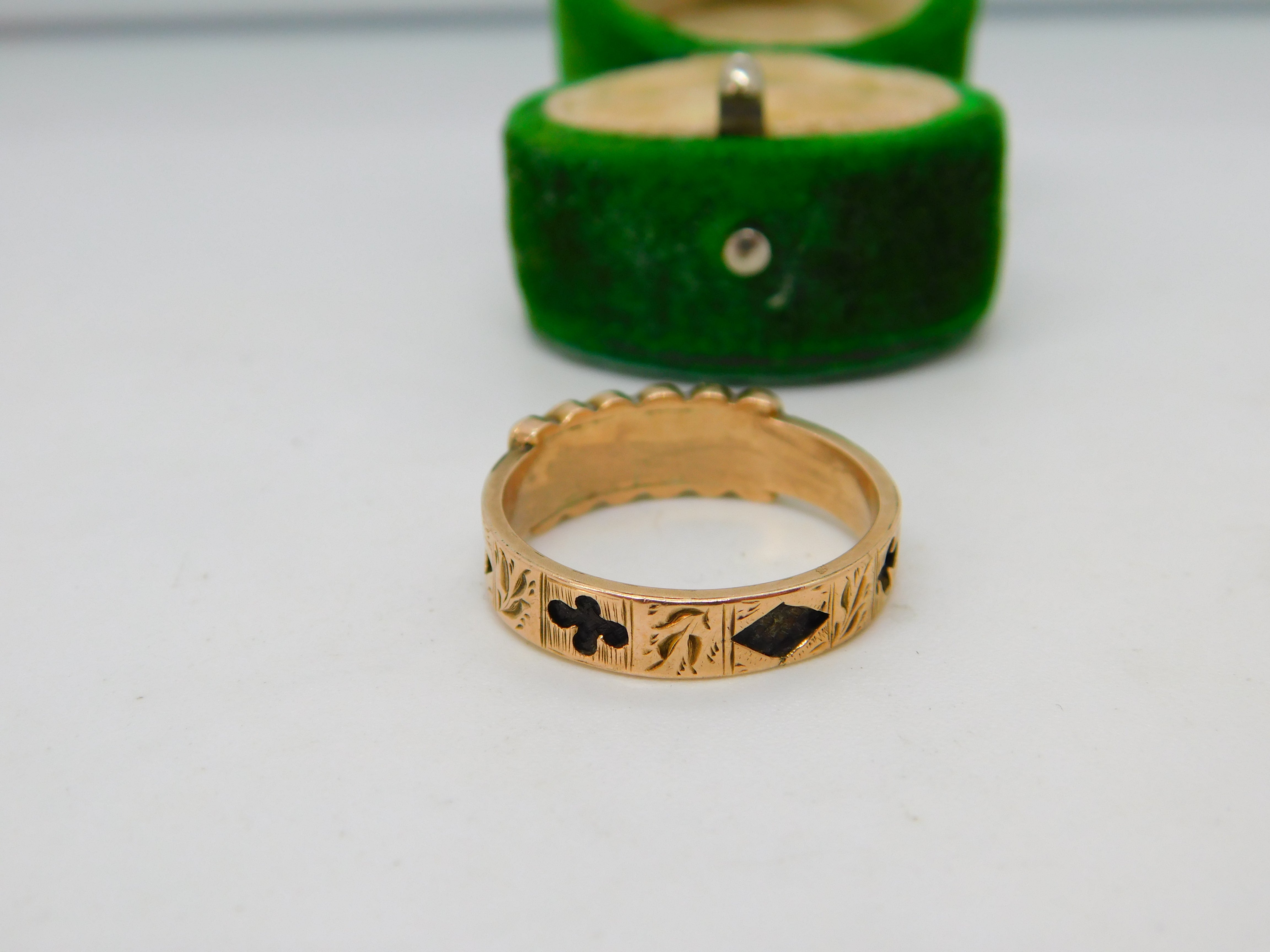 Victorian 9ct Rose Gold Hair Set Maltese Cross Mourning Ring Antique c1860
