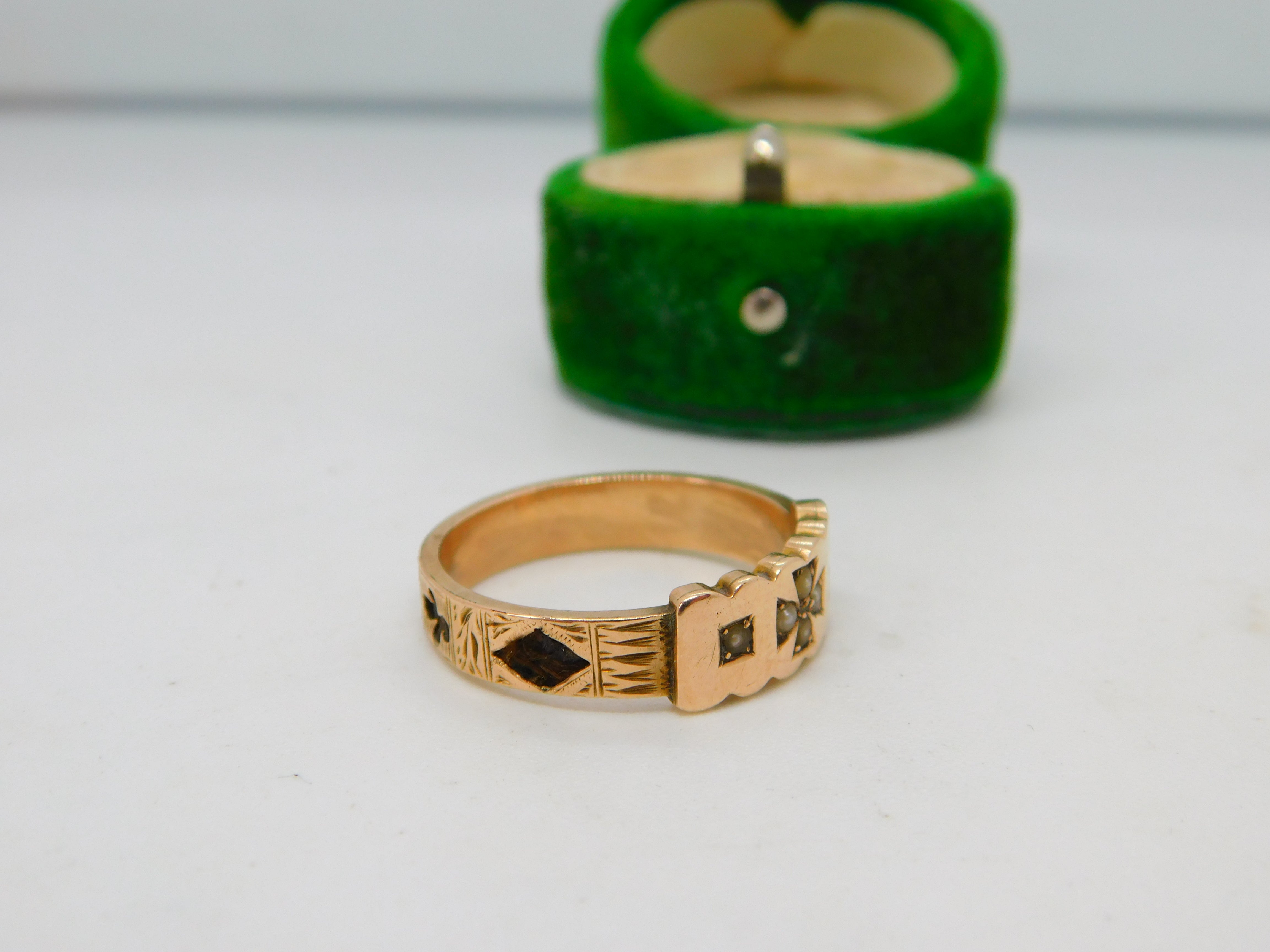 Details: A fantastic and wonderfully designed antique Victorian 9ct mourning ring hair set with seed pearls to the front in maltese cross pattern set with woven hair to the back of the band c1860, the gold has been XRF tested. This is a wonderful item that would make a perfect gift or addition to any collection. The BOX pictured is for PRESENTATION ONLY and is NOT included in the listings but used to frame the pictures unless specifically stated otherwise.