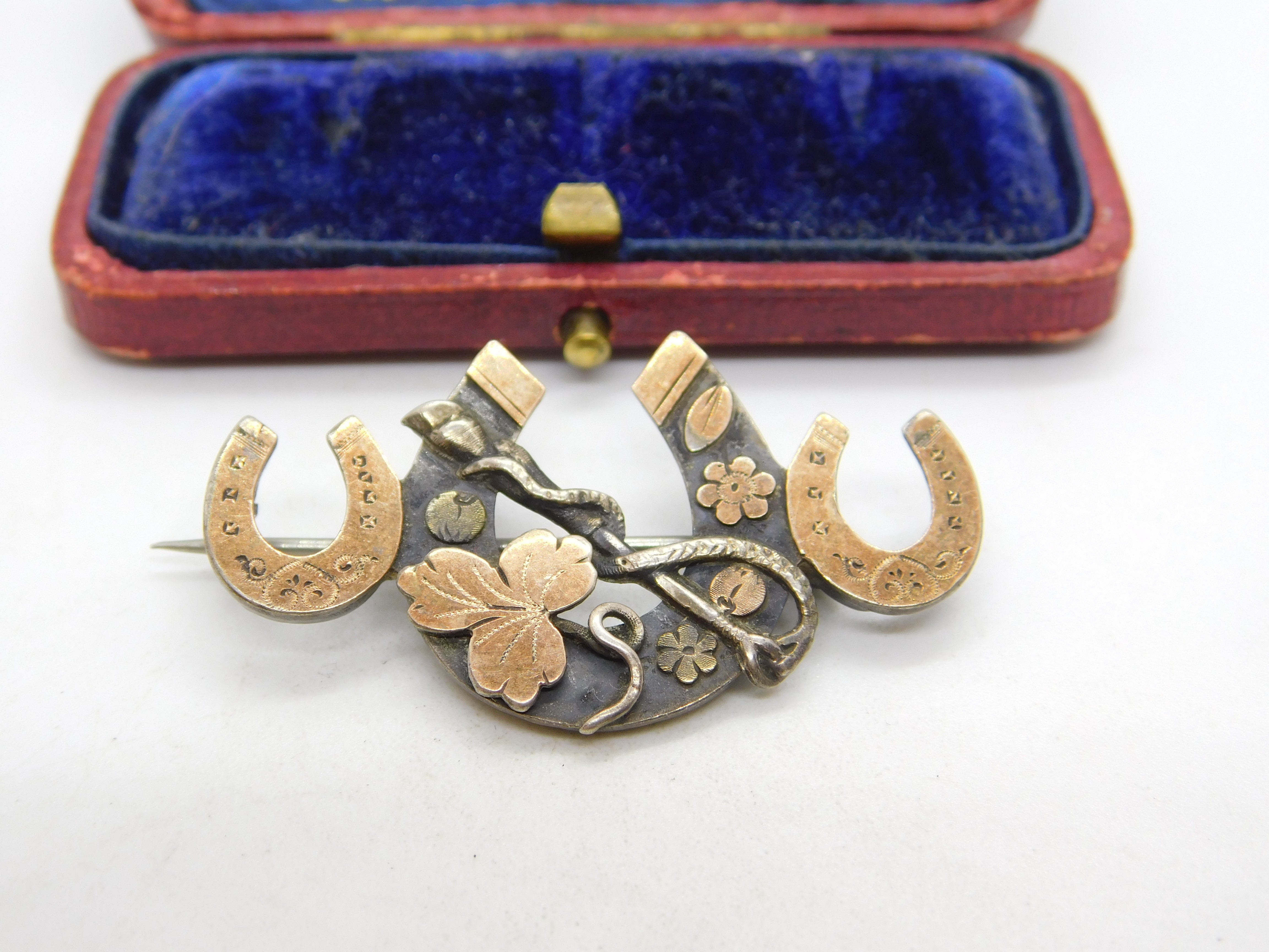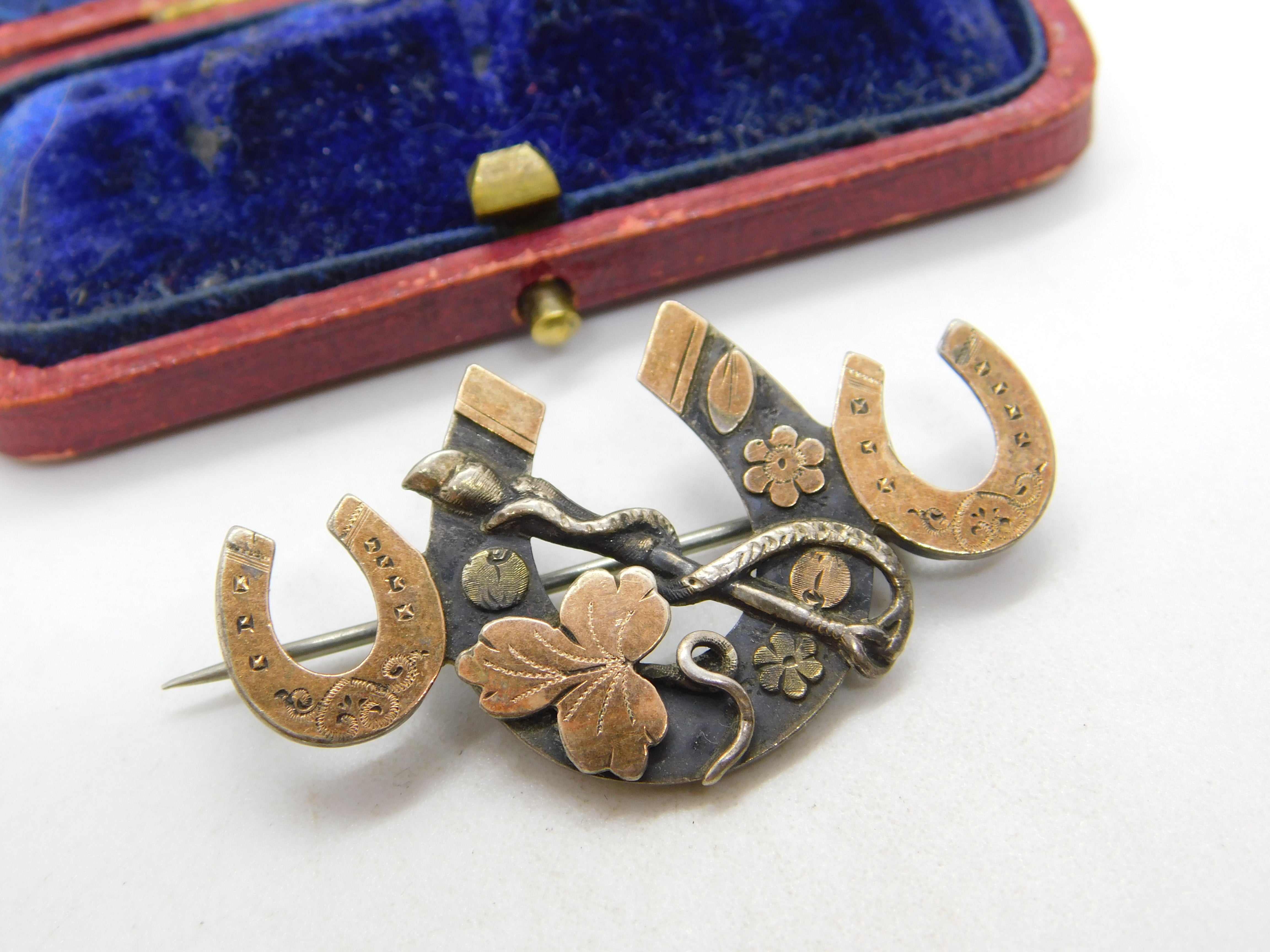 Details: A fantastic and wonderfully designed antique Victorian 9ct rose gold on sterling silver sweetheart horseshoe brooch hallmarked Birmingham 1894 to the reverse. This is a wonderful item that would make a perfect gift or addition to any collection. The BOX pictured is for PRESENTATION ONLY and is NOT included in the listings but used to frame the pictures unless specifically stated otherwise.