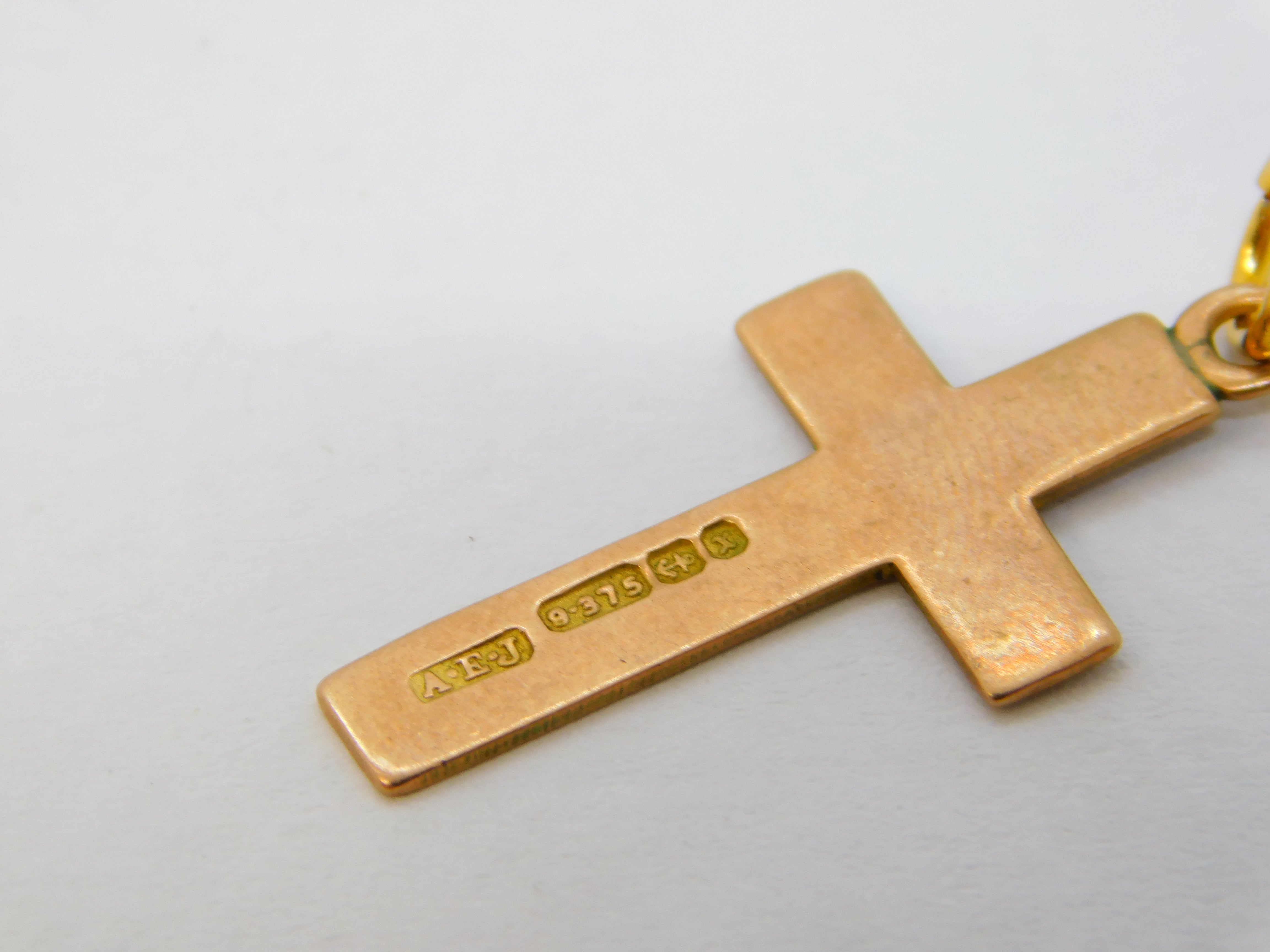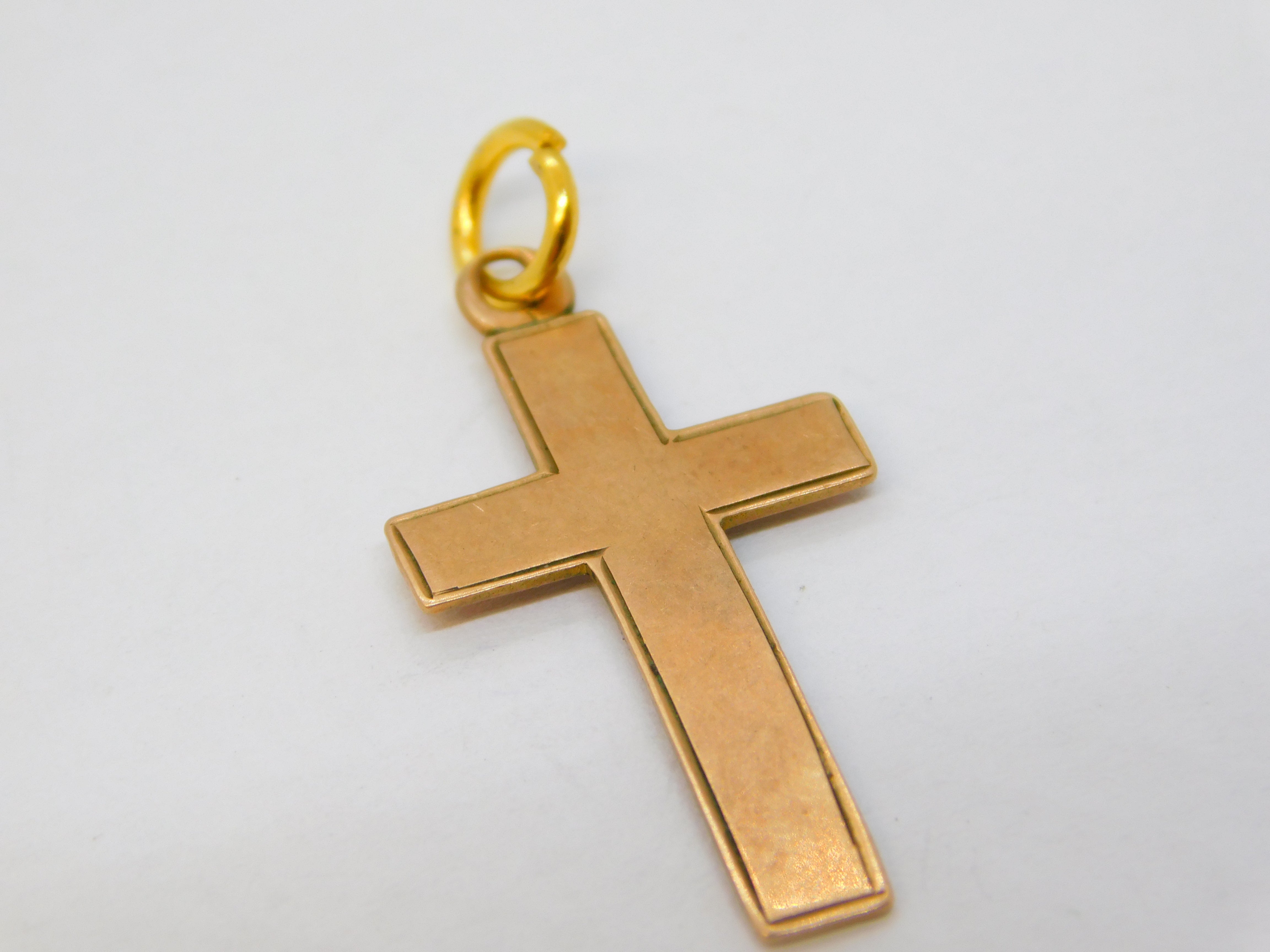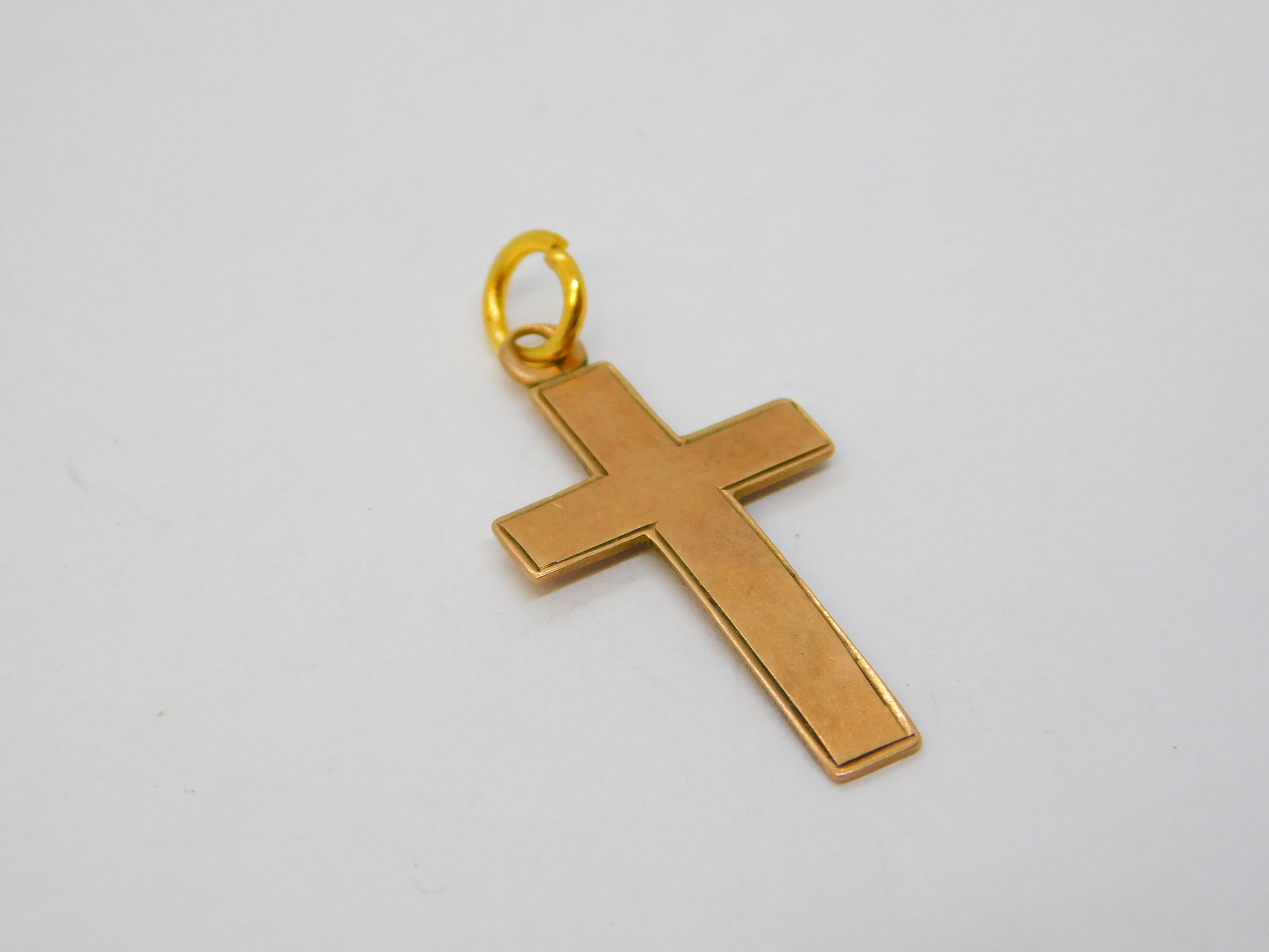 Victorian 9ct Rose Gold Minimal Cross Crucifix Pendant Antique 1897 Birmingham