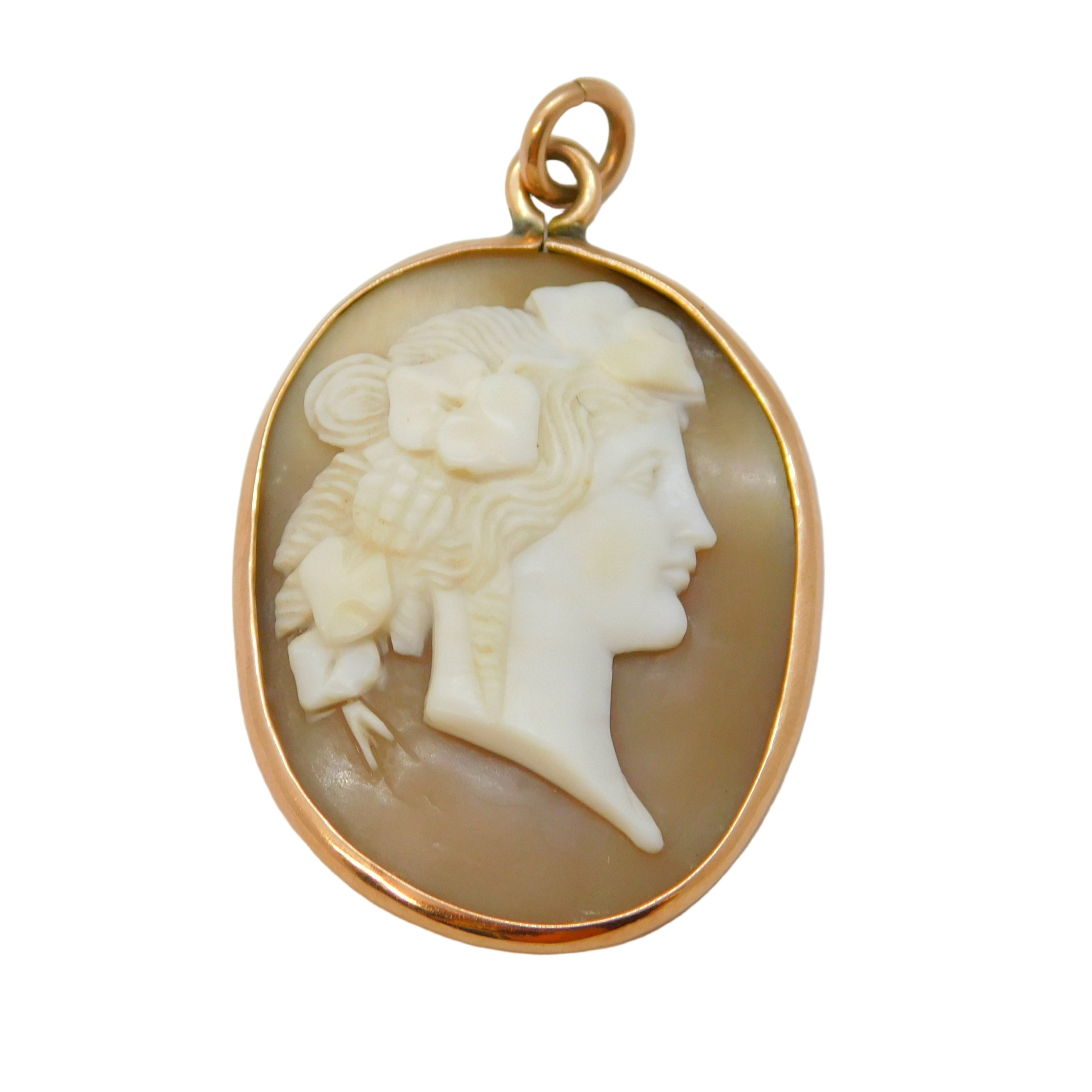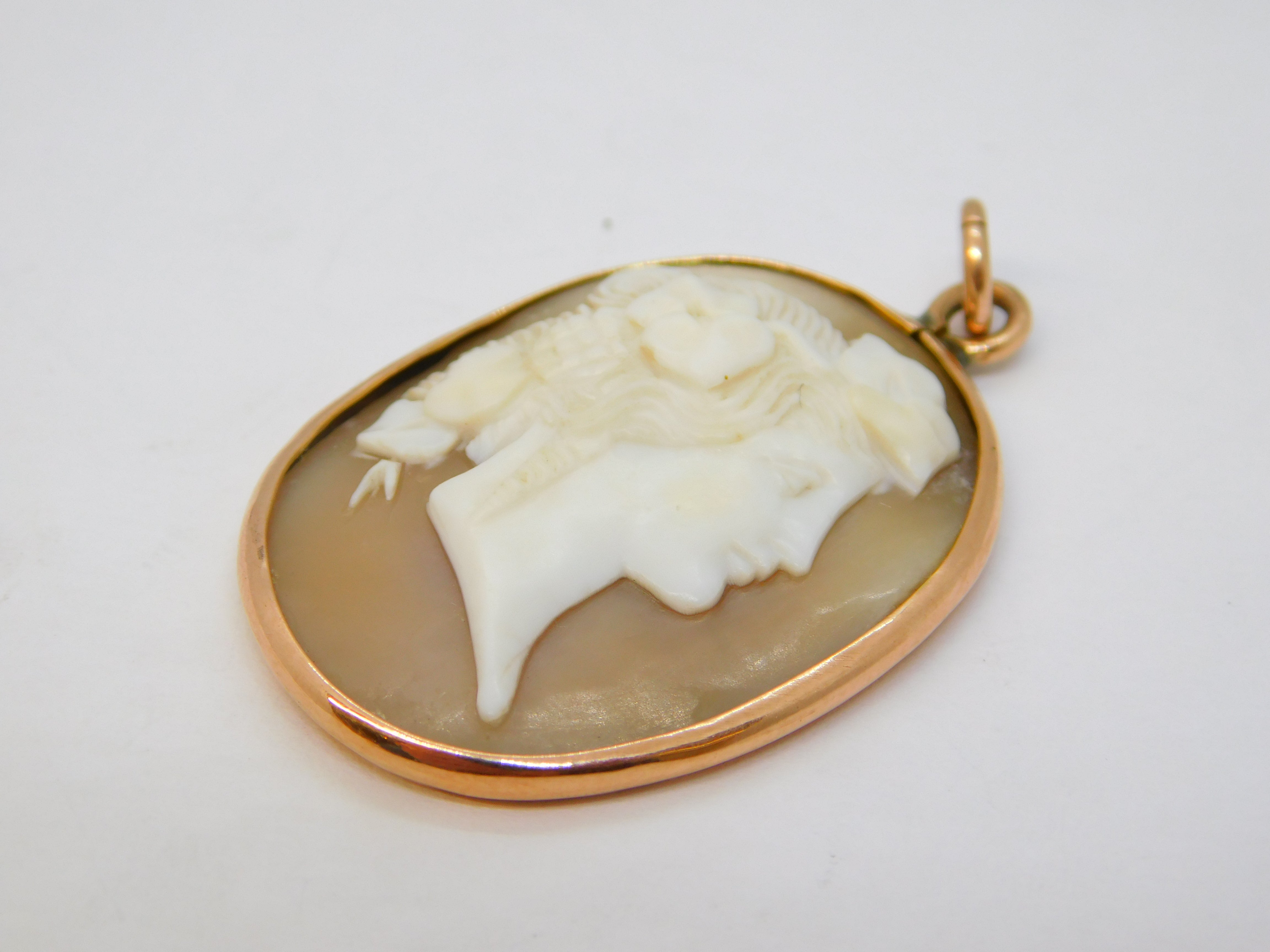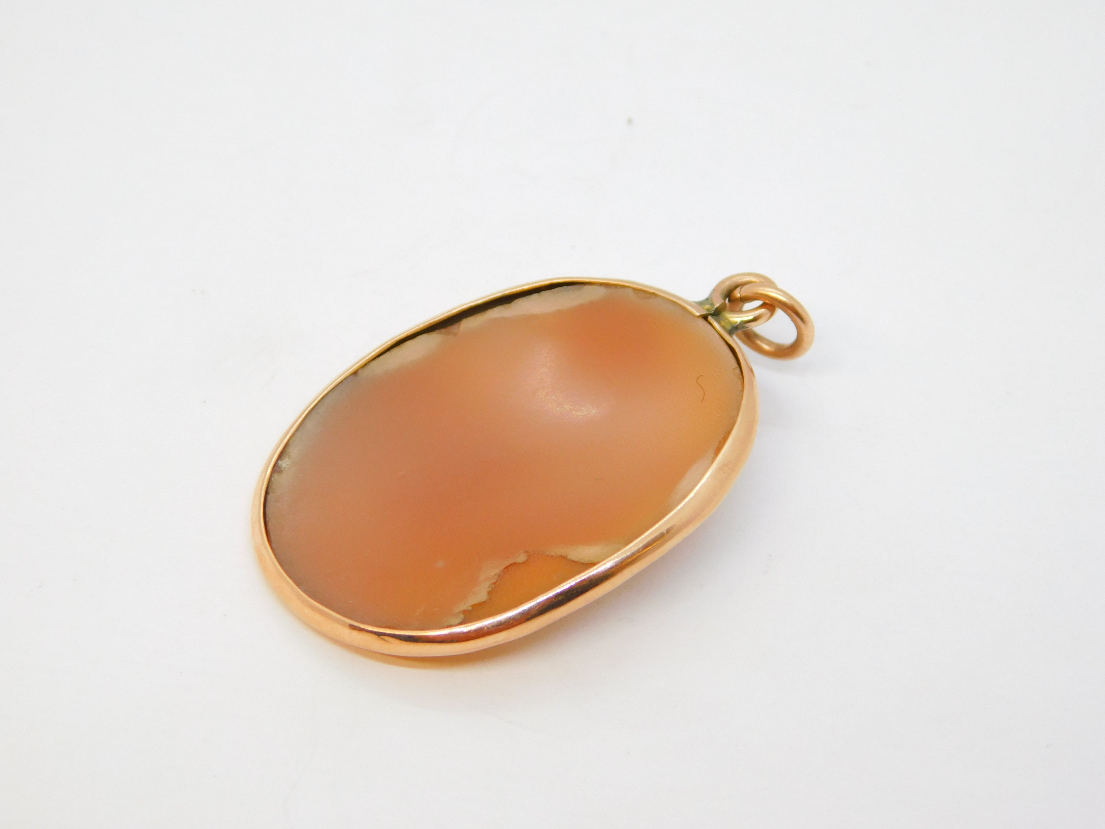 Victorian 9ct Rose Gold Mounted Carved Shell Cameo Pendant Antique c1860