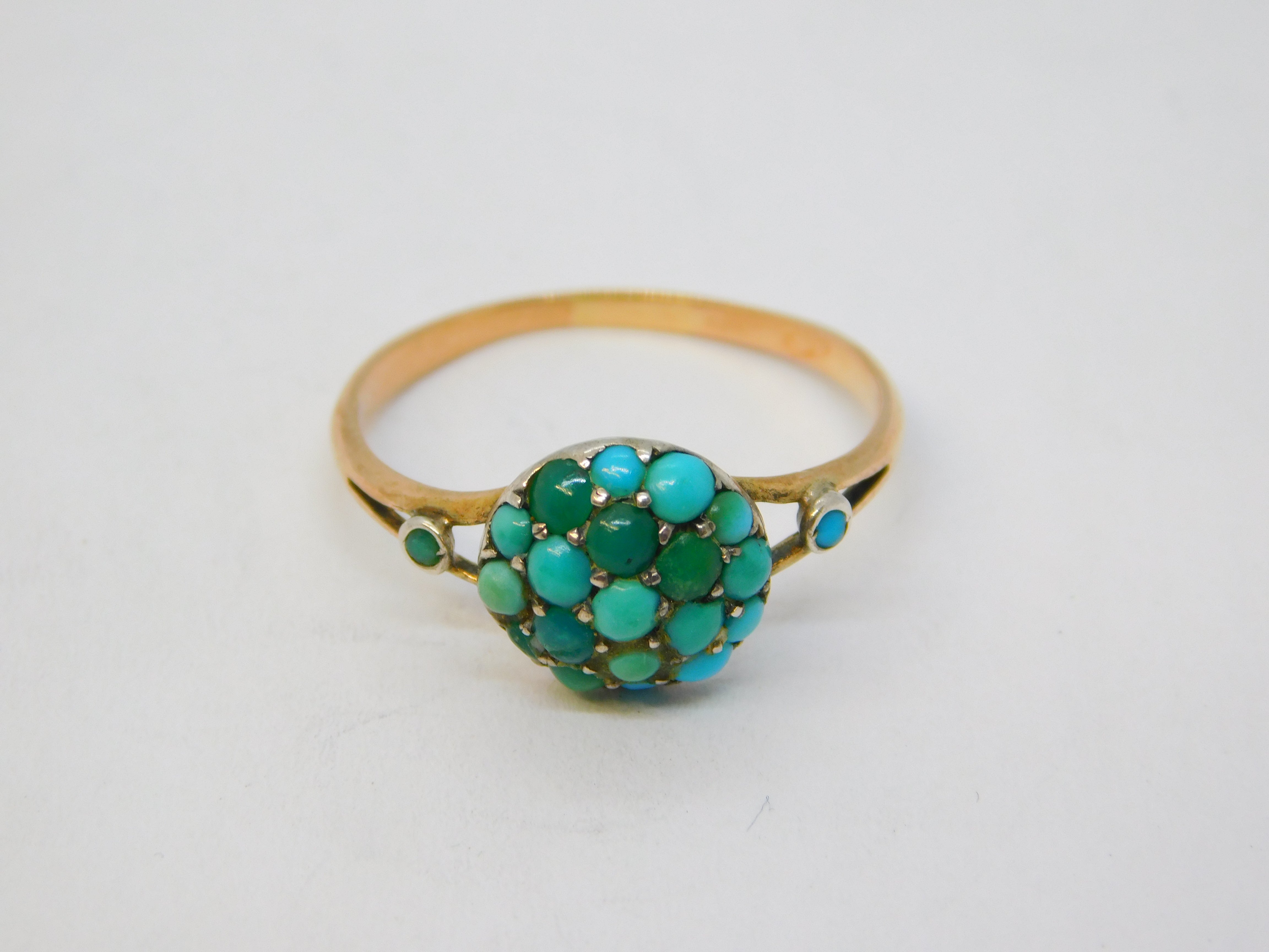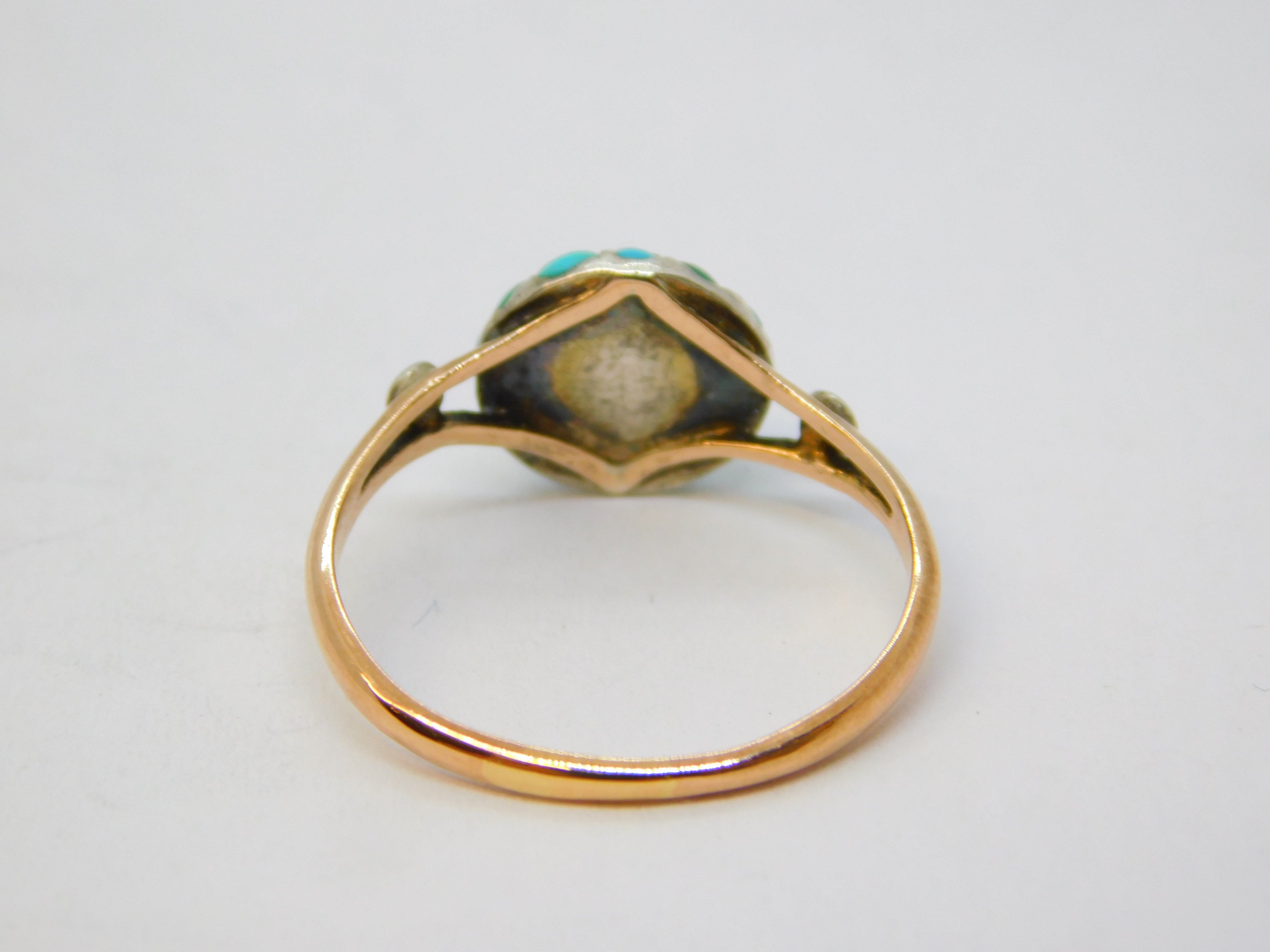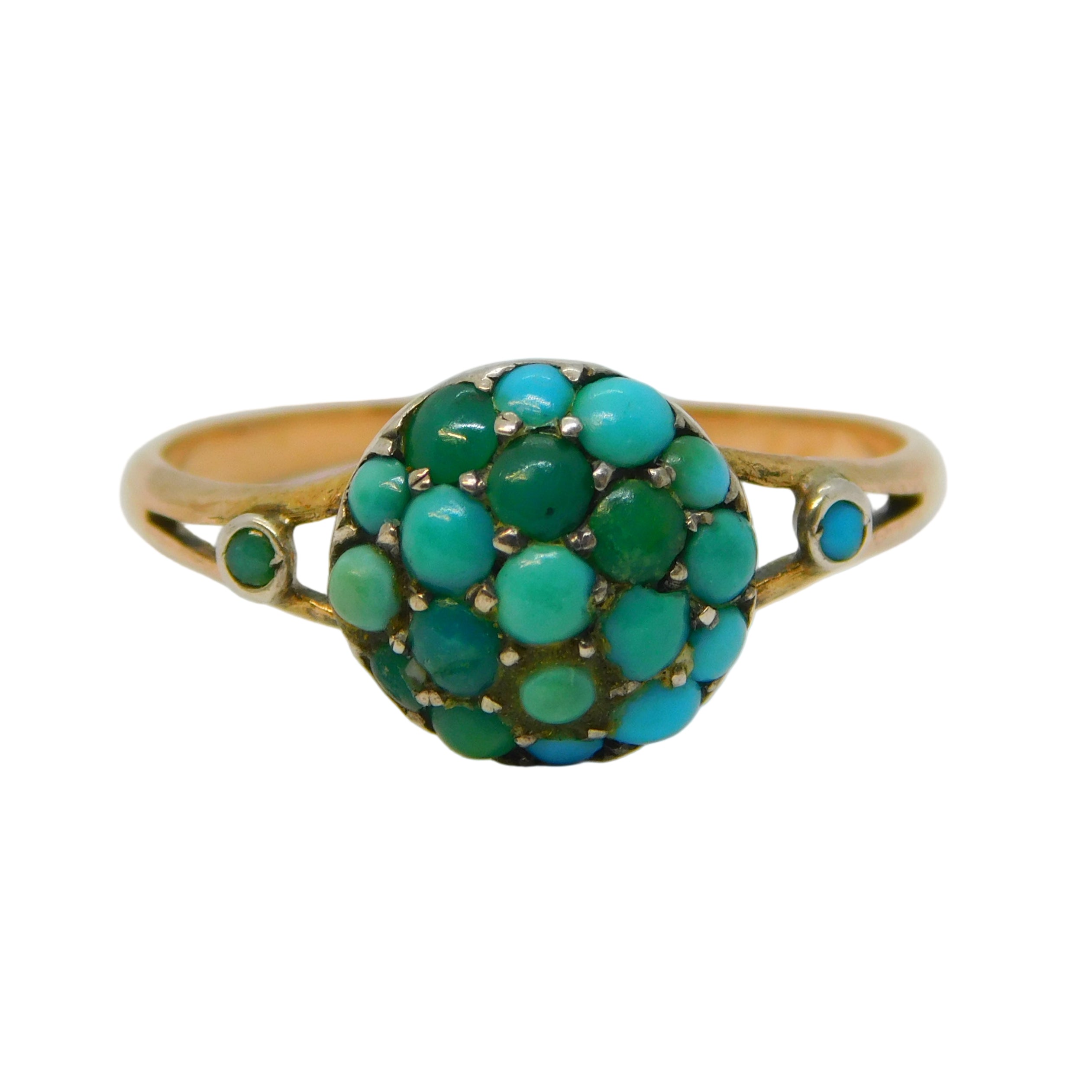 Victorian 9ct Rose Gold Pave-Set Turquoise Shield Dress Ring Antique c1880