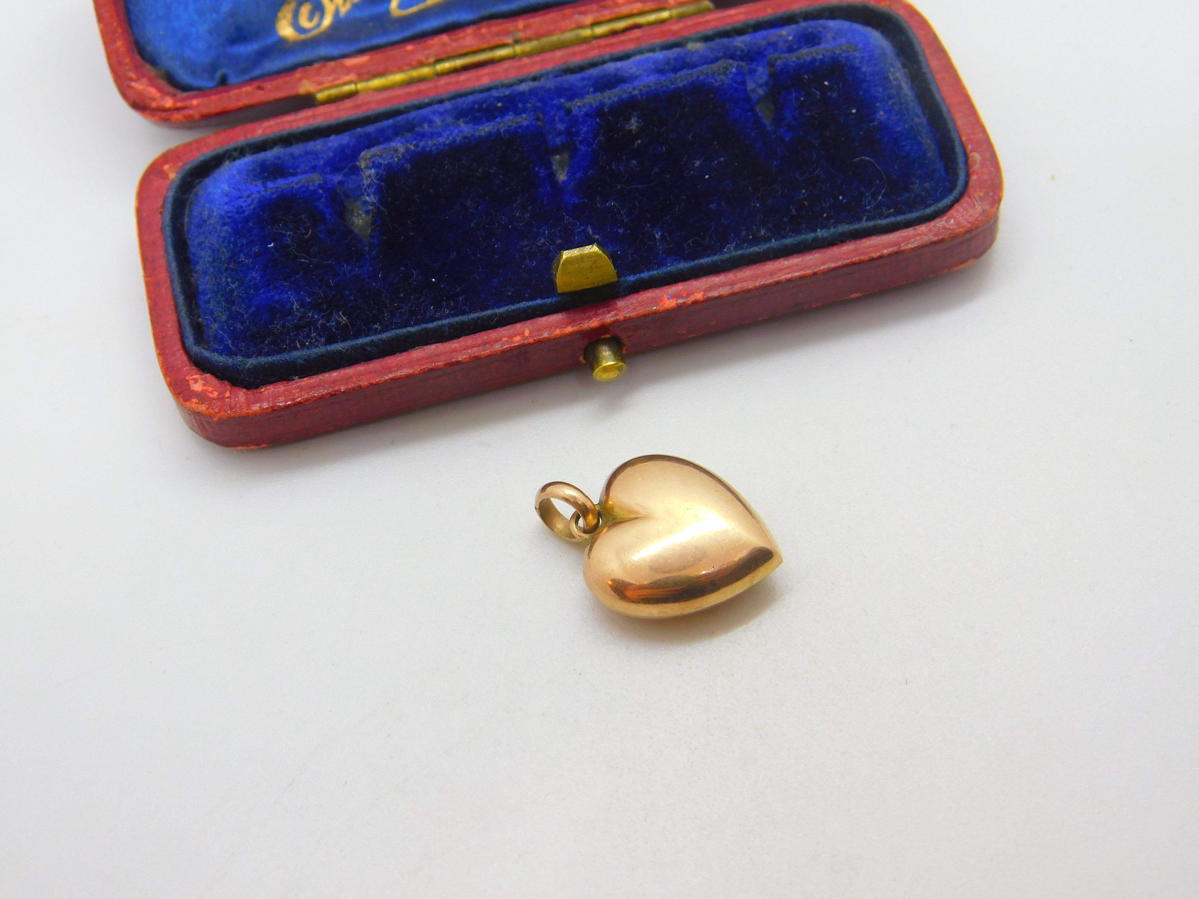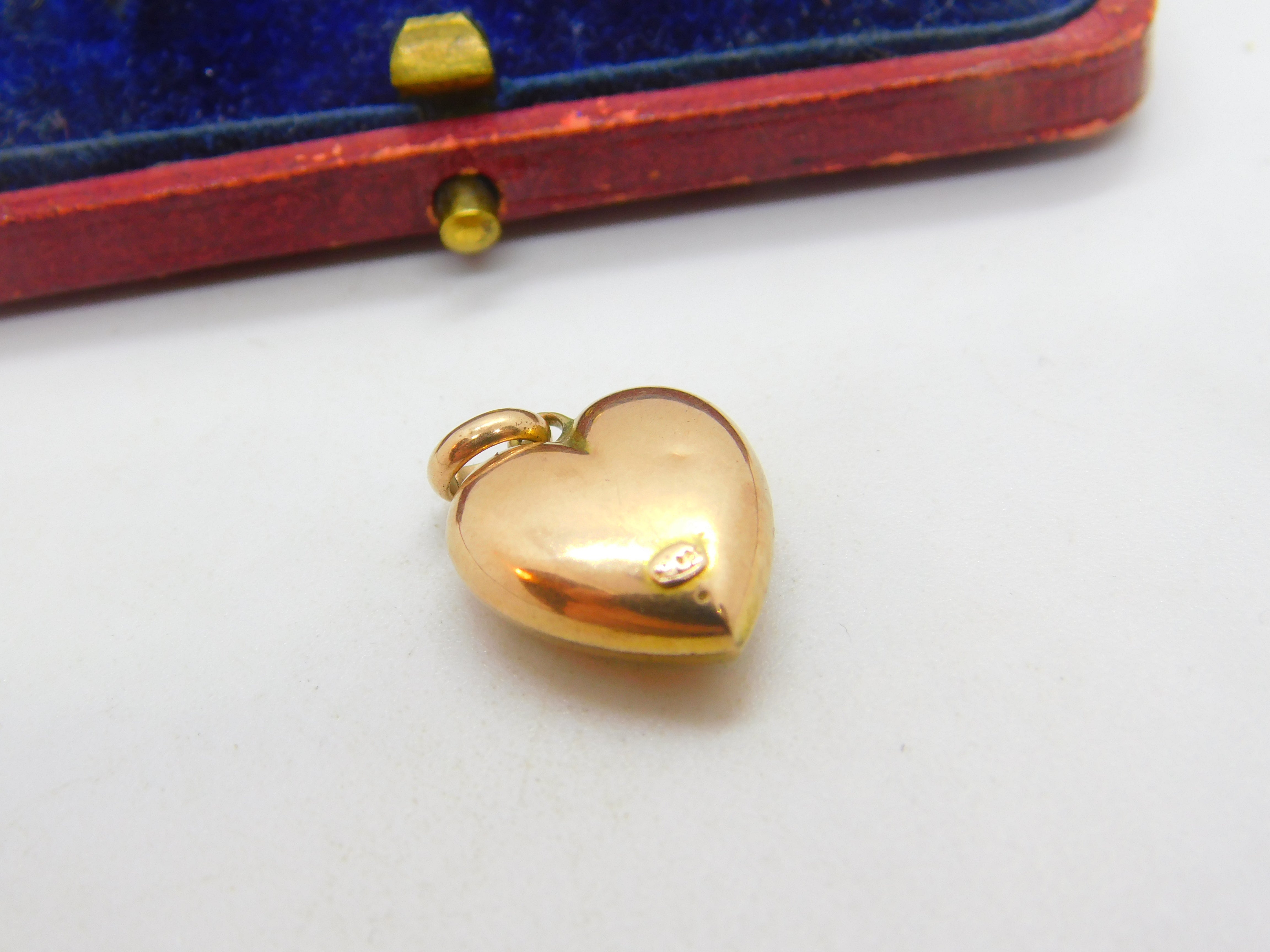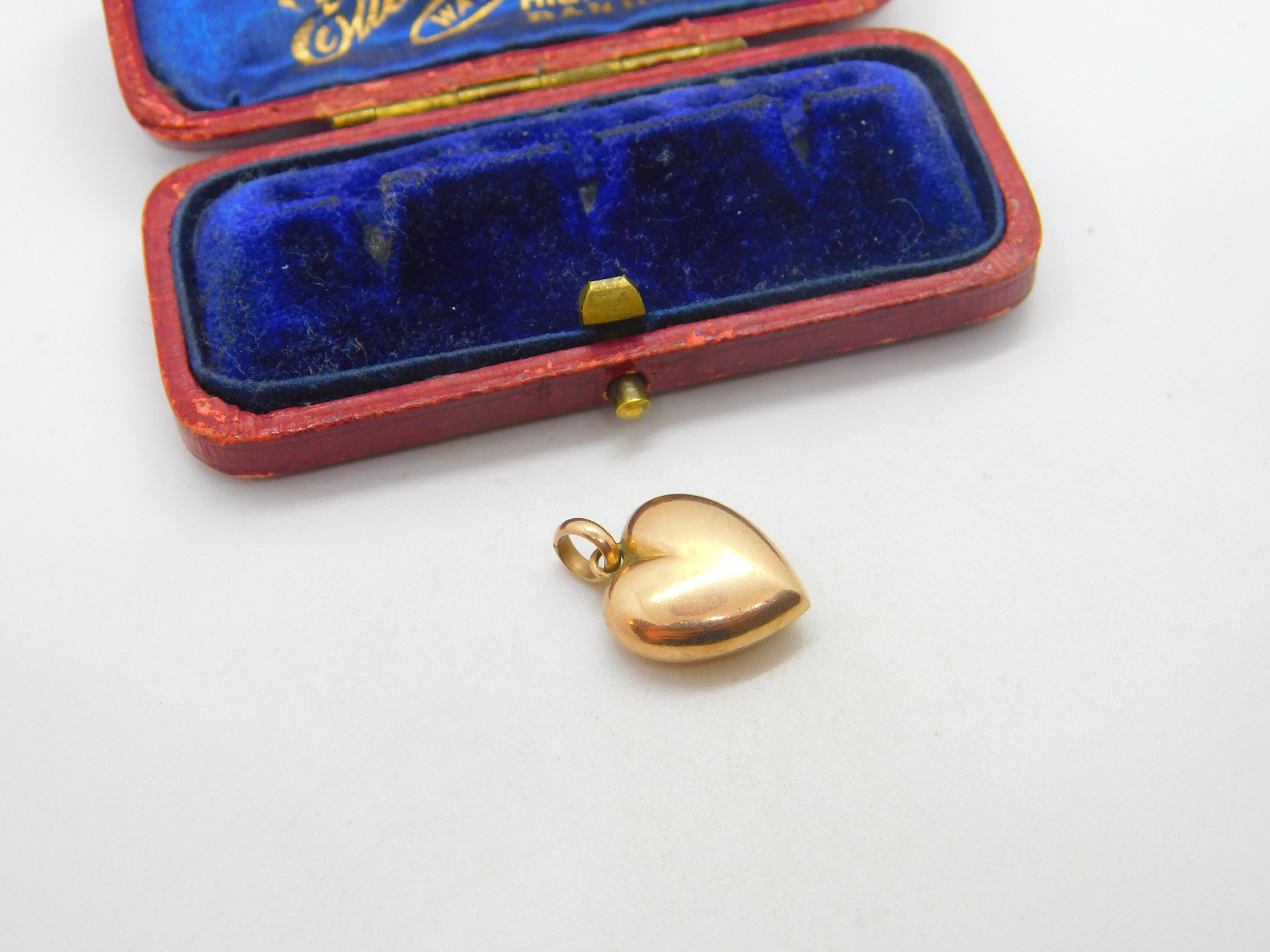 Victorian 9ct Rose Gold Puffy Heart Charm or Pendant Antique c1900