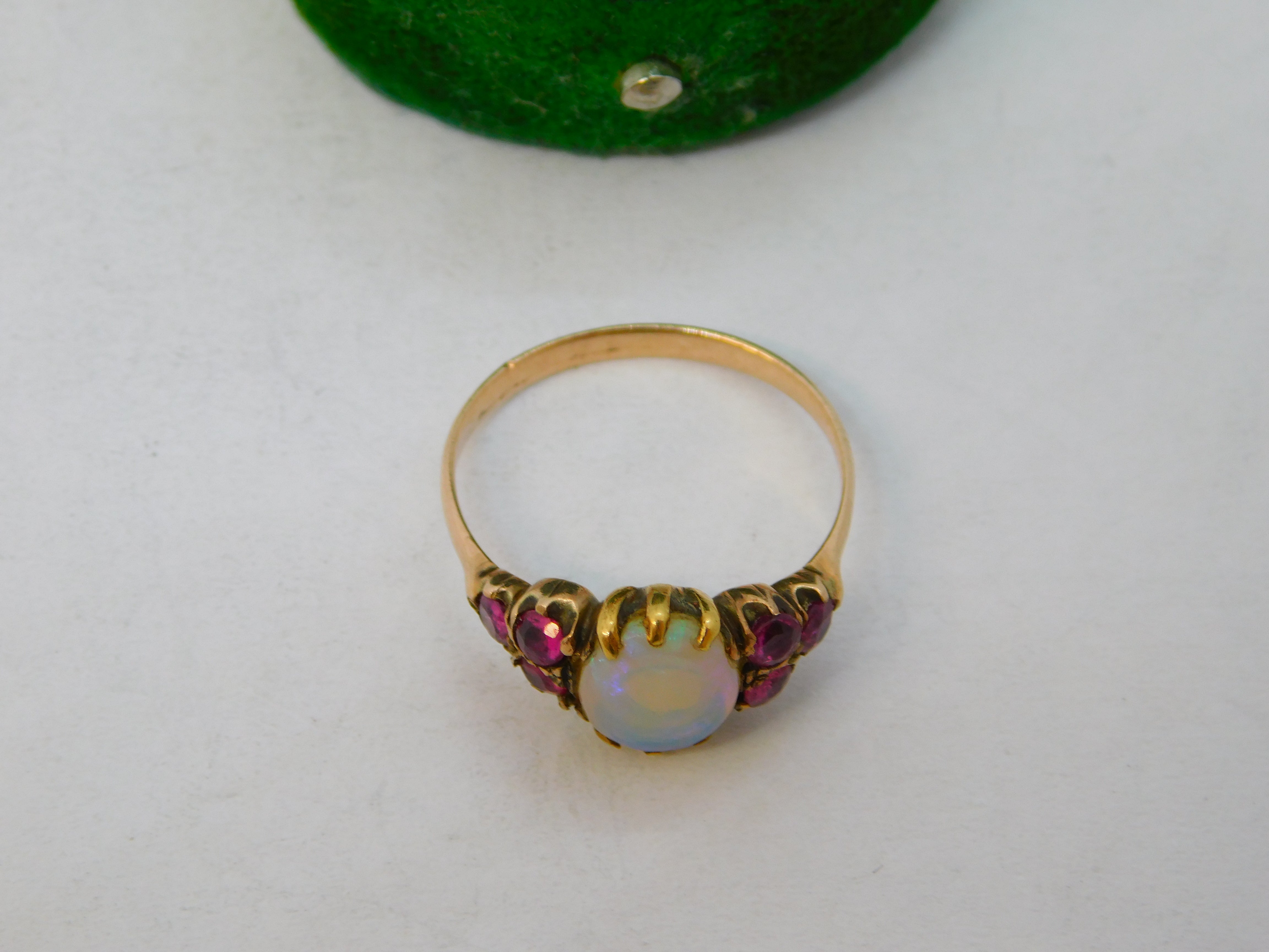 Victorian 9ct Rose Gold, White Opal & Ruby Set Dress Ring Antique c1900
