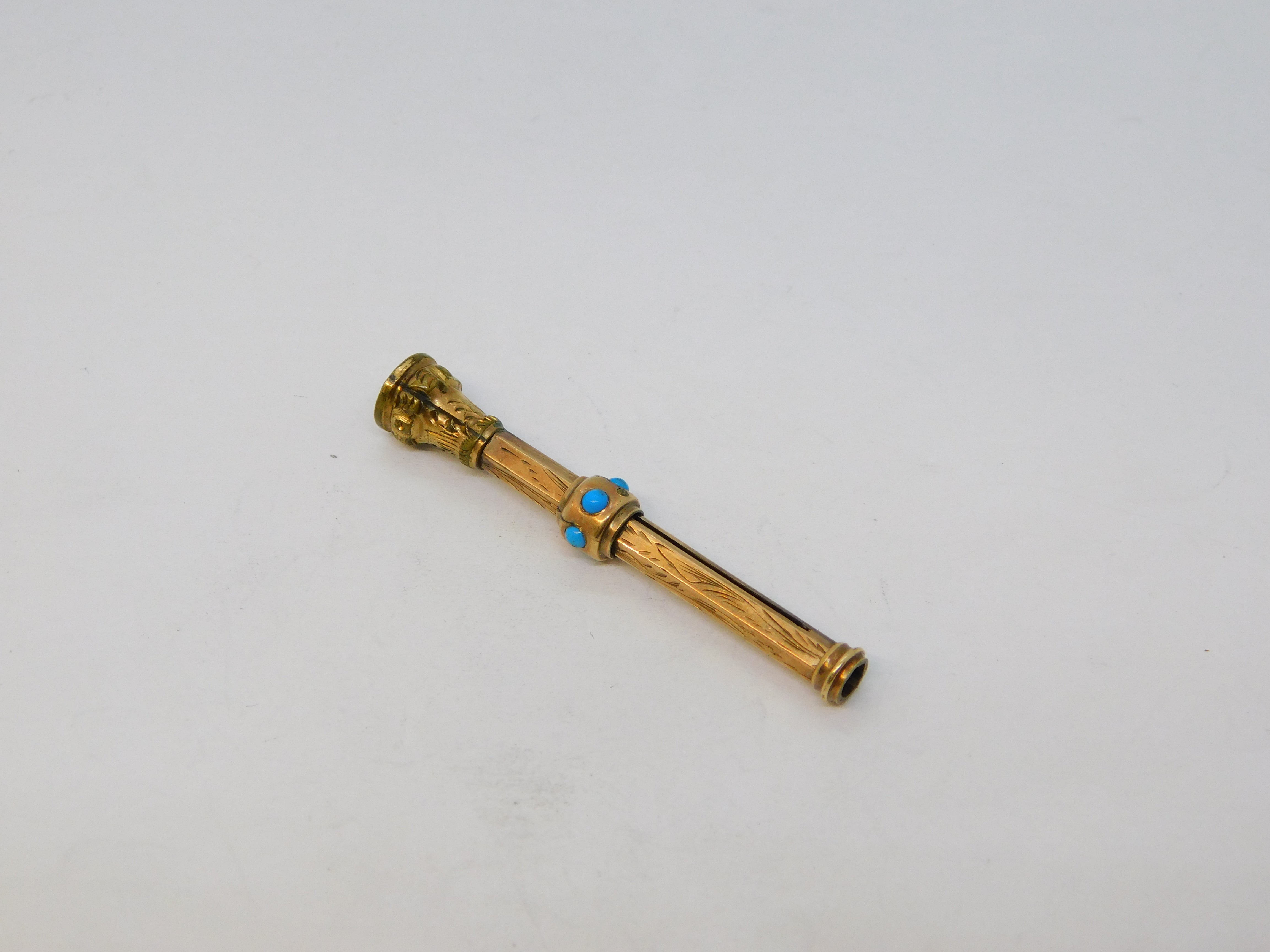 Victorian 9ct Yellow Gold Cased & Turquoise Set Propelling Pencil Antique c1860