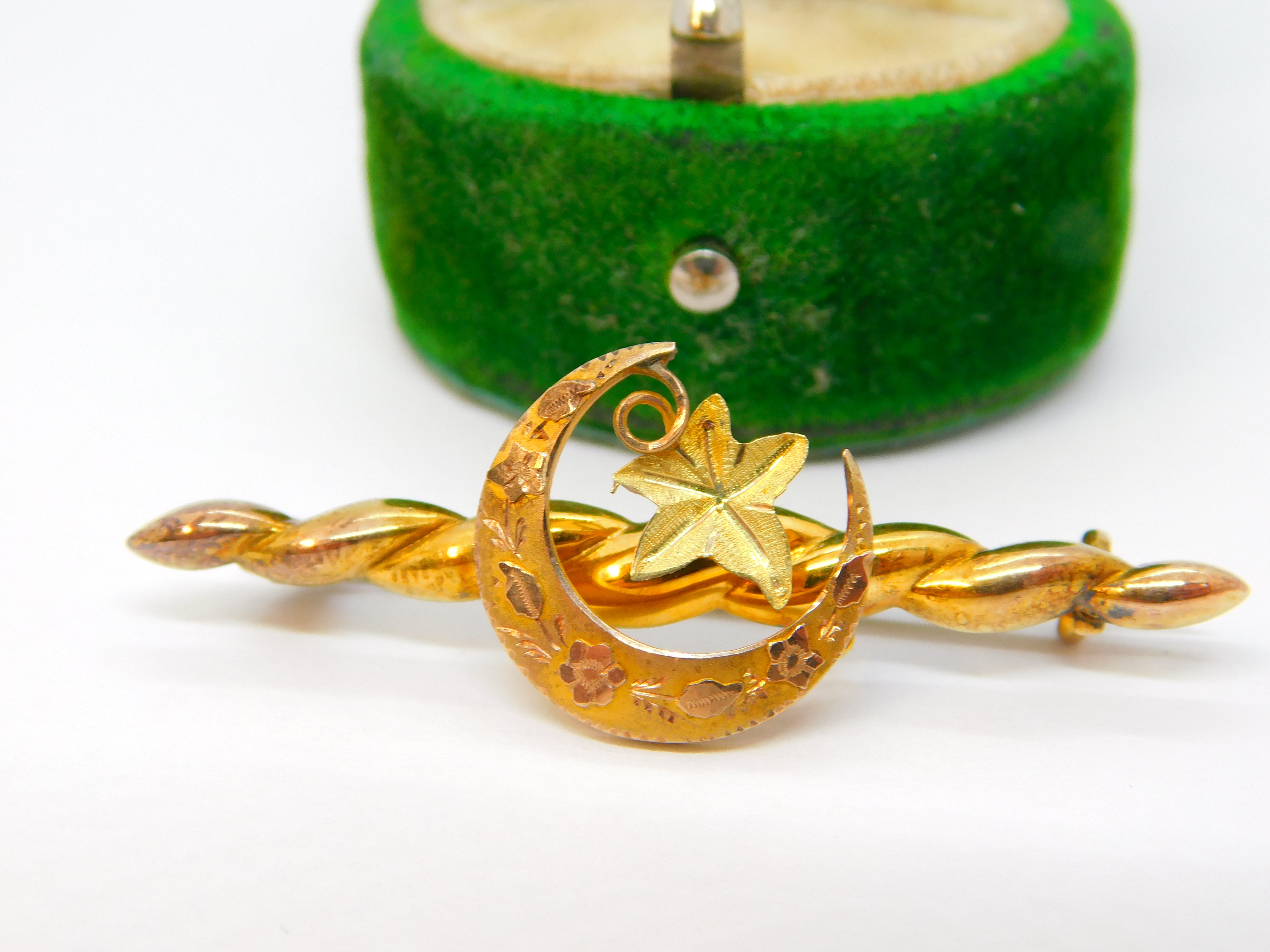 Victorian 9ct Yellow Gold Crescent Form Sweetheart Brooch Antique 1896 Chester