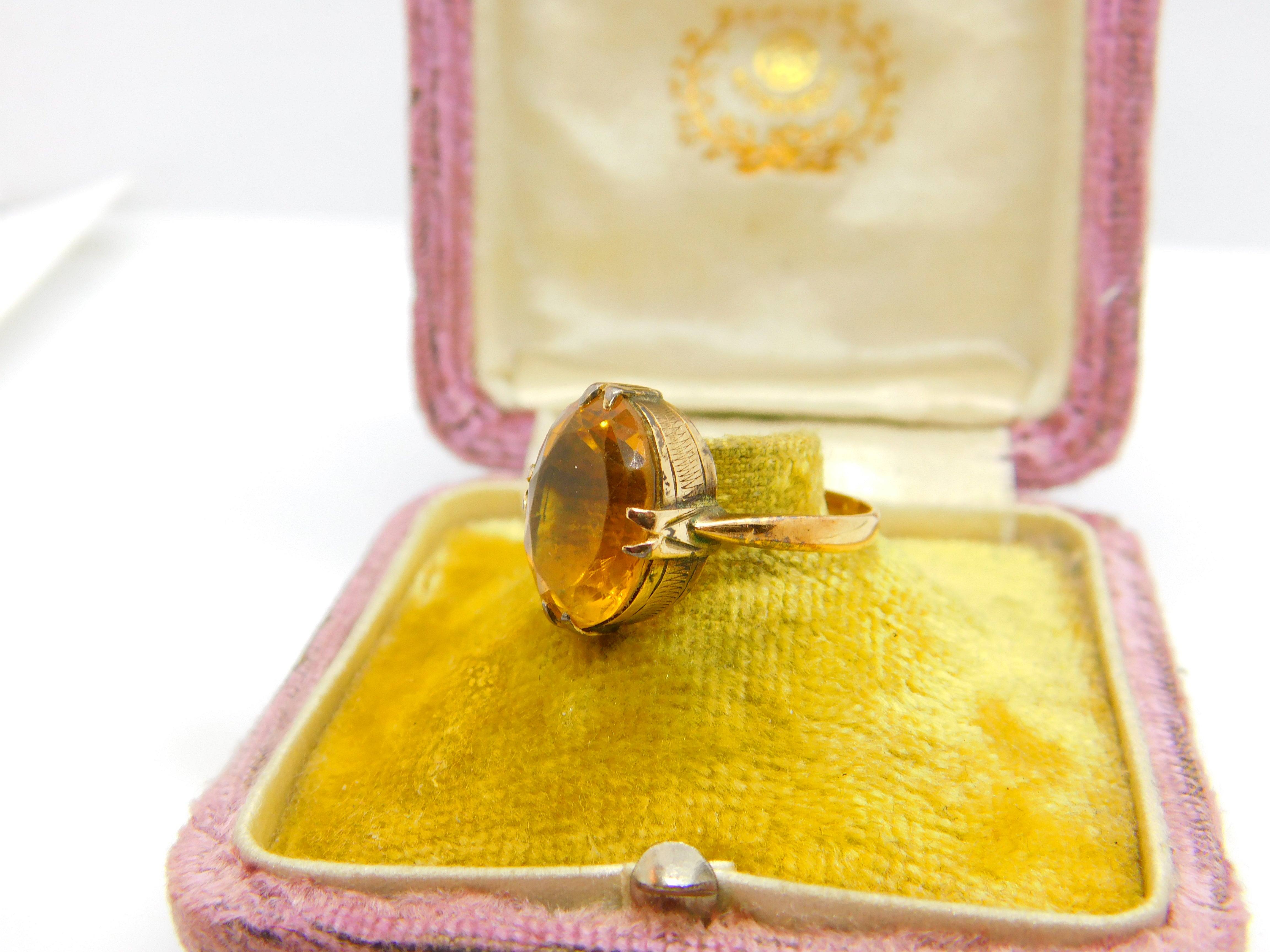 Victorian 9ct Yellow Gold Faceted Citrine Set Cocktail Ring c1890 Antique