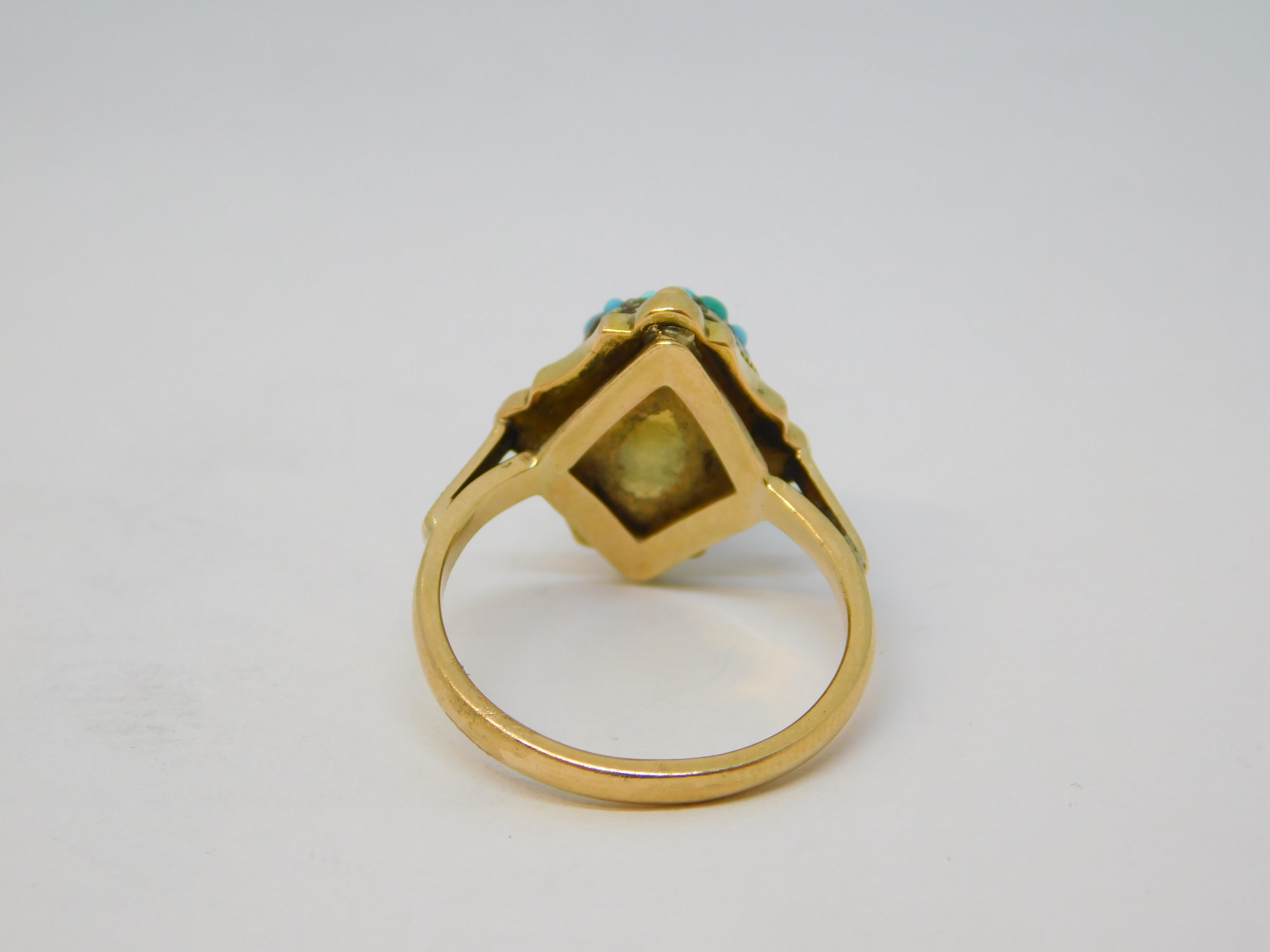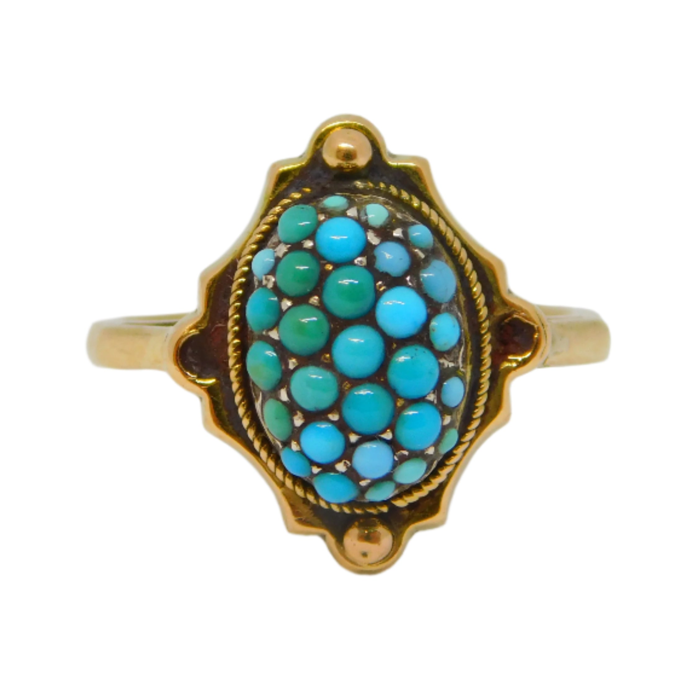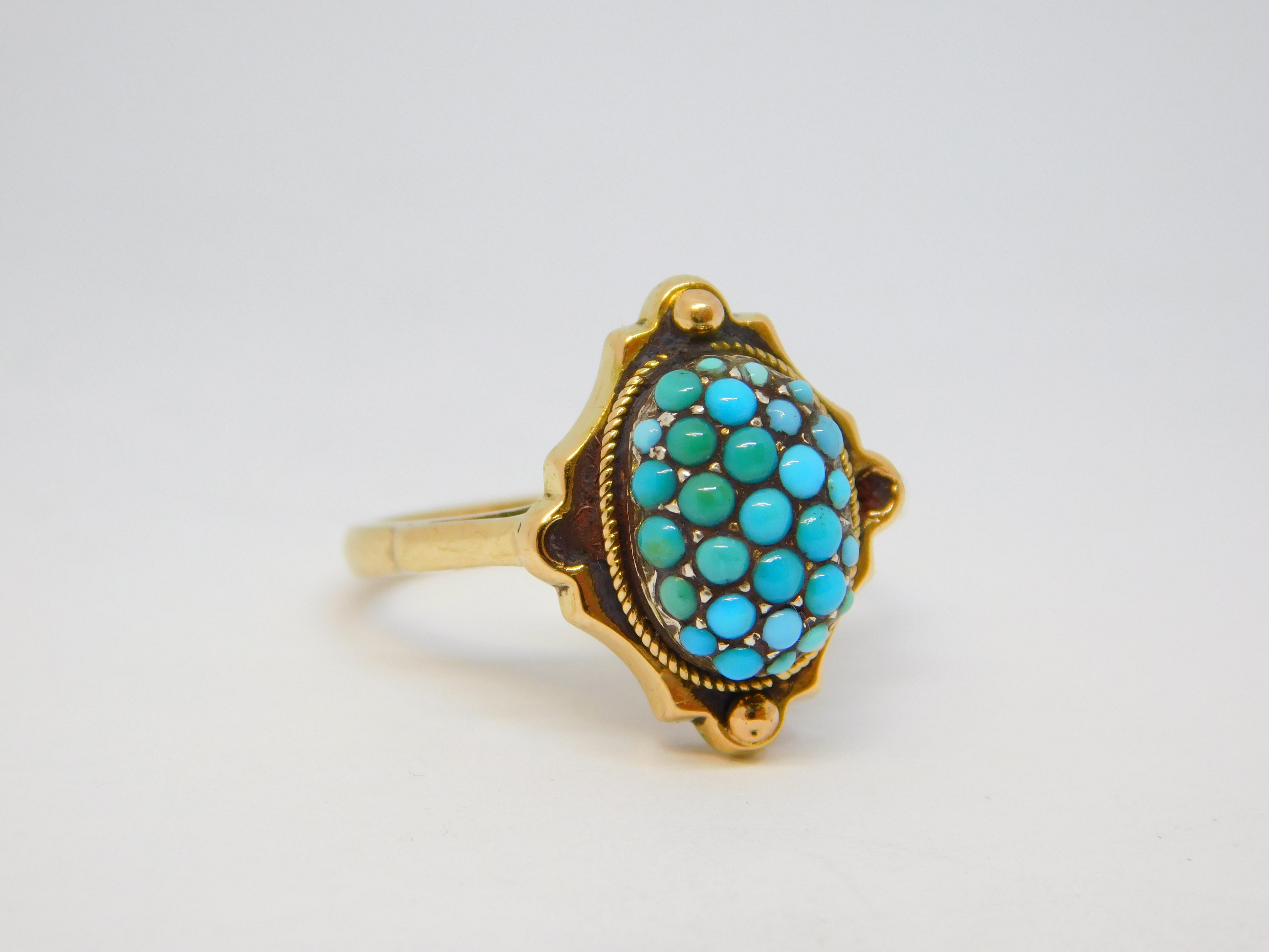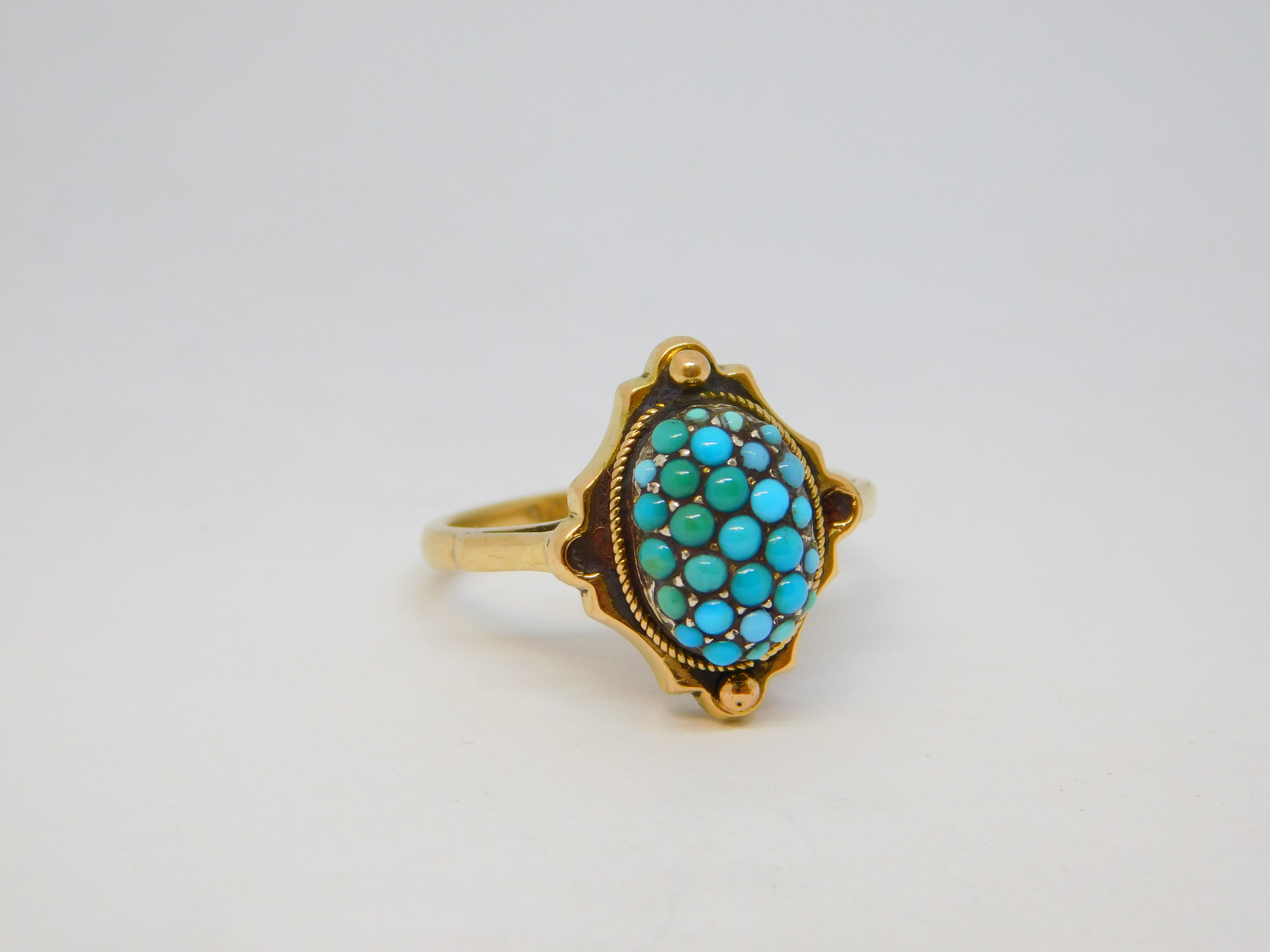 Victorian 9ct Yellow Gold Pave Set Turquoise Dress Ring Antique c1890