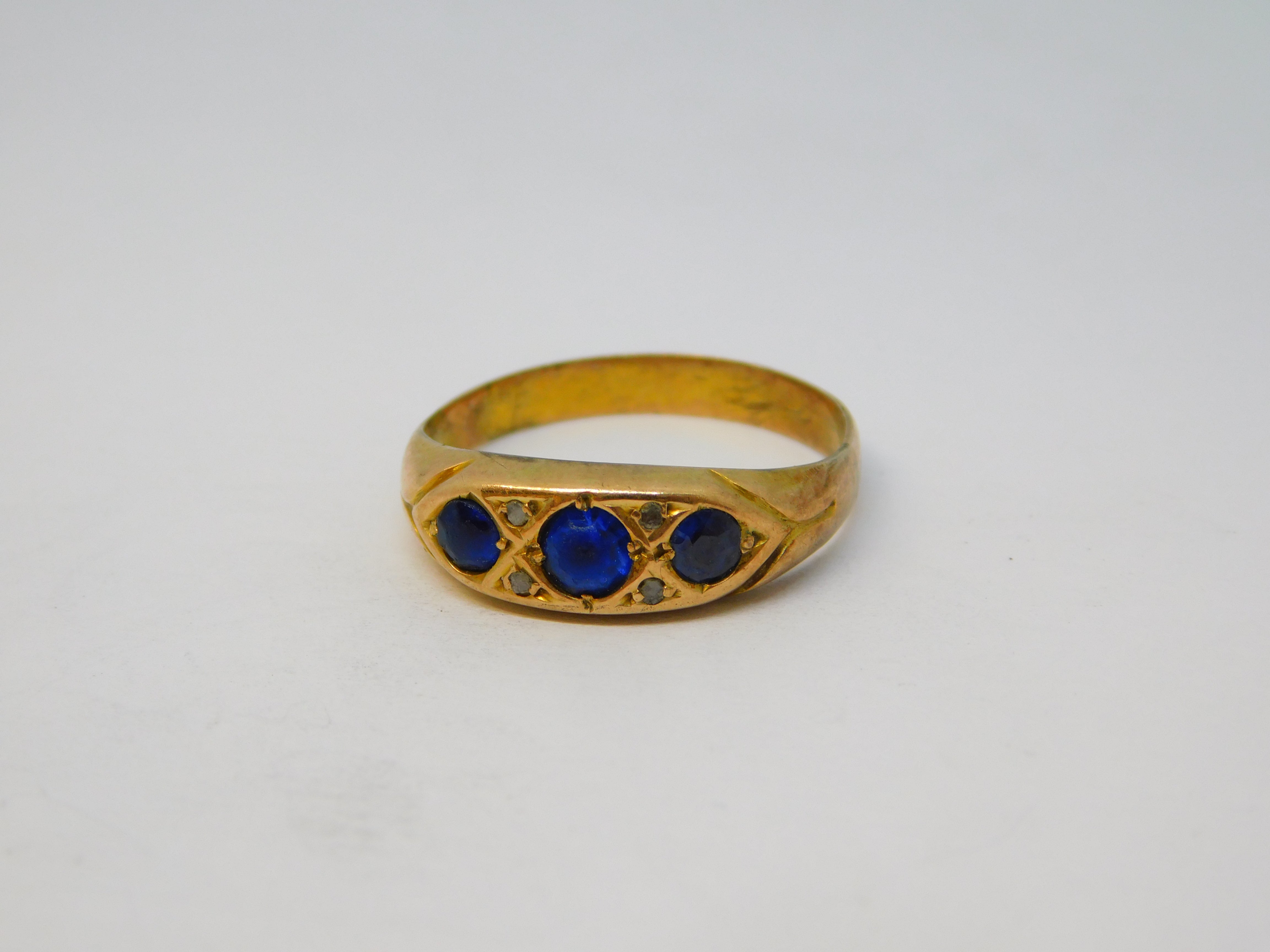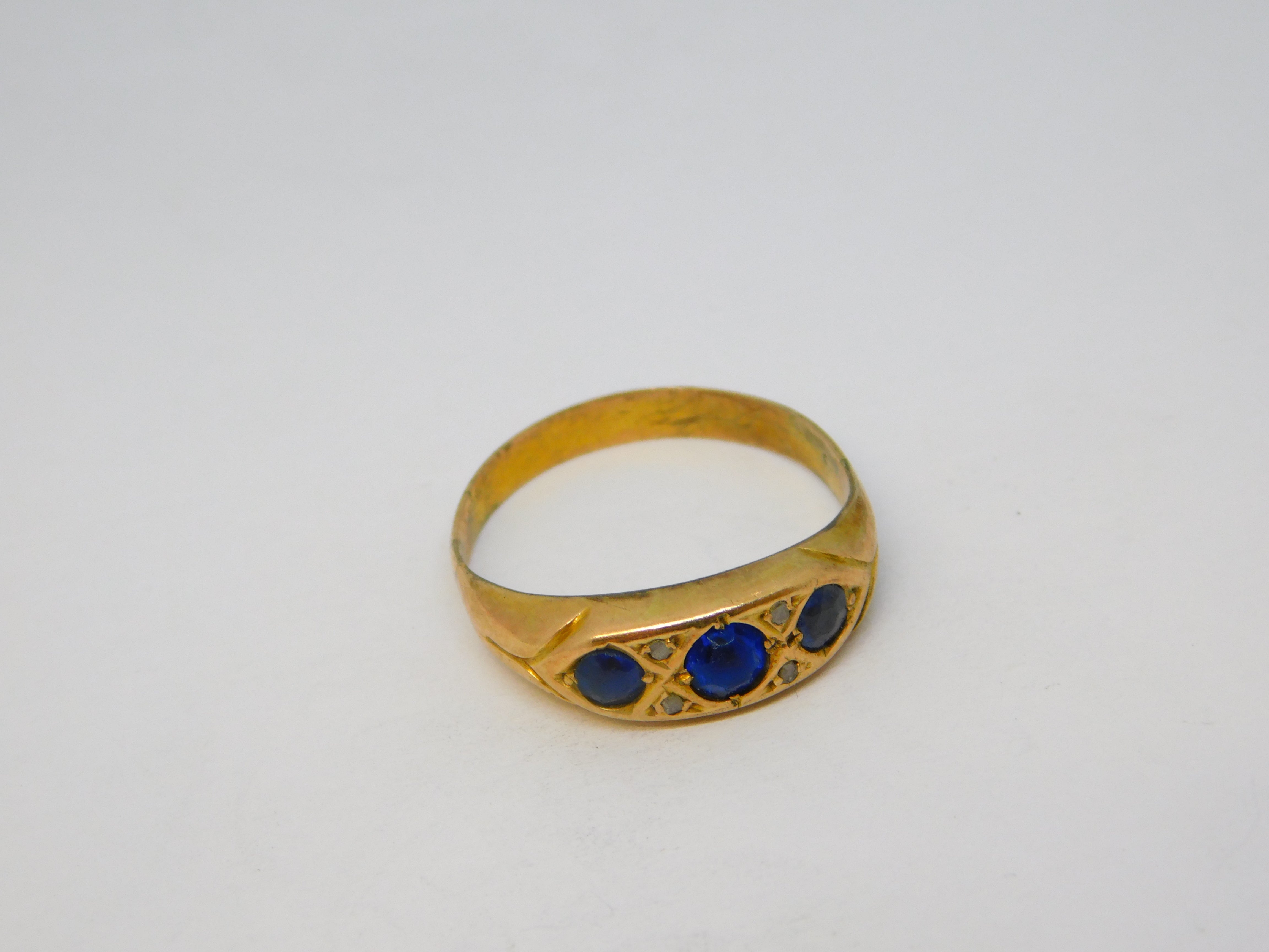 Victorian 9ct Yellow Gold, Sapphire & Diamond Boat Ring Antique c1890