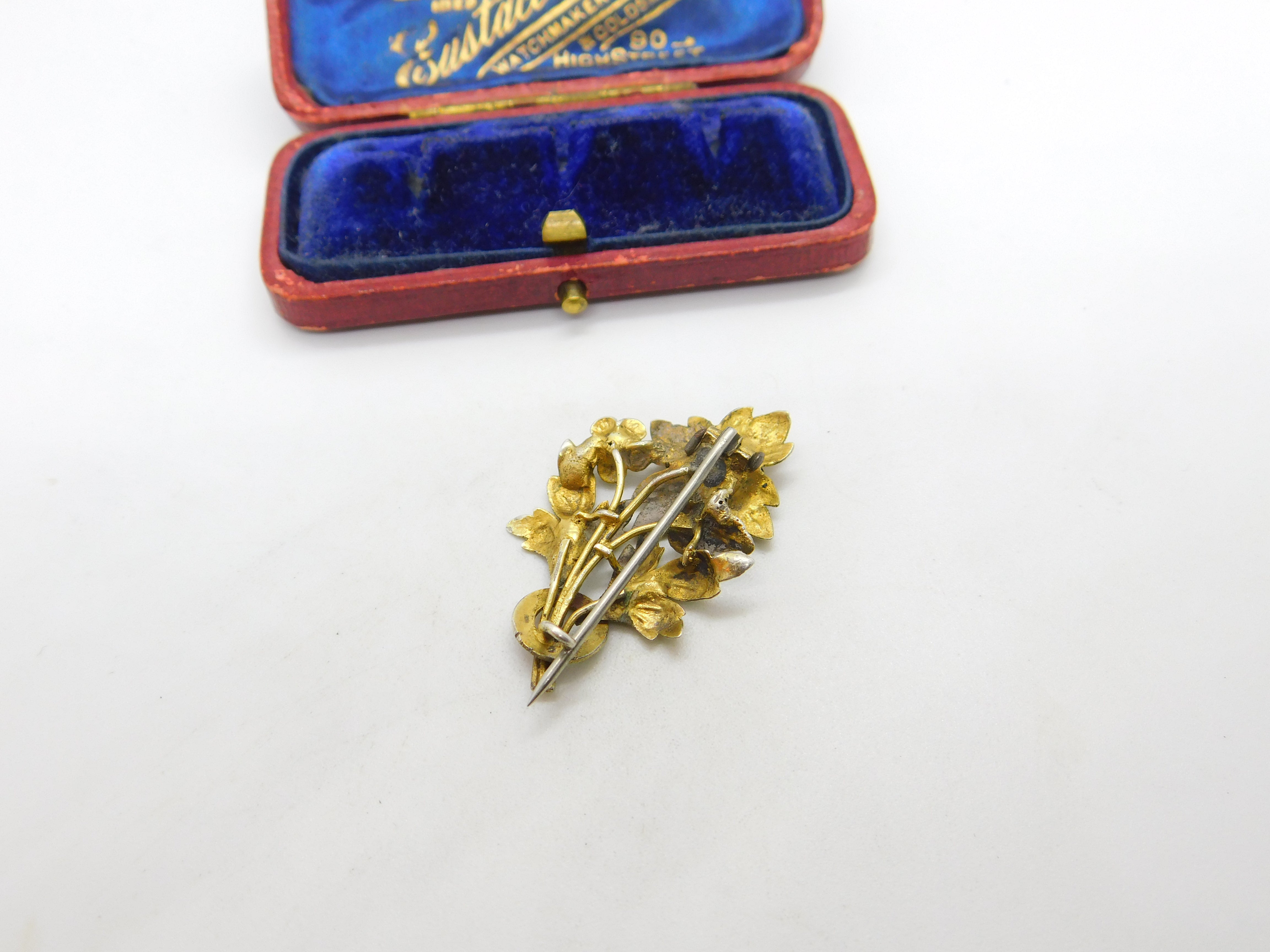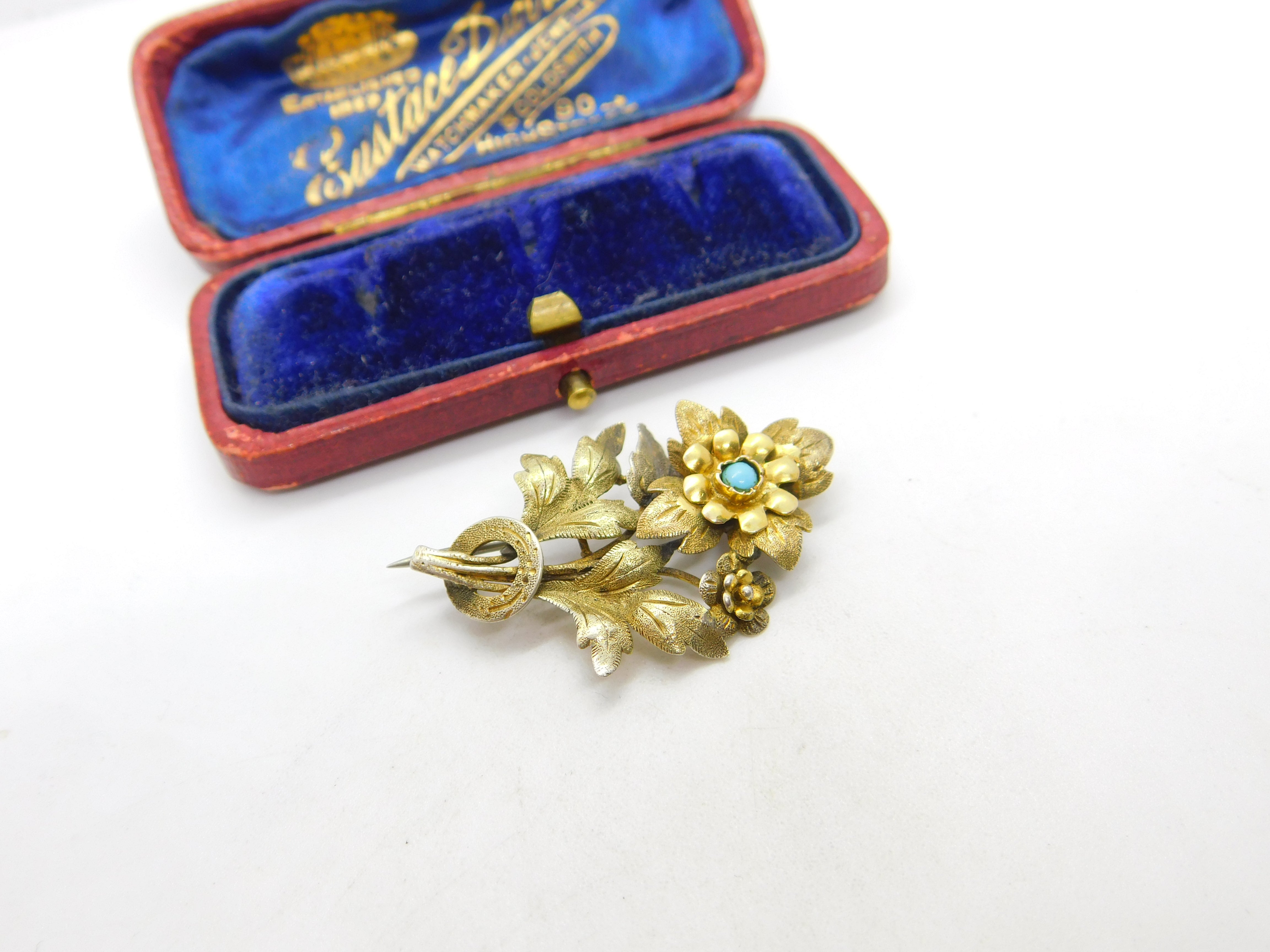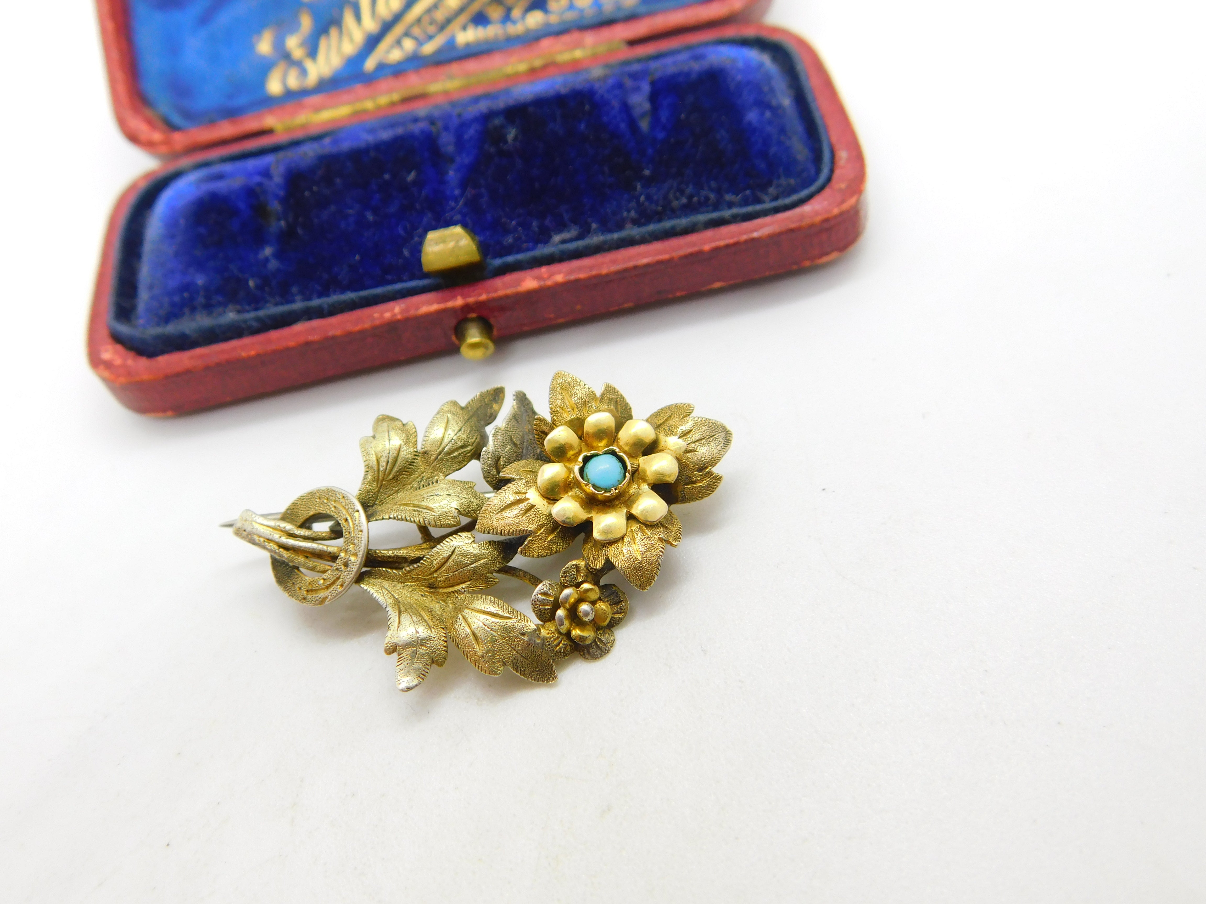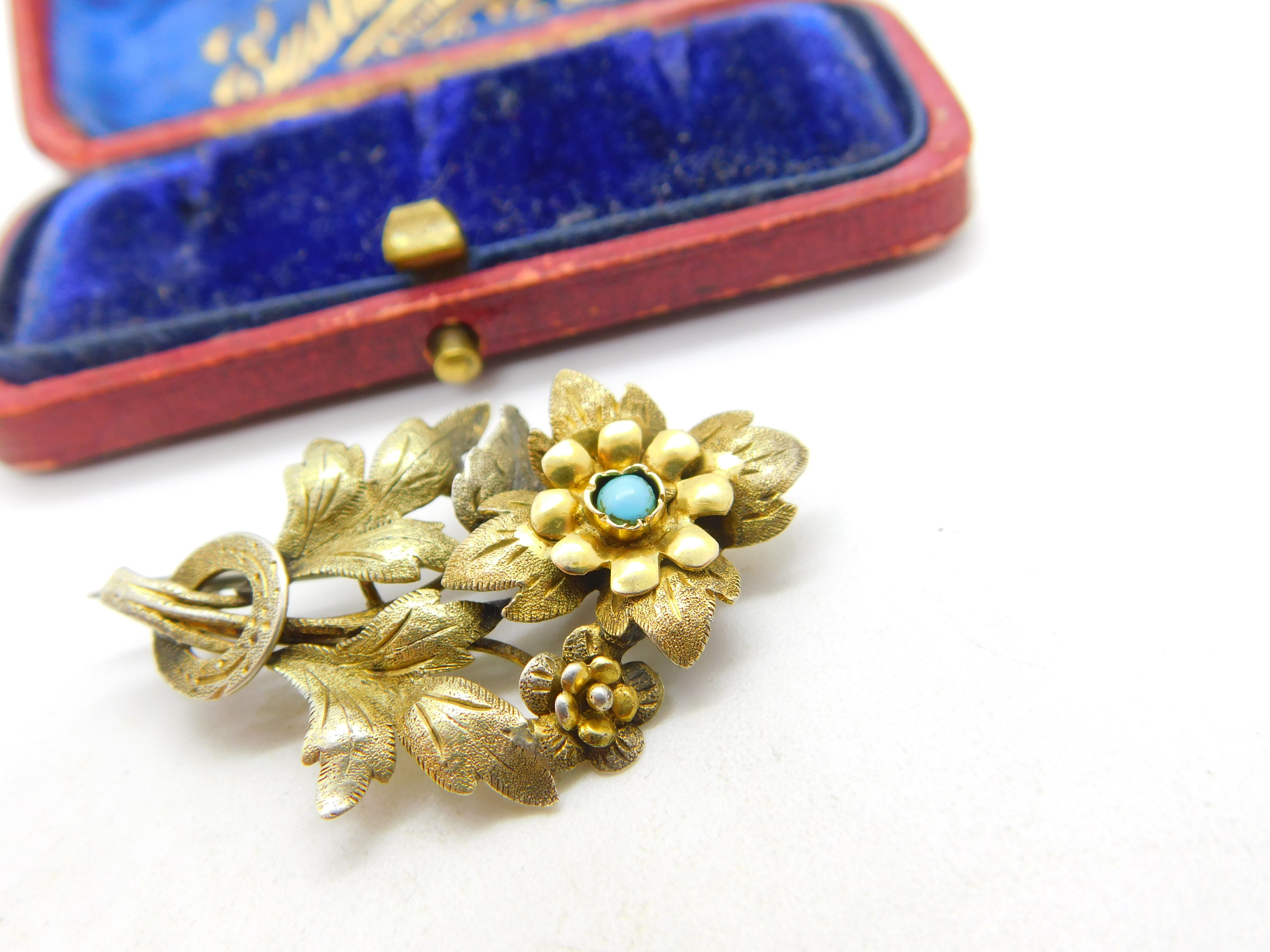 Victorian 9ct Yellow Gold, Turquoise Set Floral Sweetheart Brooch c1880 Antique