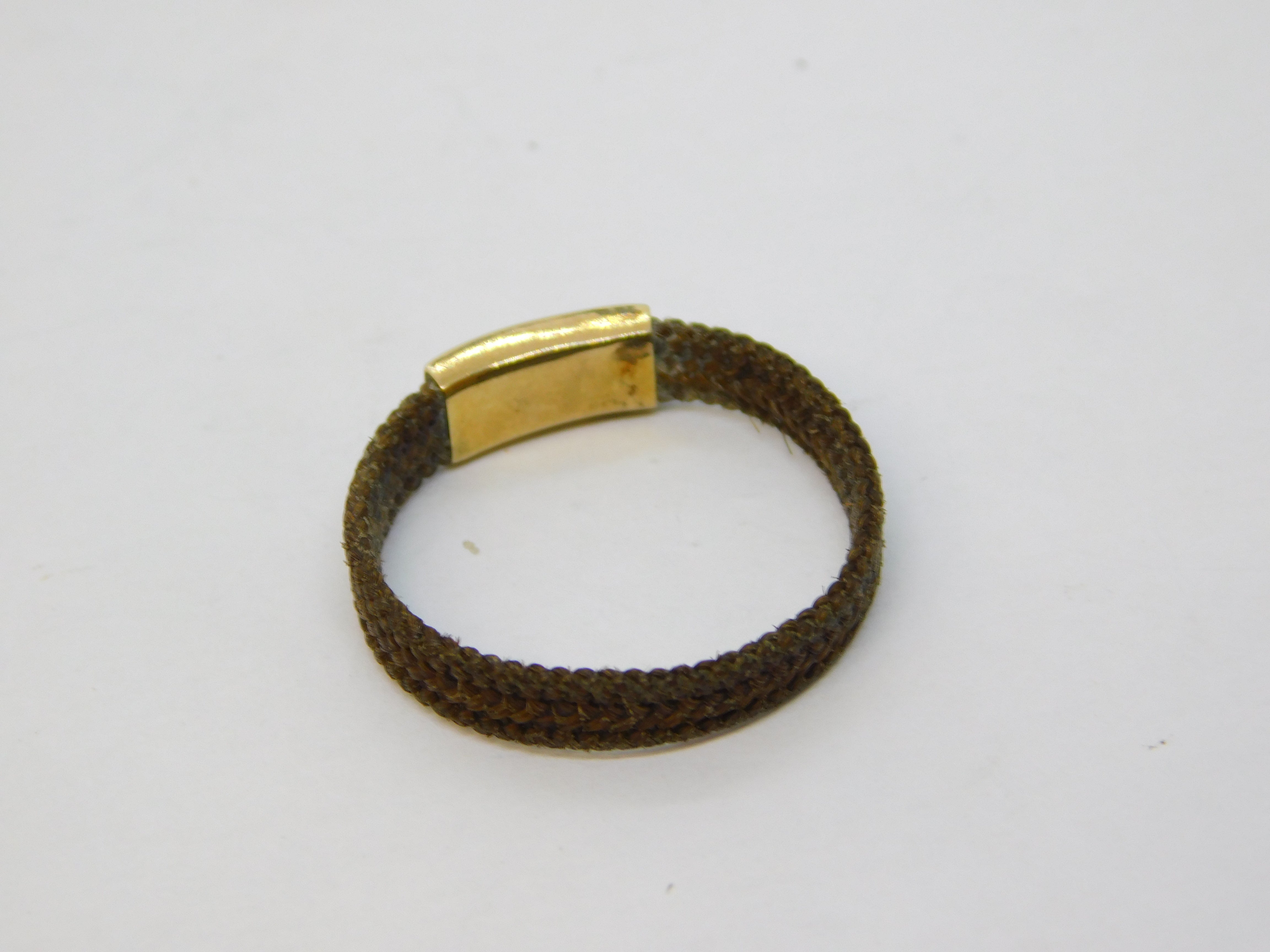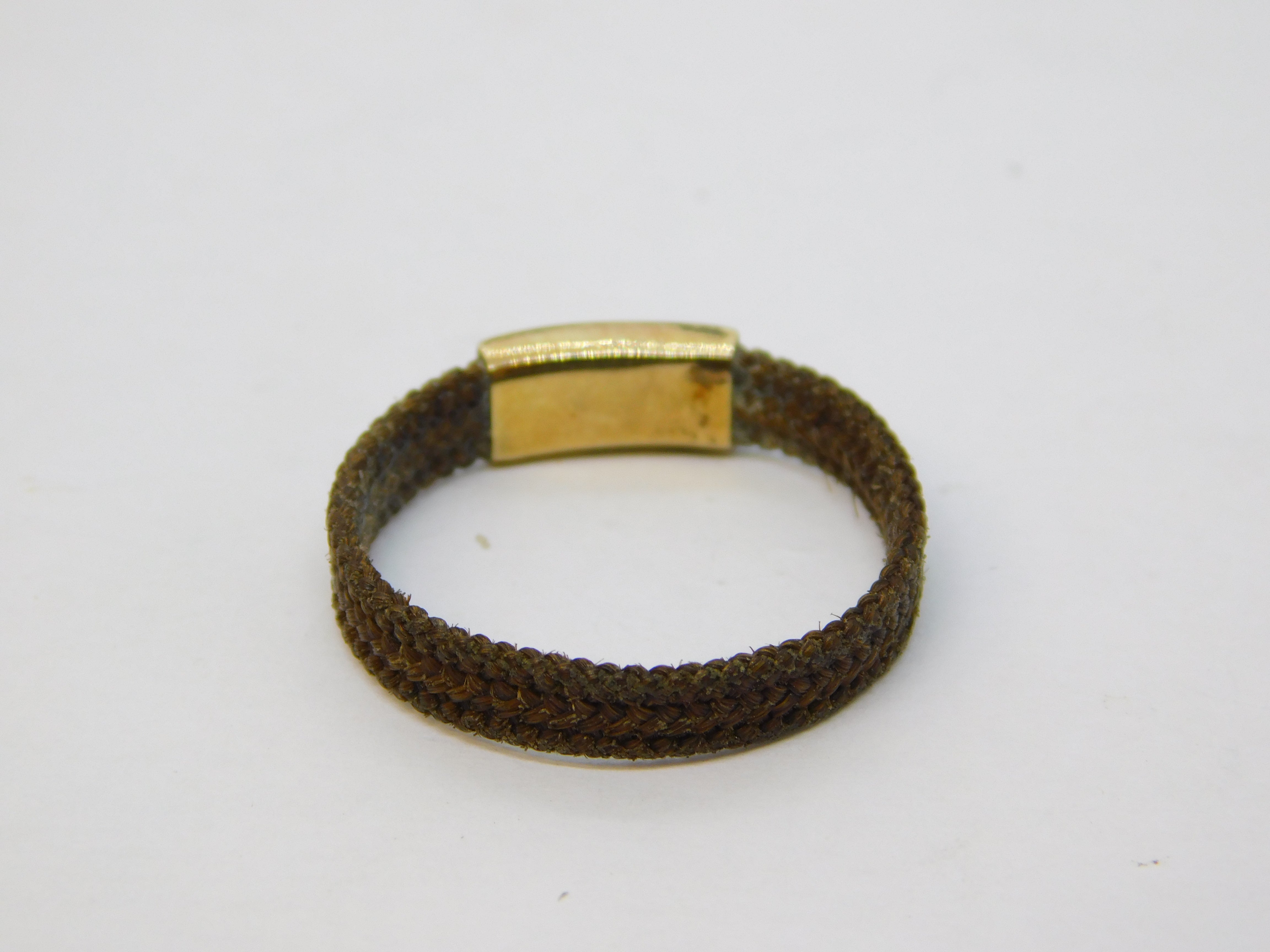 Victorian 9ct Yellow Gold Woven Hair Set Mourning Ring Antique c1840
