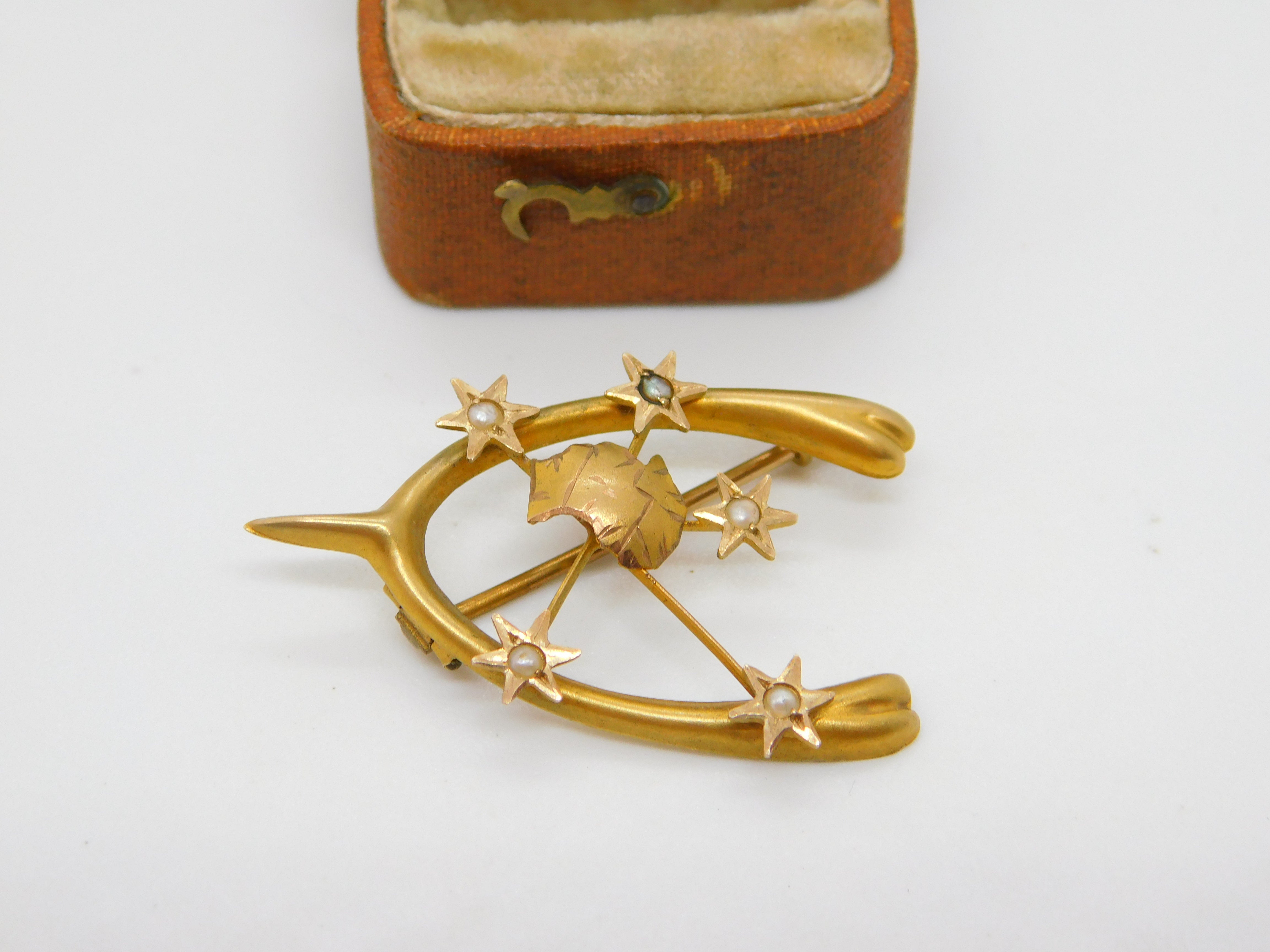 Victorian Australian 9ct Gold Seed Pearl Southern Cross Lucky Brooch c1880