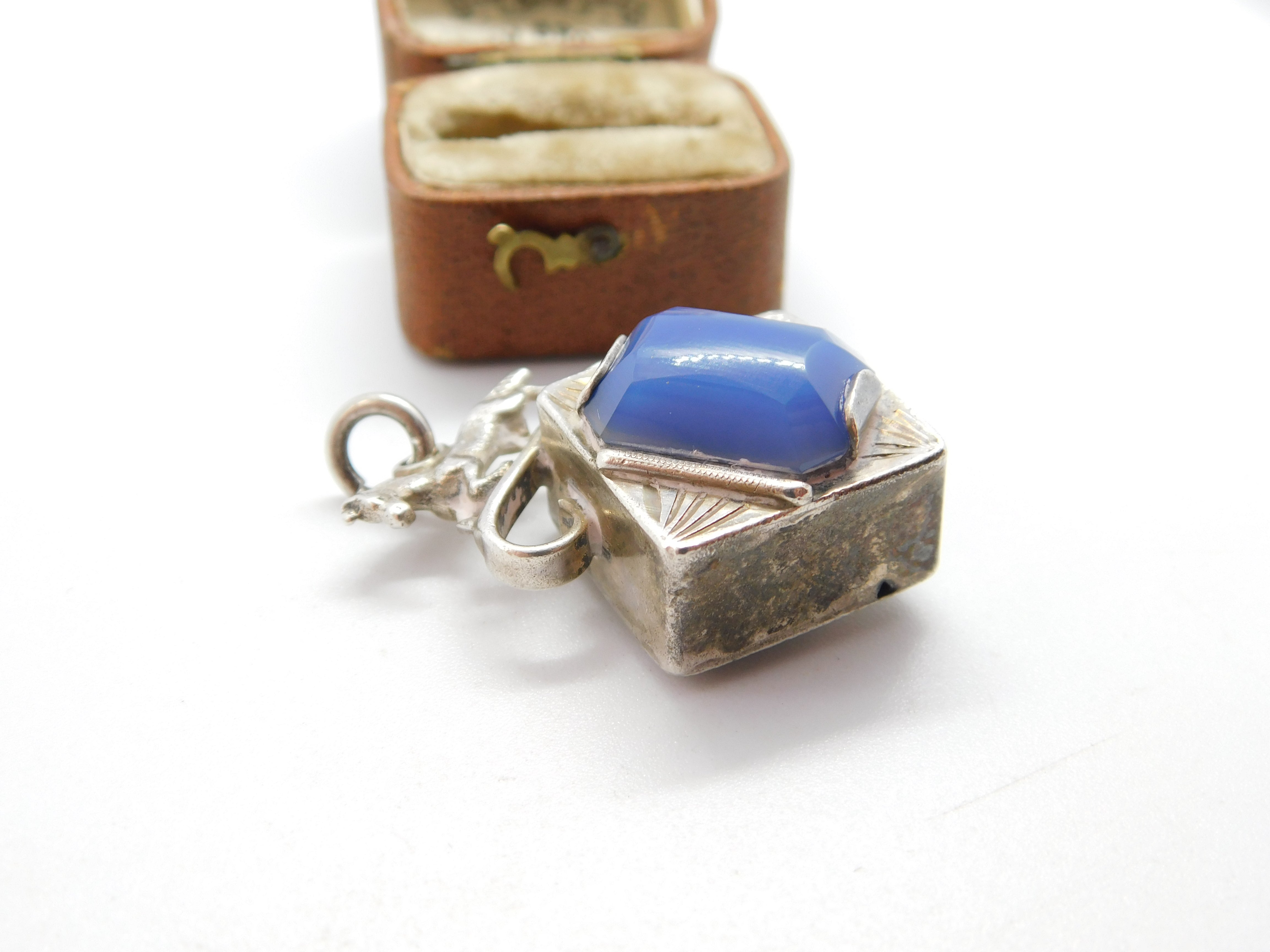 Details: A fantastic and wonderfully designed antique Victorian large sterling silver pendant with trotting horse detailing and set with a large blue hardstone to the centre c1890, hallmarked to the edge. This is a wonderful item that would make a perfect gift or addition to any collection. The BOX pictured is for PRESENTATION ONLY and is NOT included in the listings but used to frame the pictures unless specifically stated otherwise.