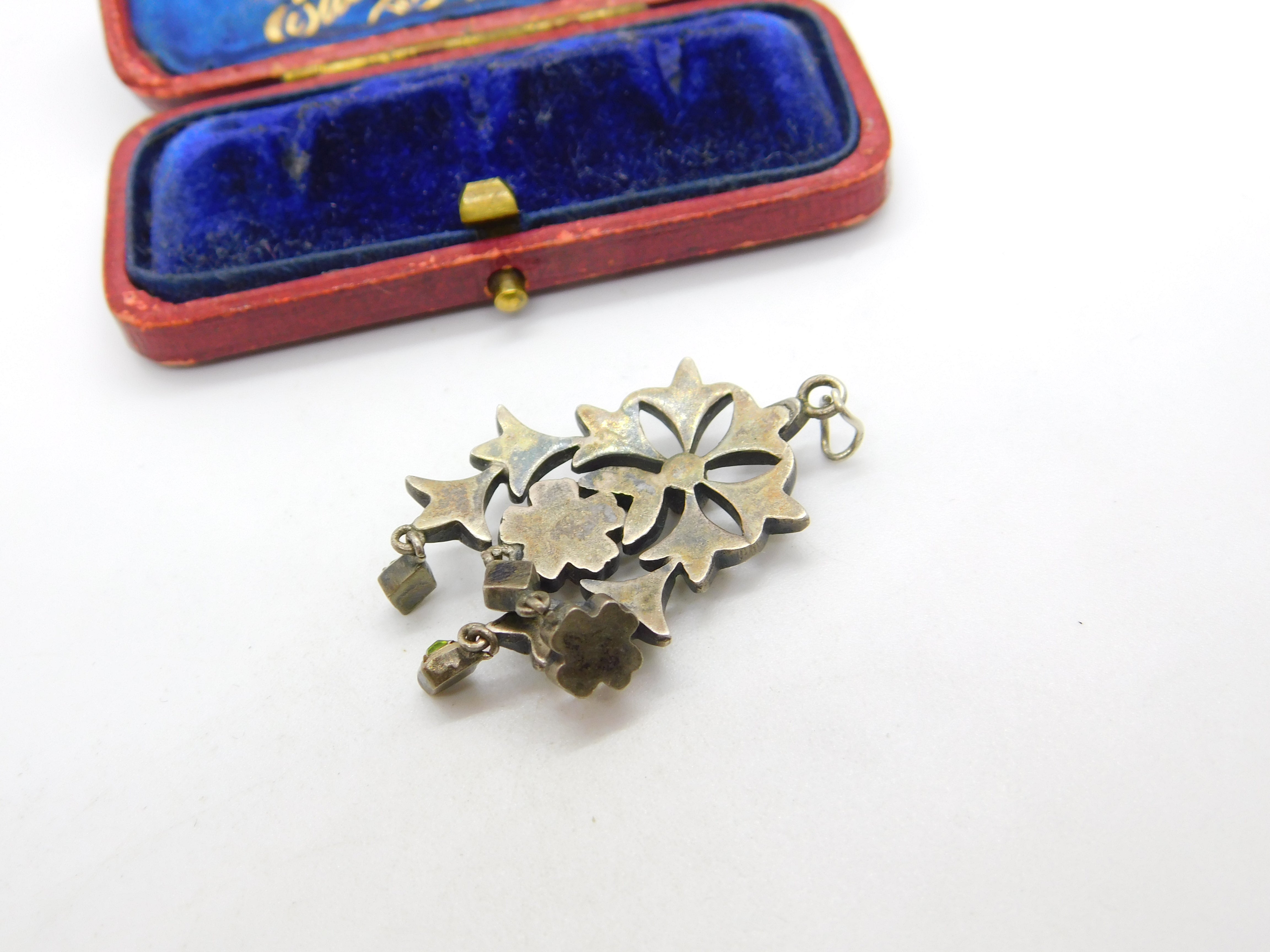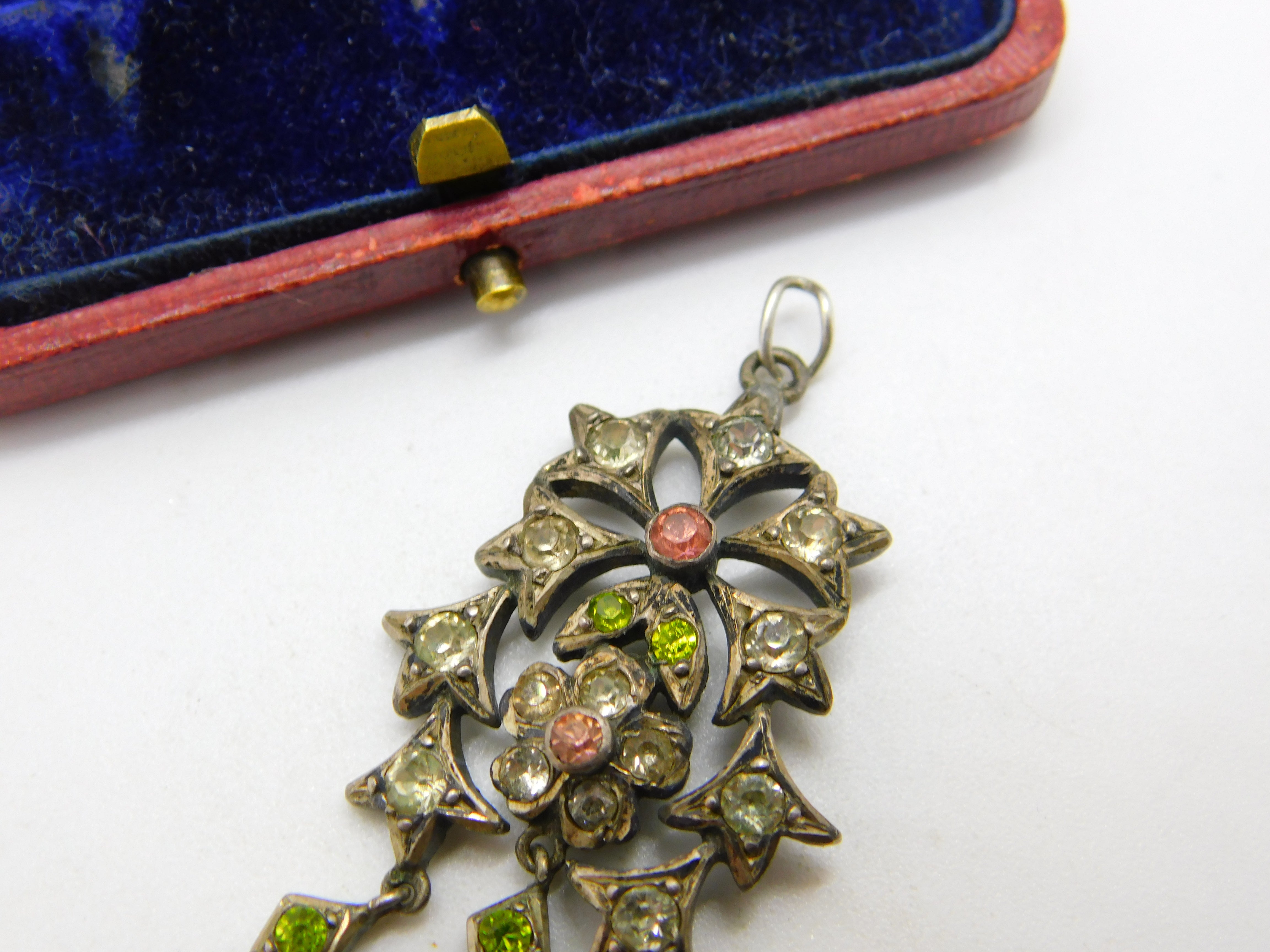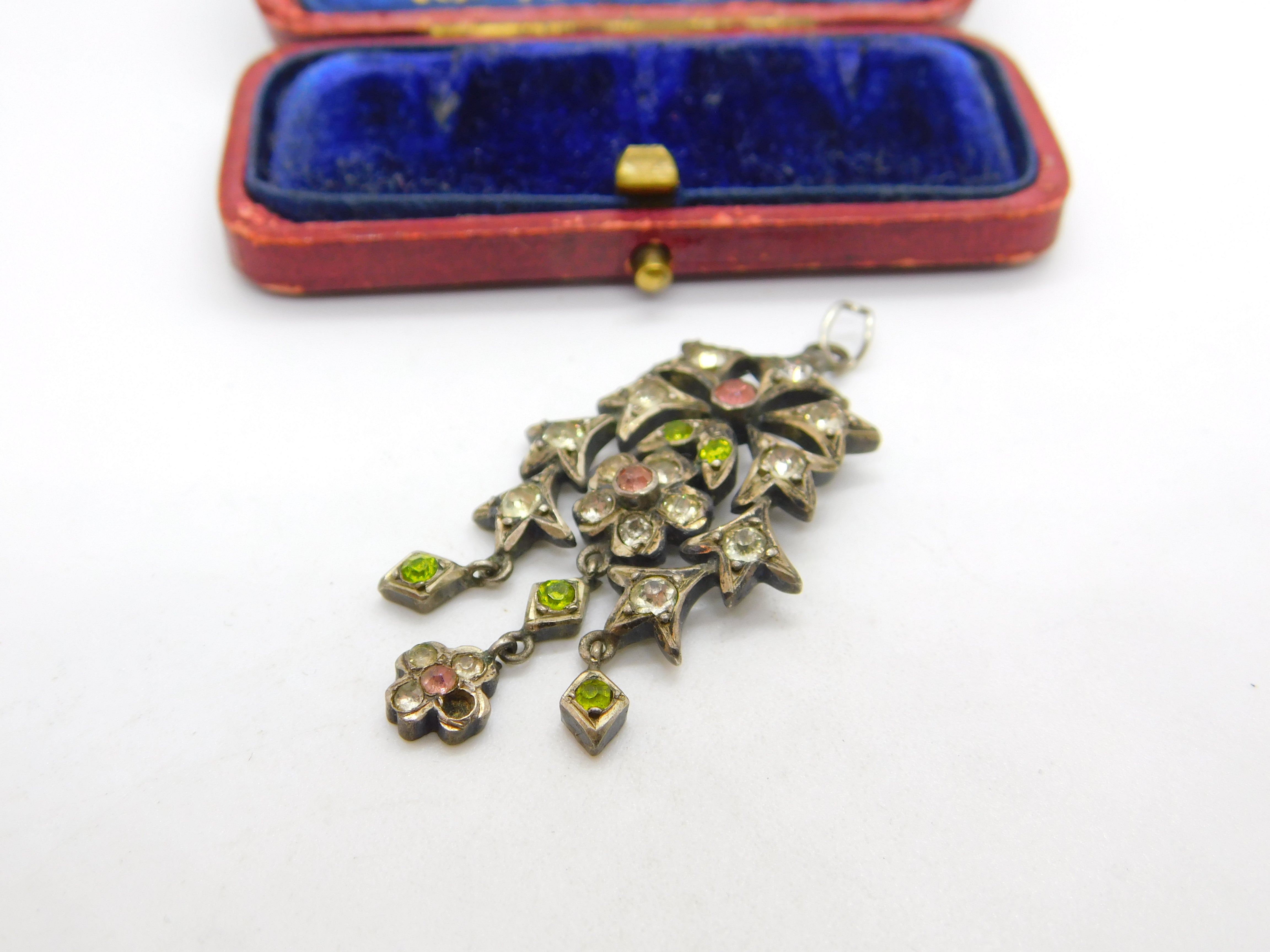 Victorian Austrian Sterling Silver & Colourful Paste Set Floral Drop Pendant