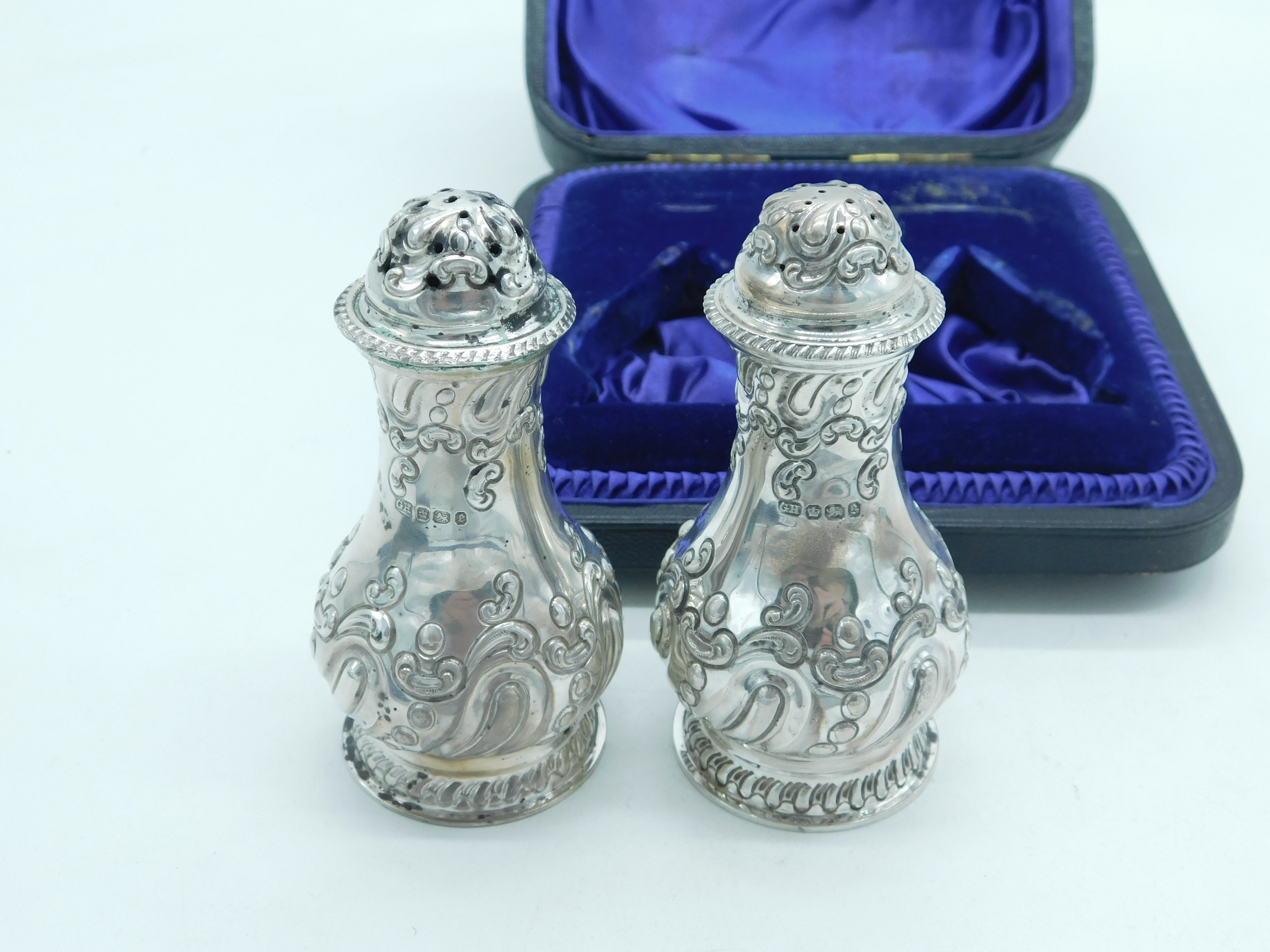 Victorian Boxed Set of Sterling Silver Pepper Shakers Antique 1897 Sheffield