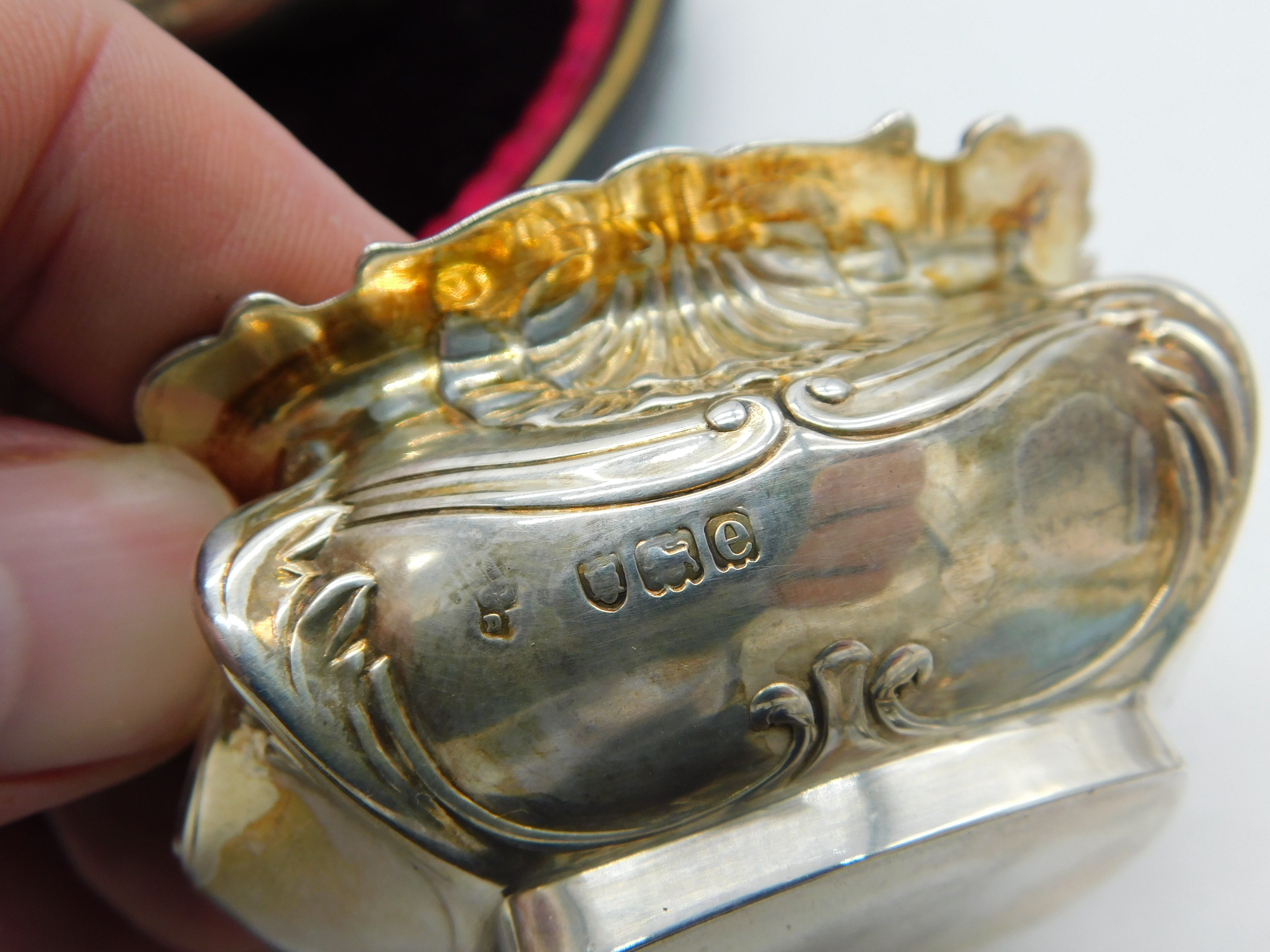 Victorian Boxed Set of Sterling Silver Salt Cellars Antique 1900 London