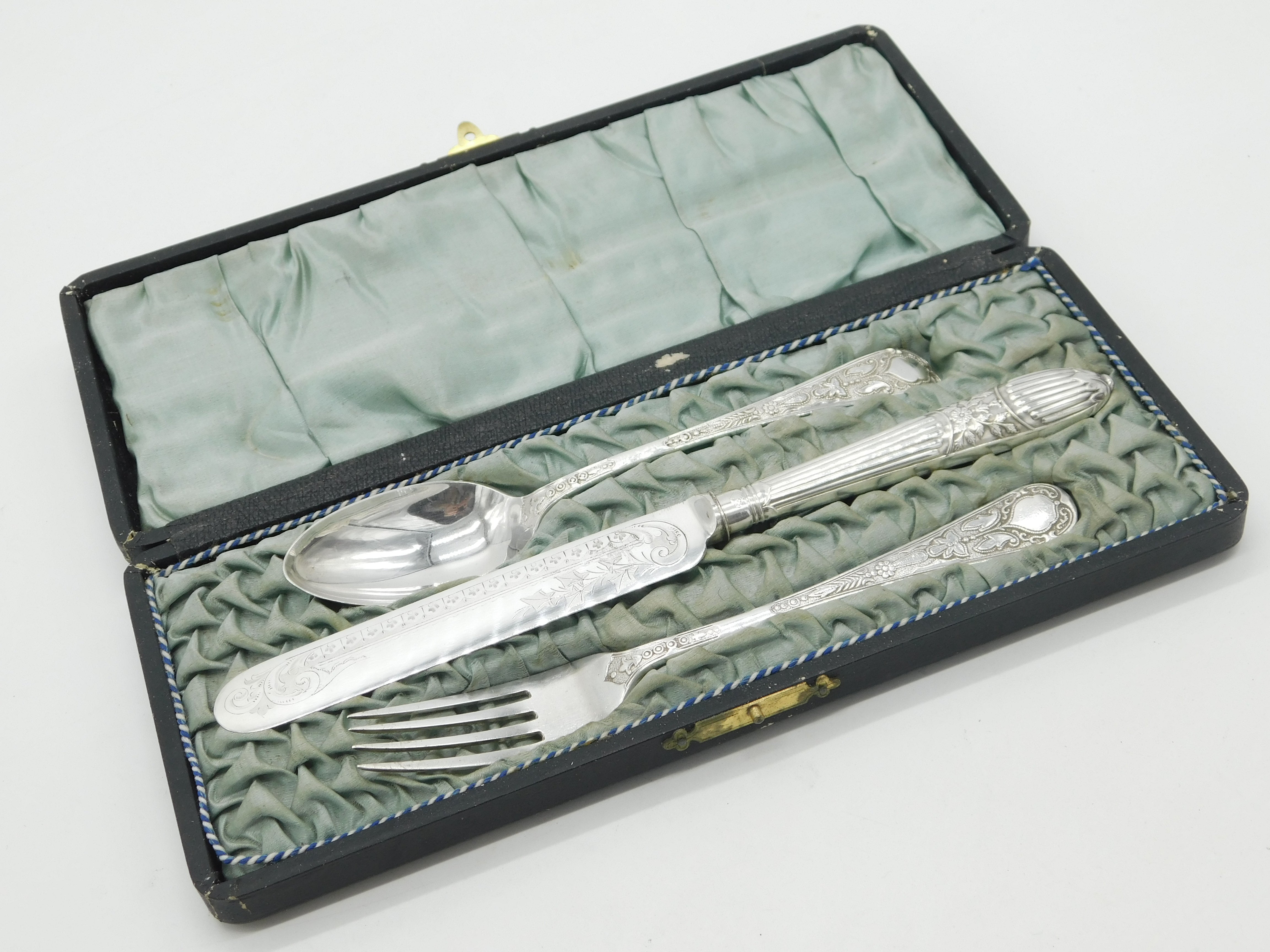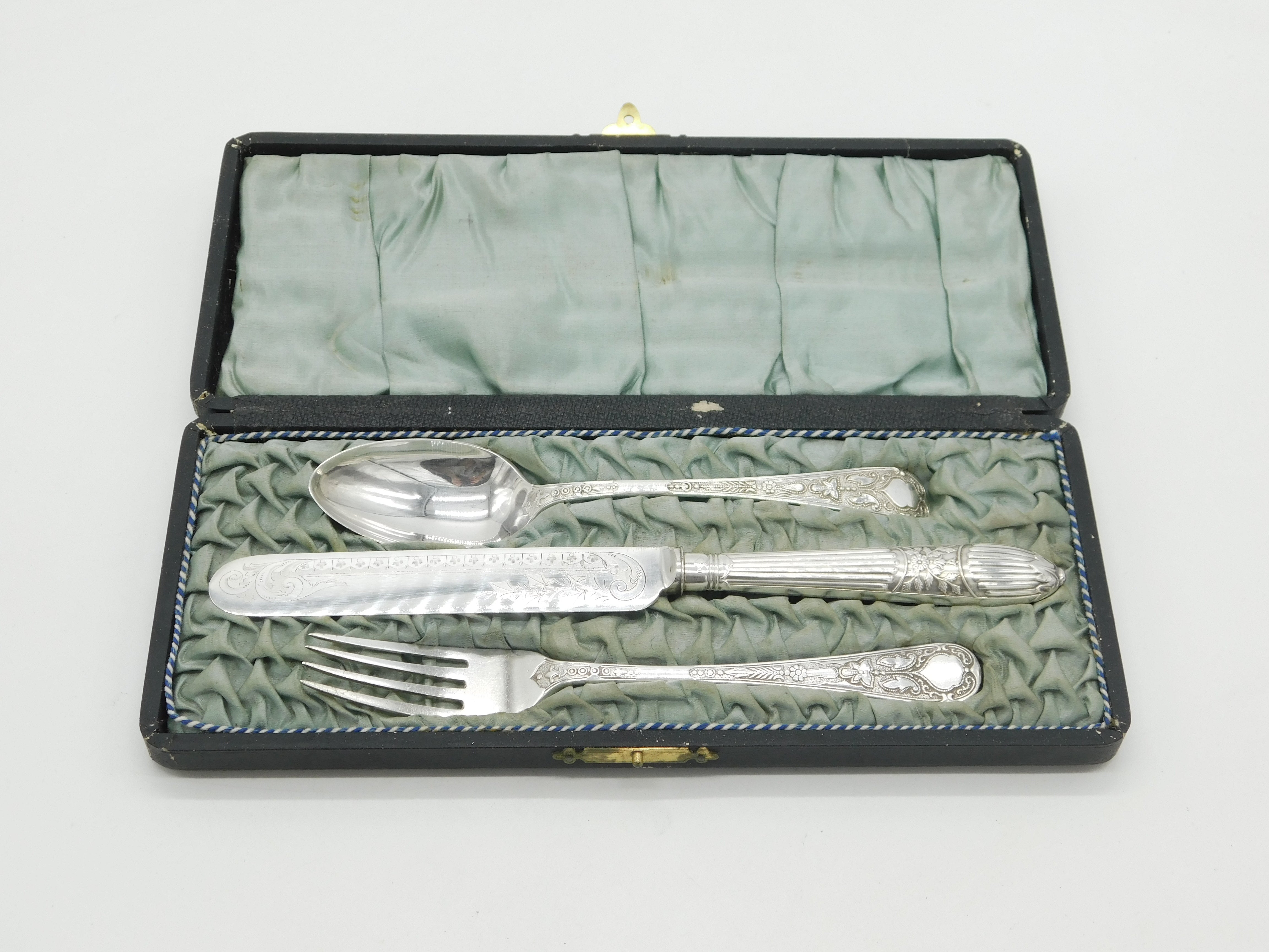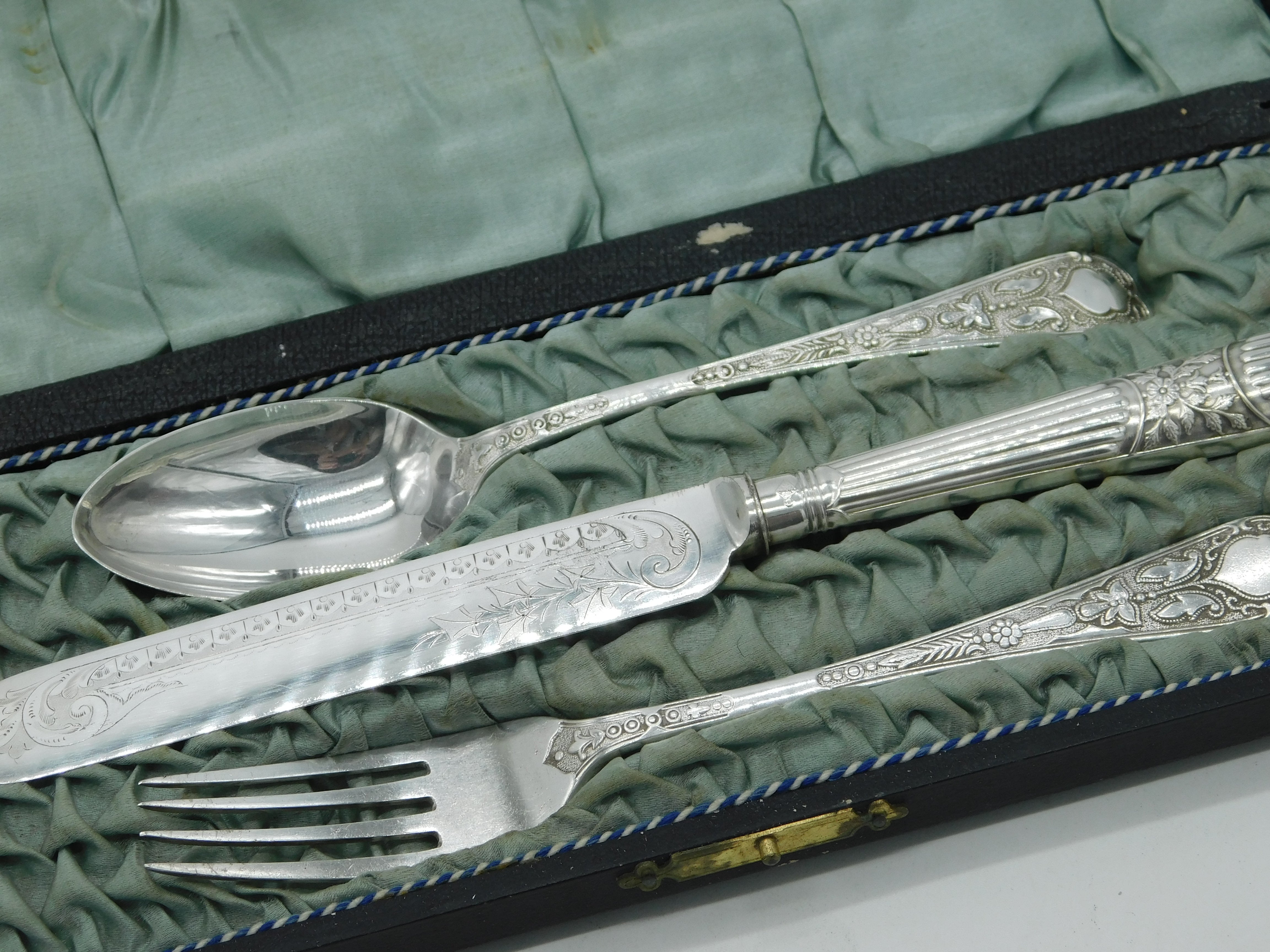 Victorian Boxed Silver Plated Floral Pattern Christening Cutlery Antique c1890