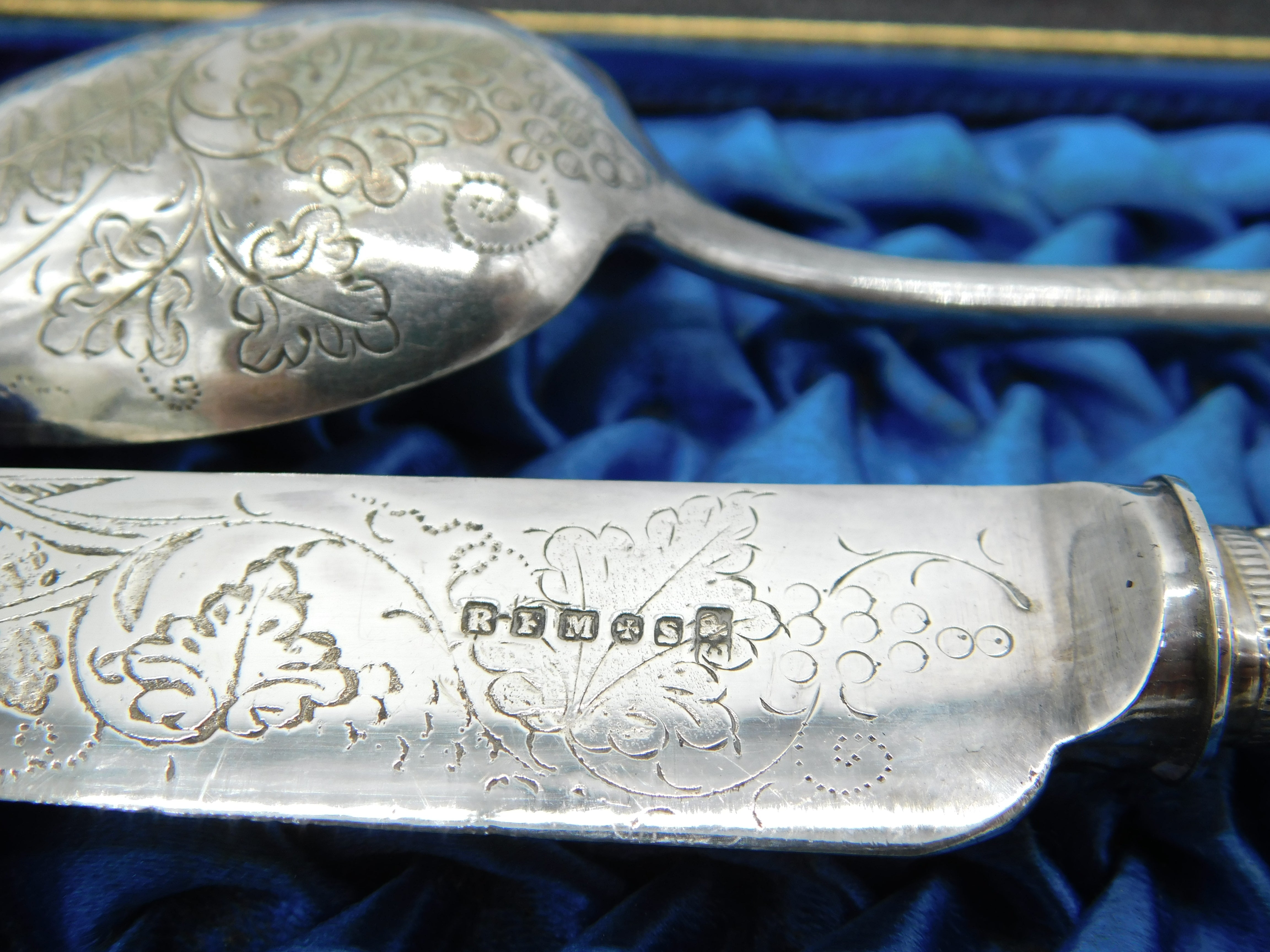 Details: A fantastic and wonderfully designed antique Victorian boxed silver plated christening cutlery set with charming floral decoration throughout and lovely mother of pearl handle hallmarked to each item c1880. This is a wonderful item that would make a perfect gift or addition to any collection.