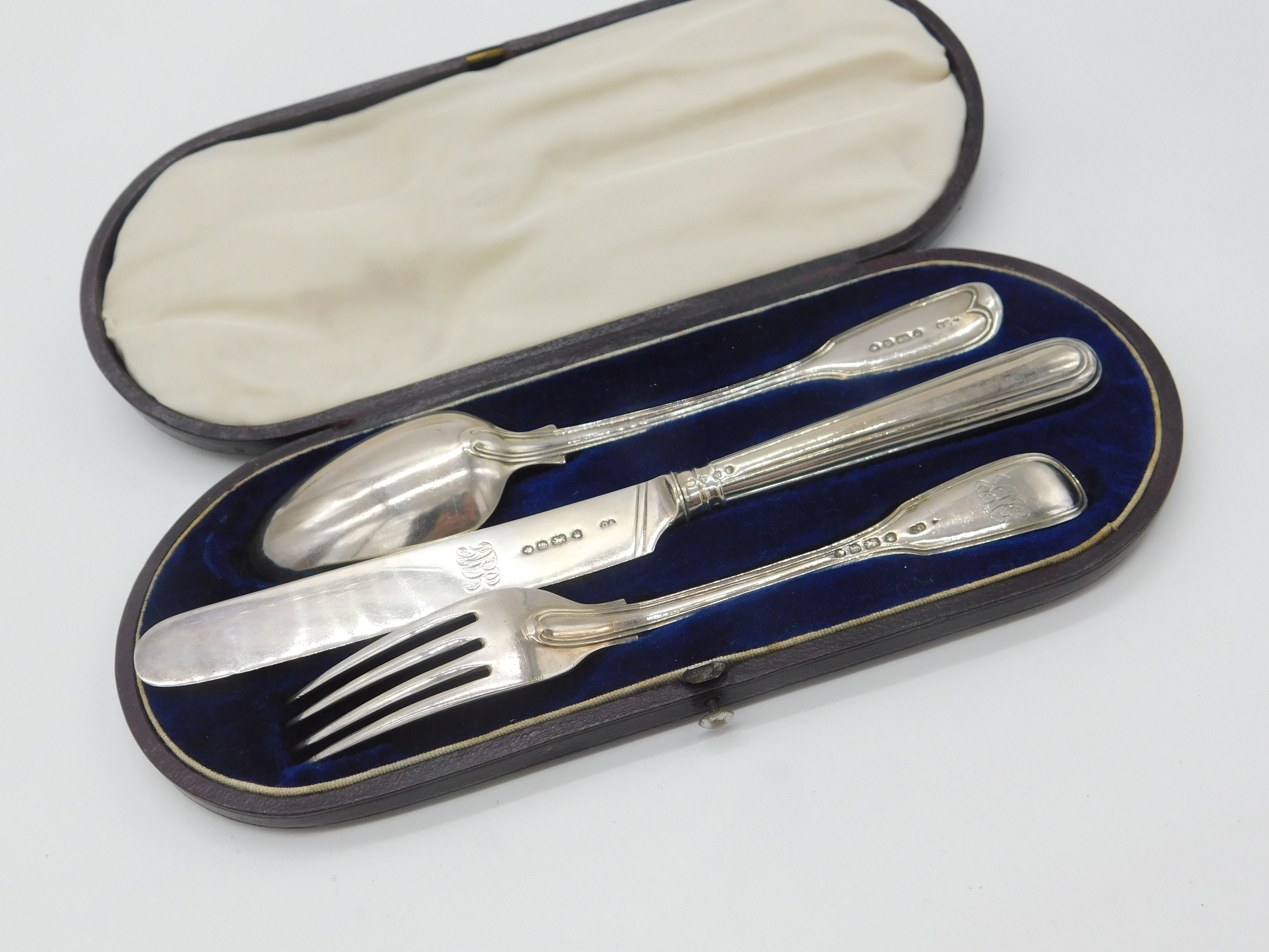 Victorian Boxed Sterling Silver Christening Cutlery Set Antique 1848 London