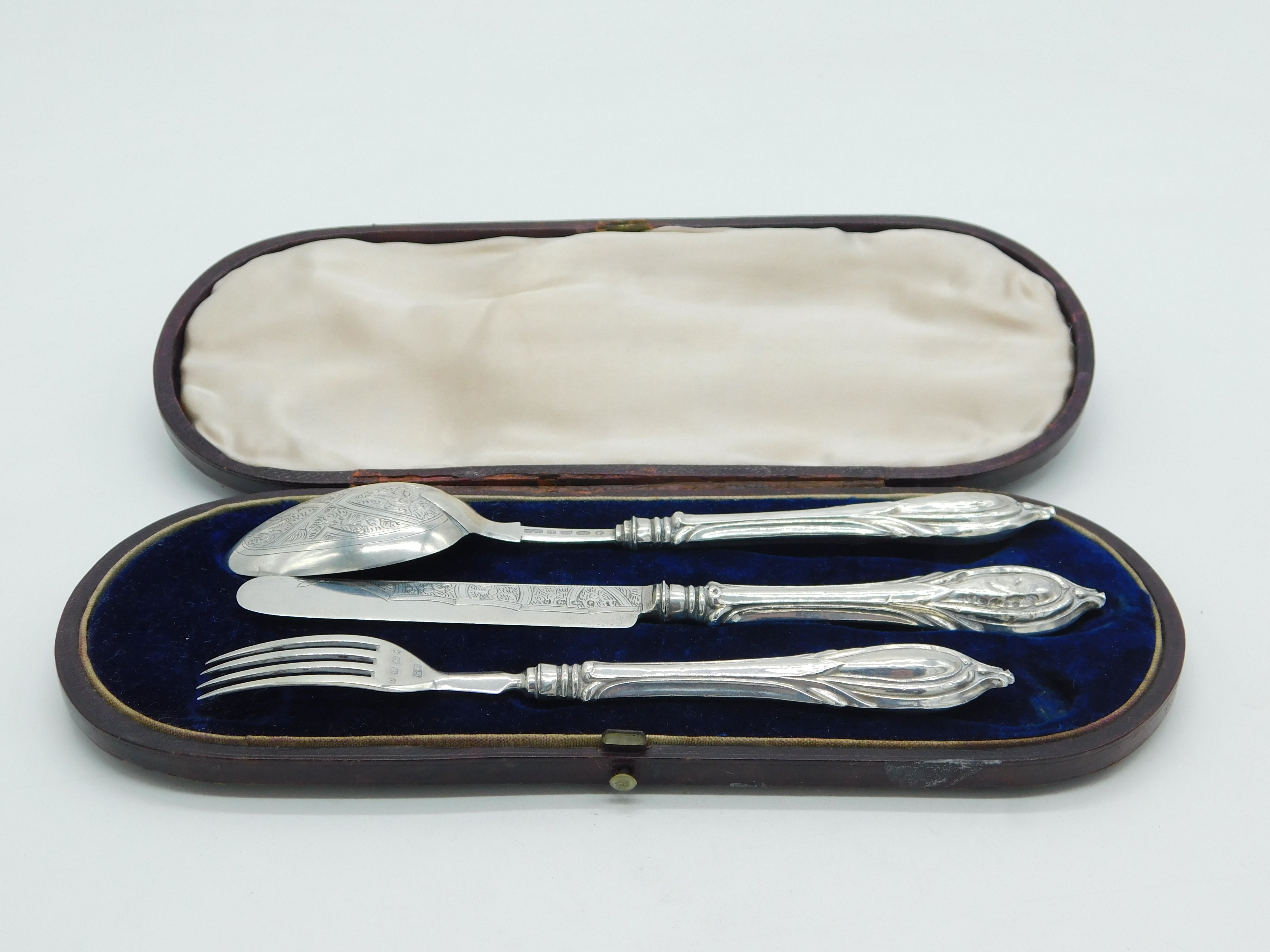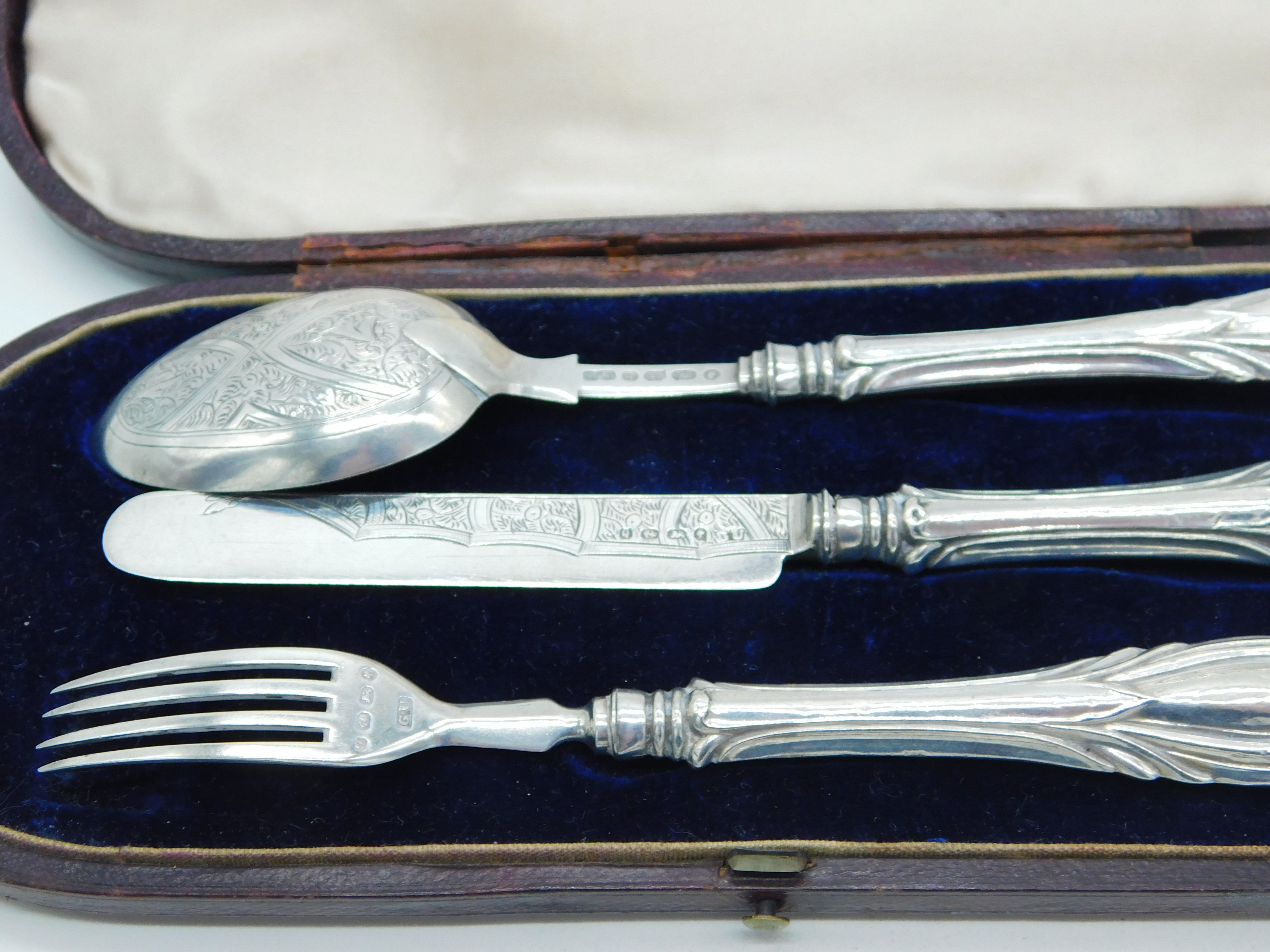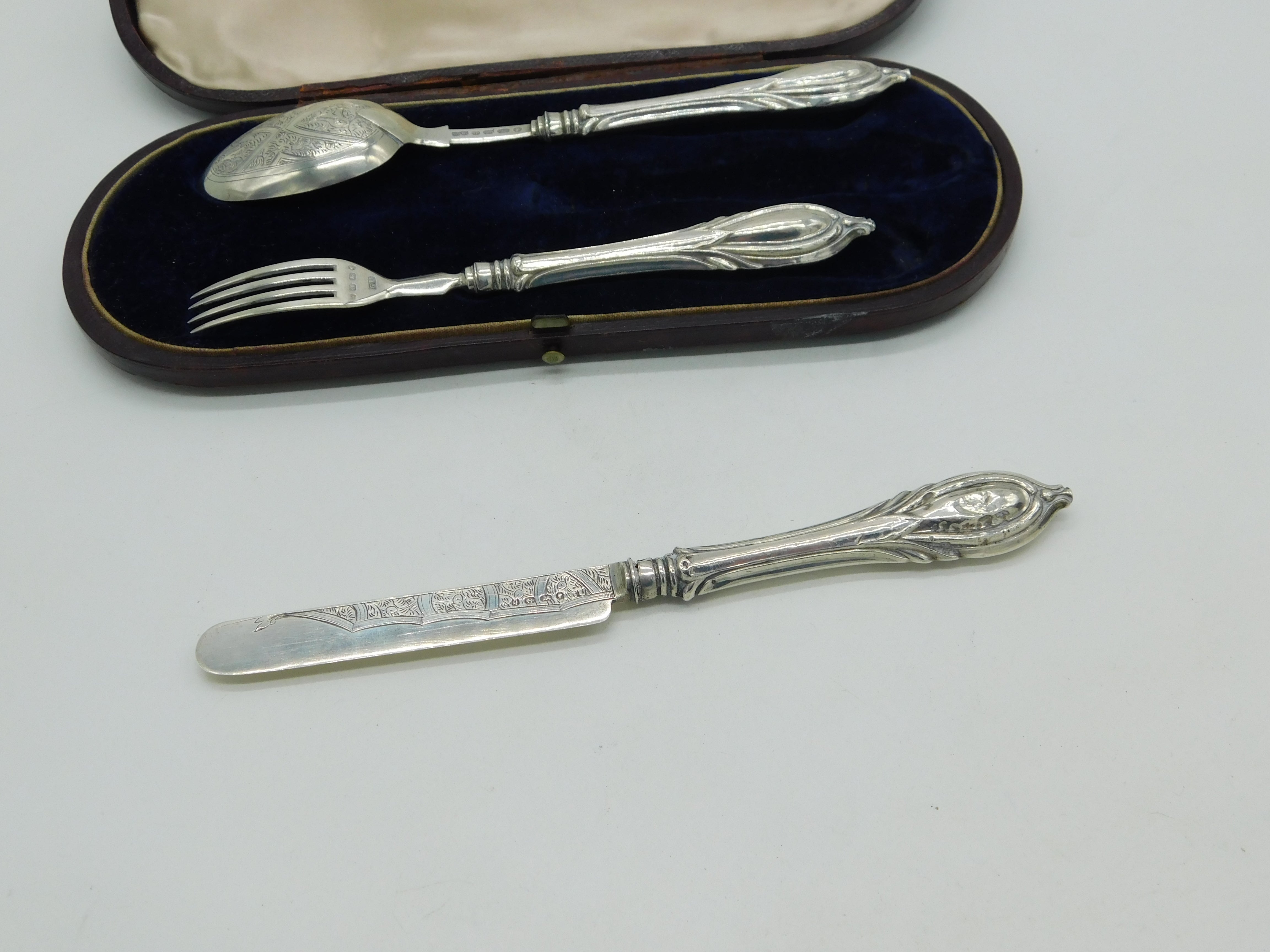 Victorian Boxed Sterling Silver Christening Cutlery Set Antique 1891 Birmingham