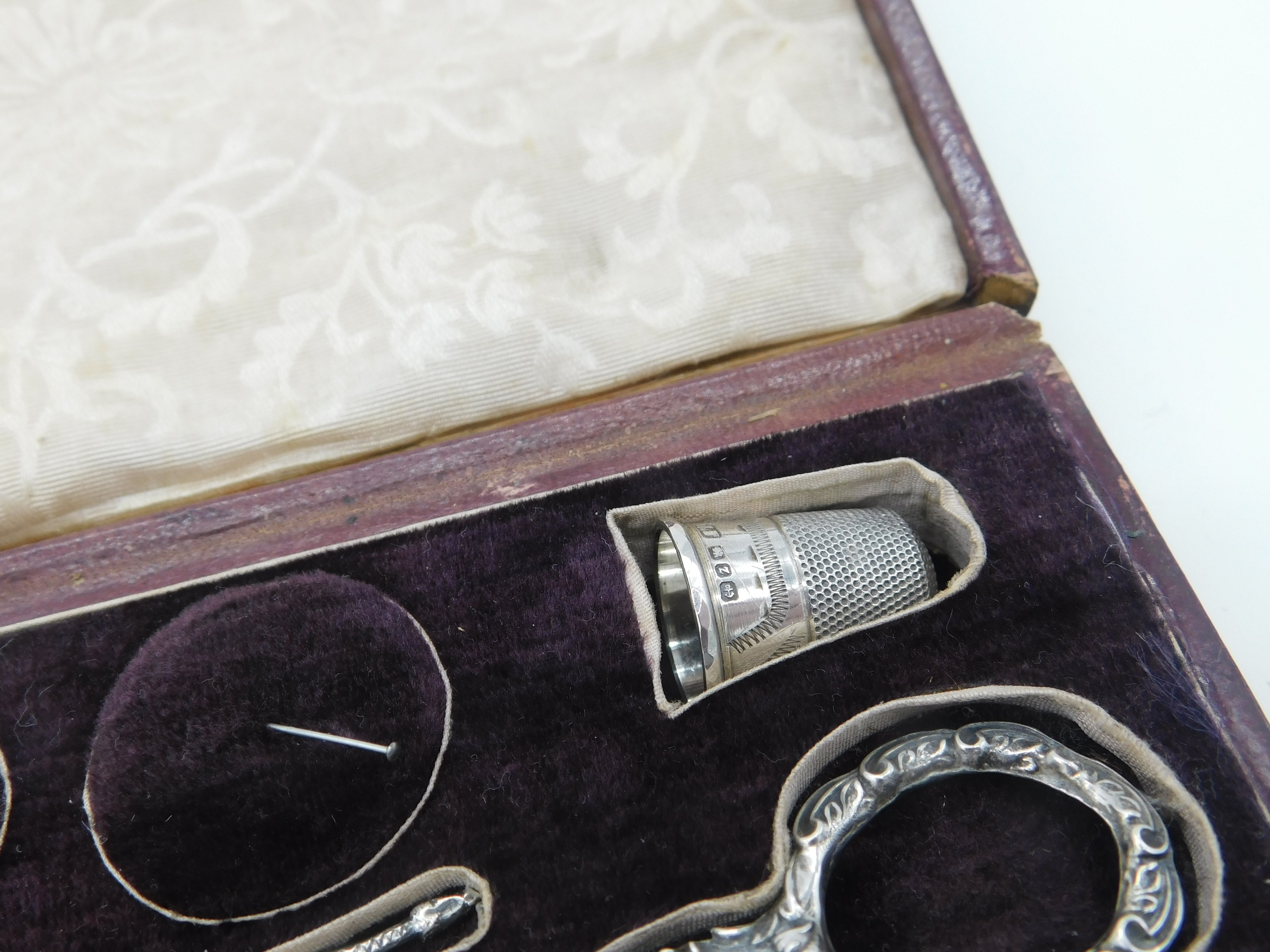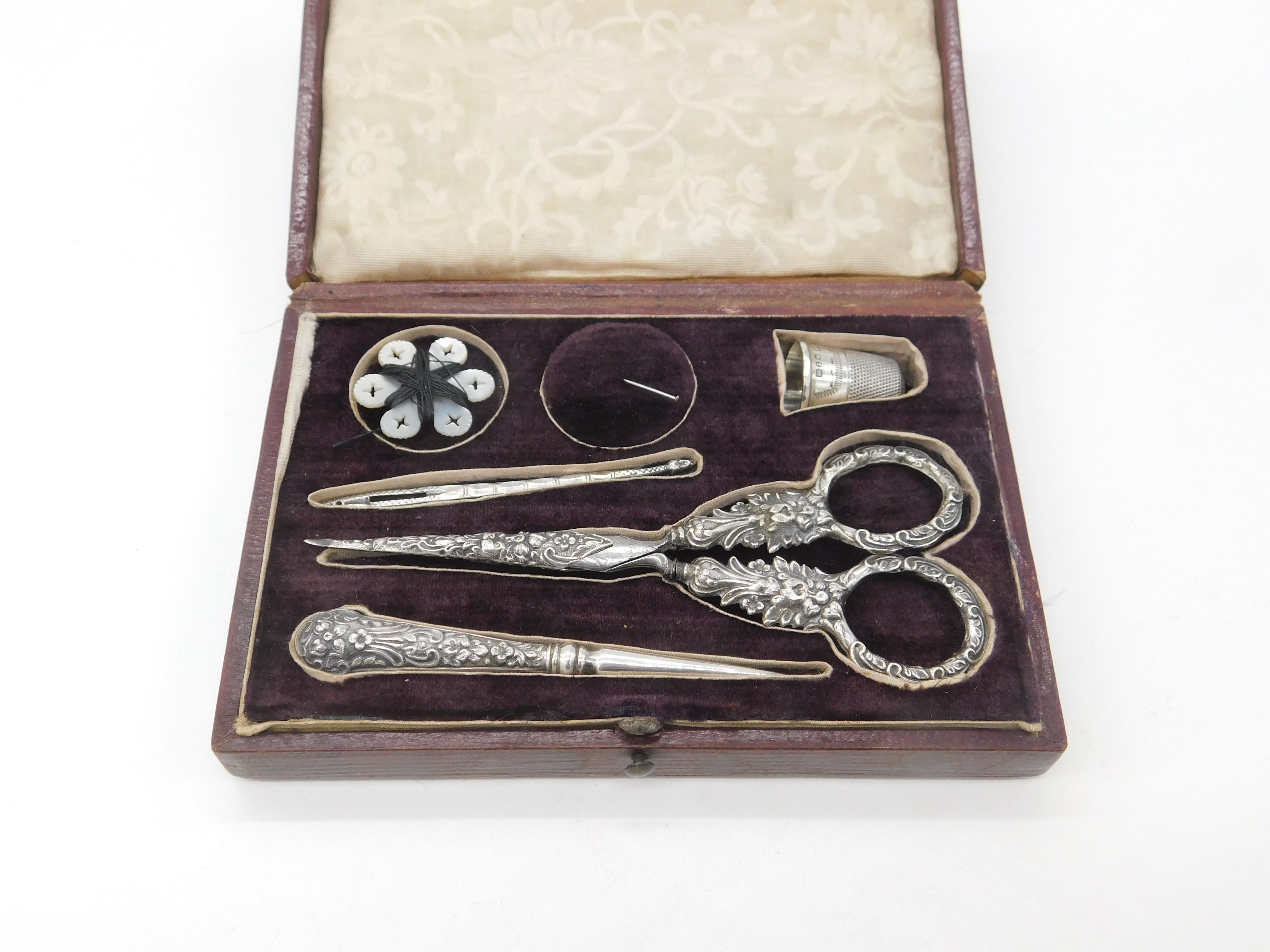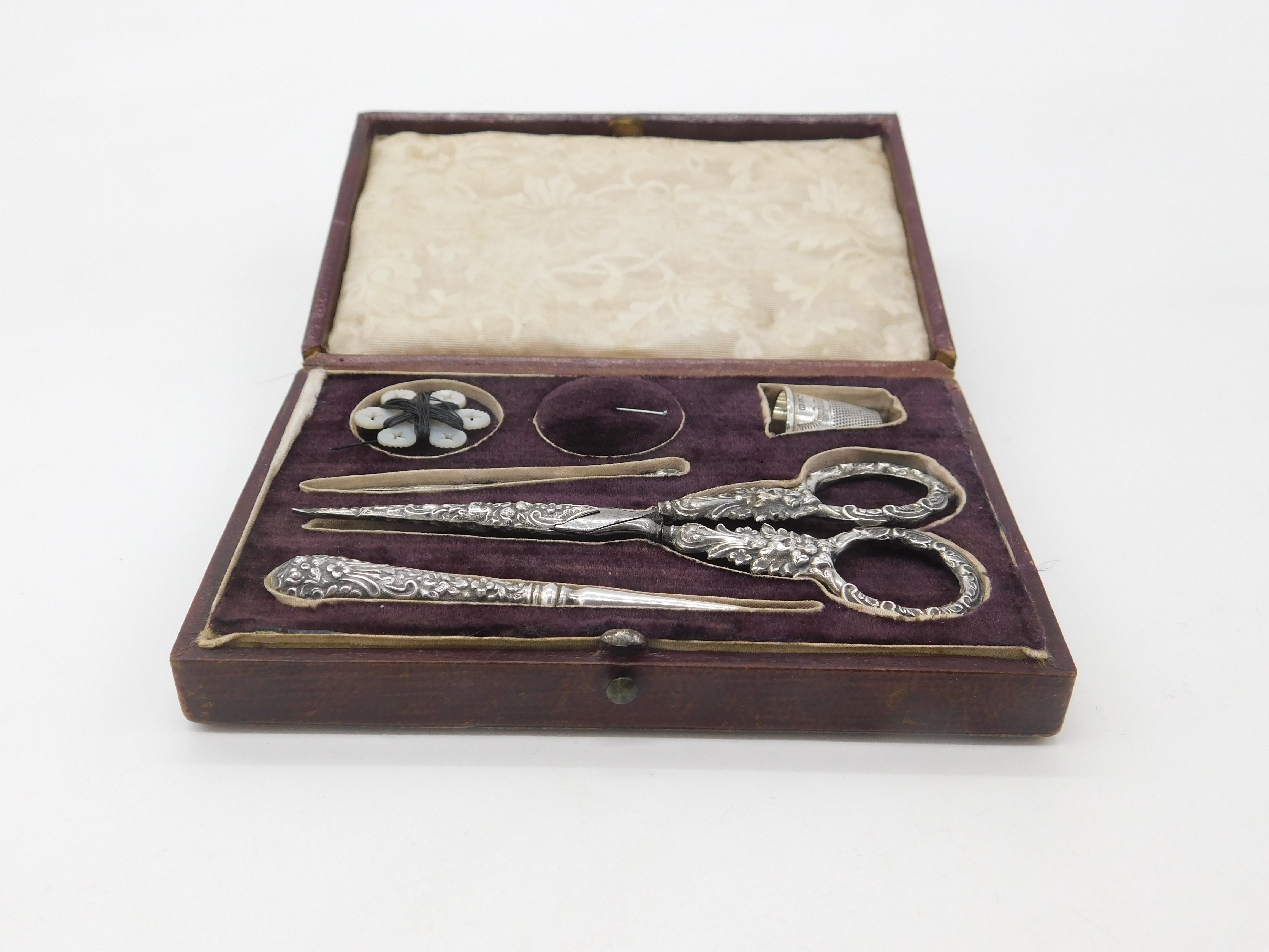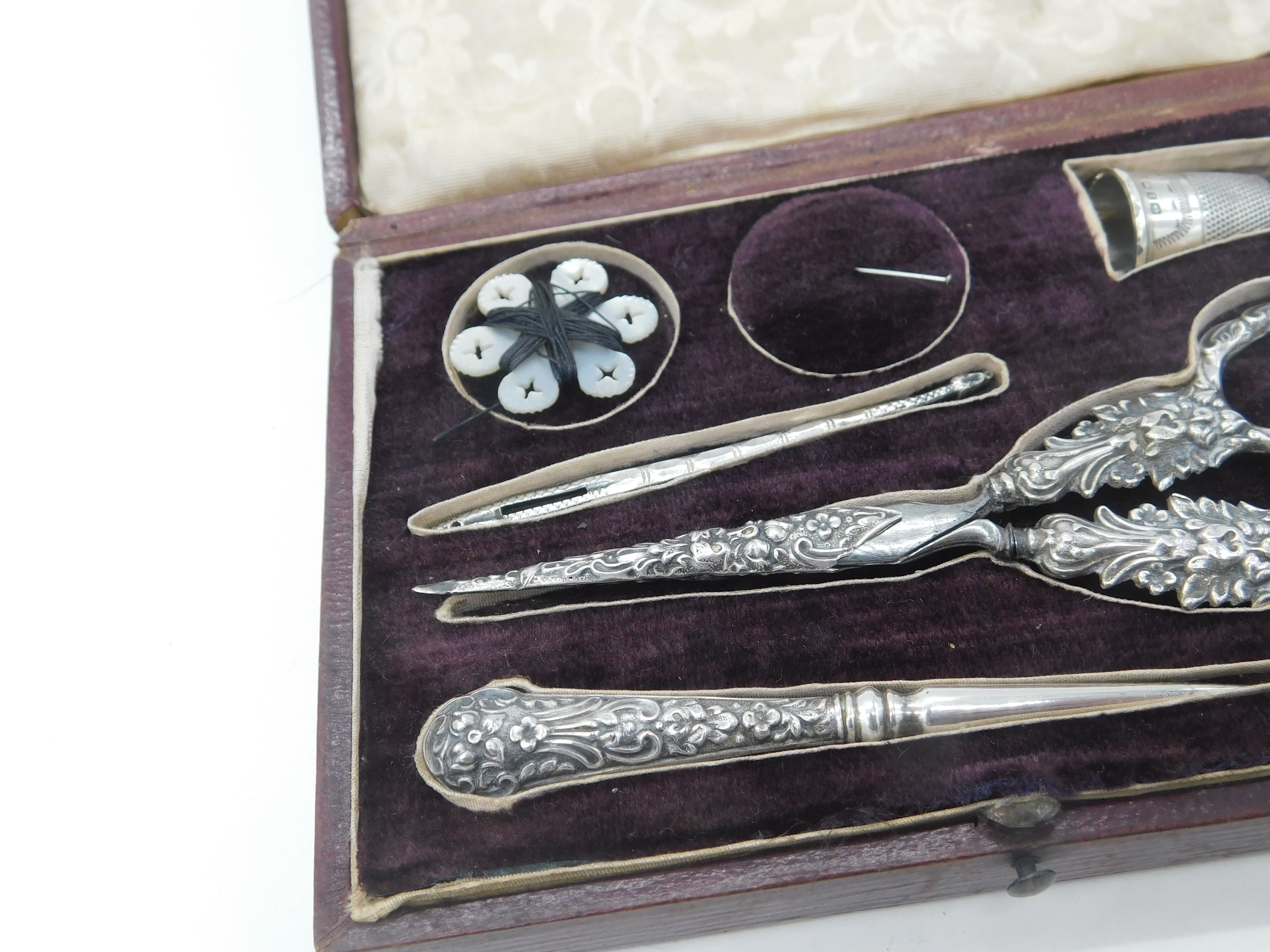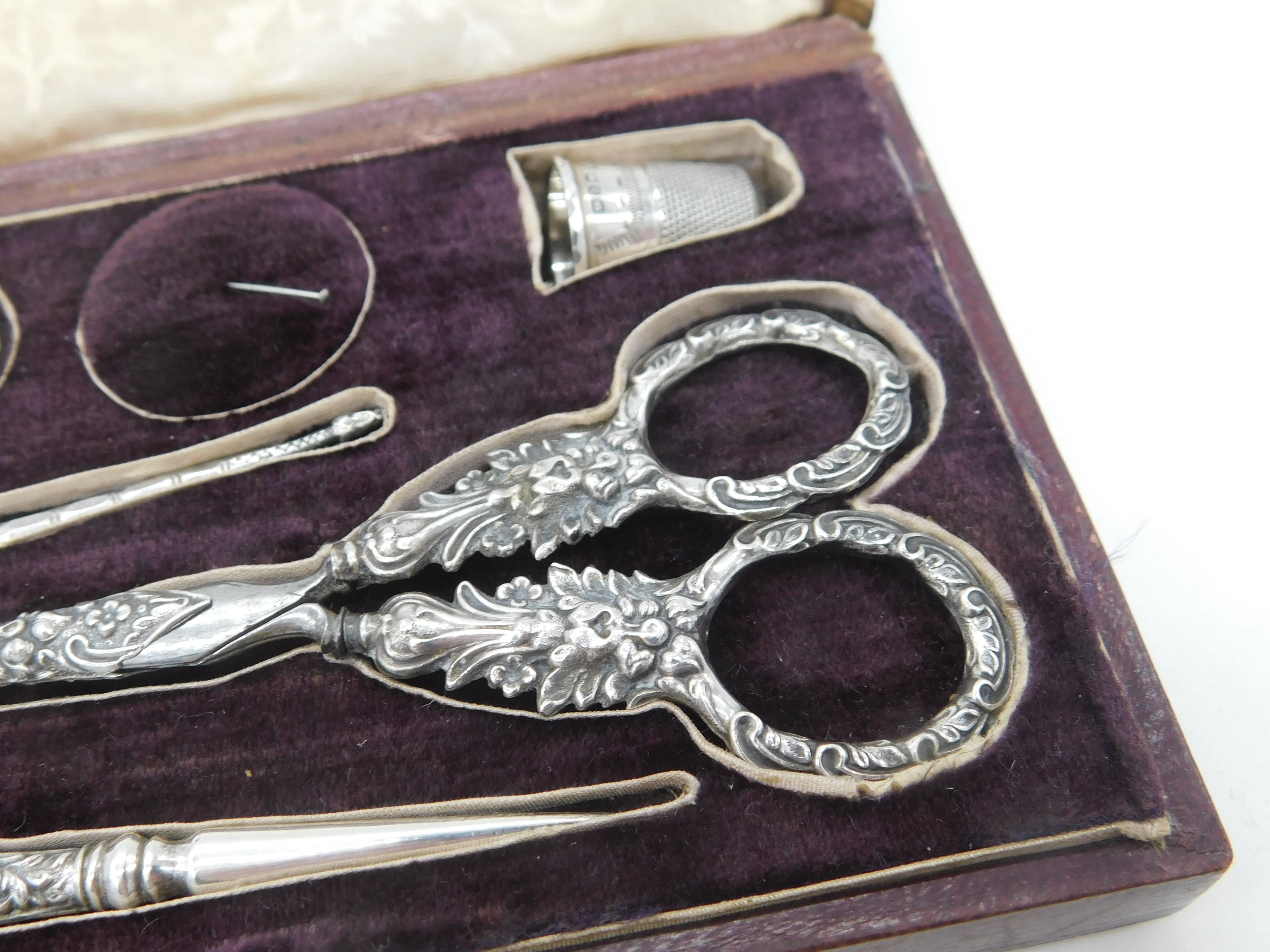 Victorian Boxed Sterling Silver Etui Sewing Set with Original Tools c1890