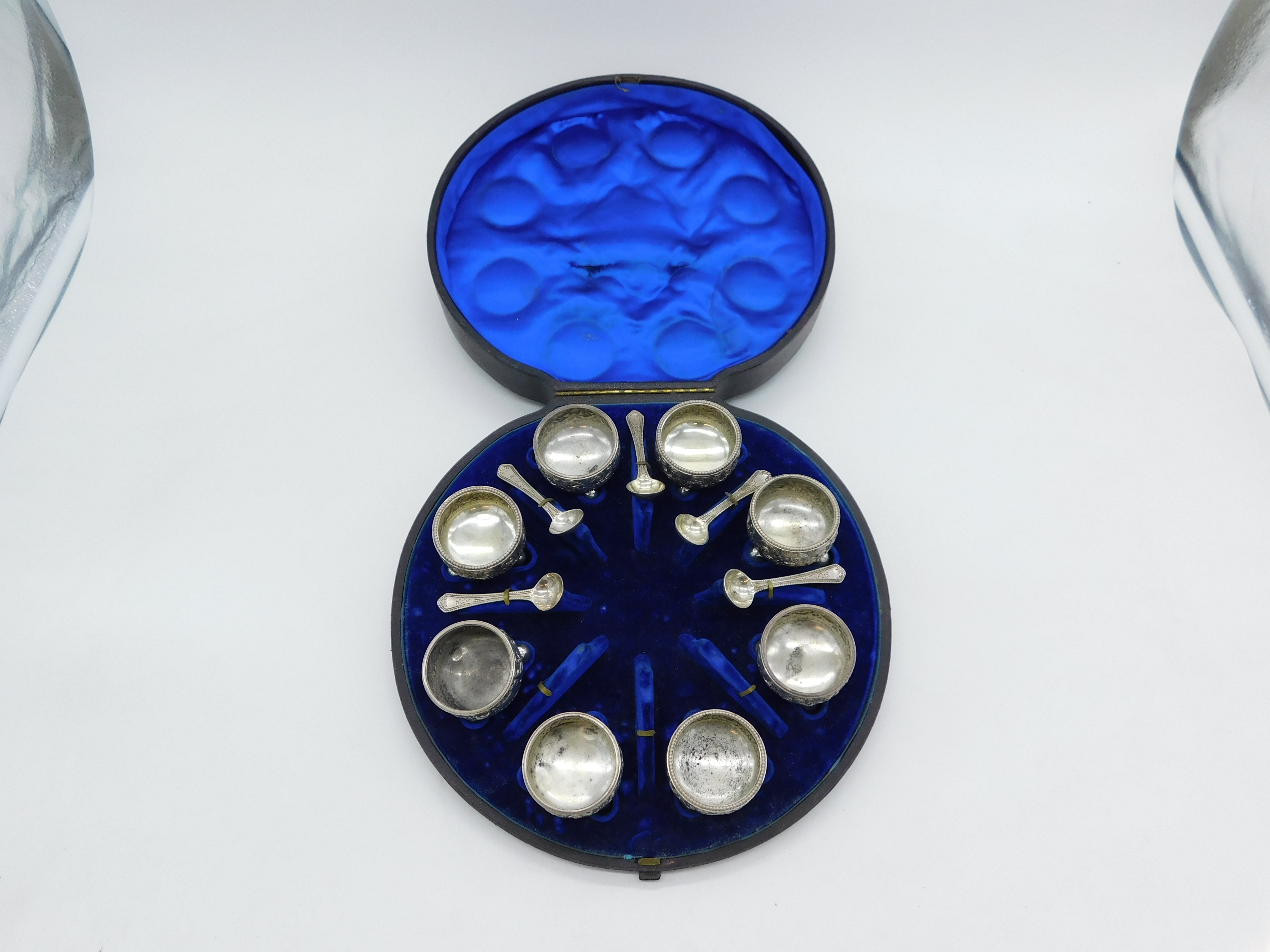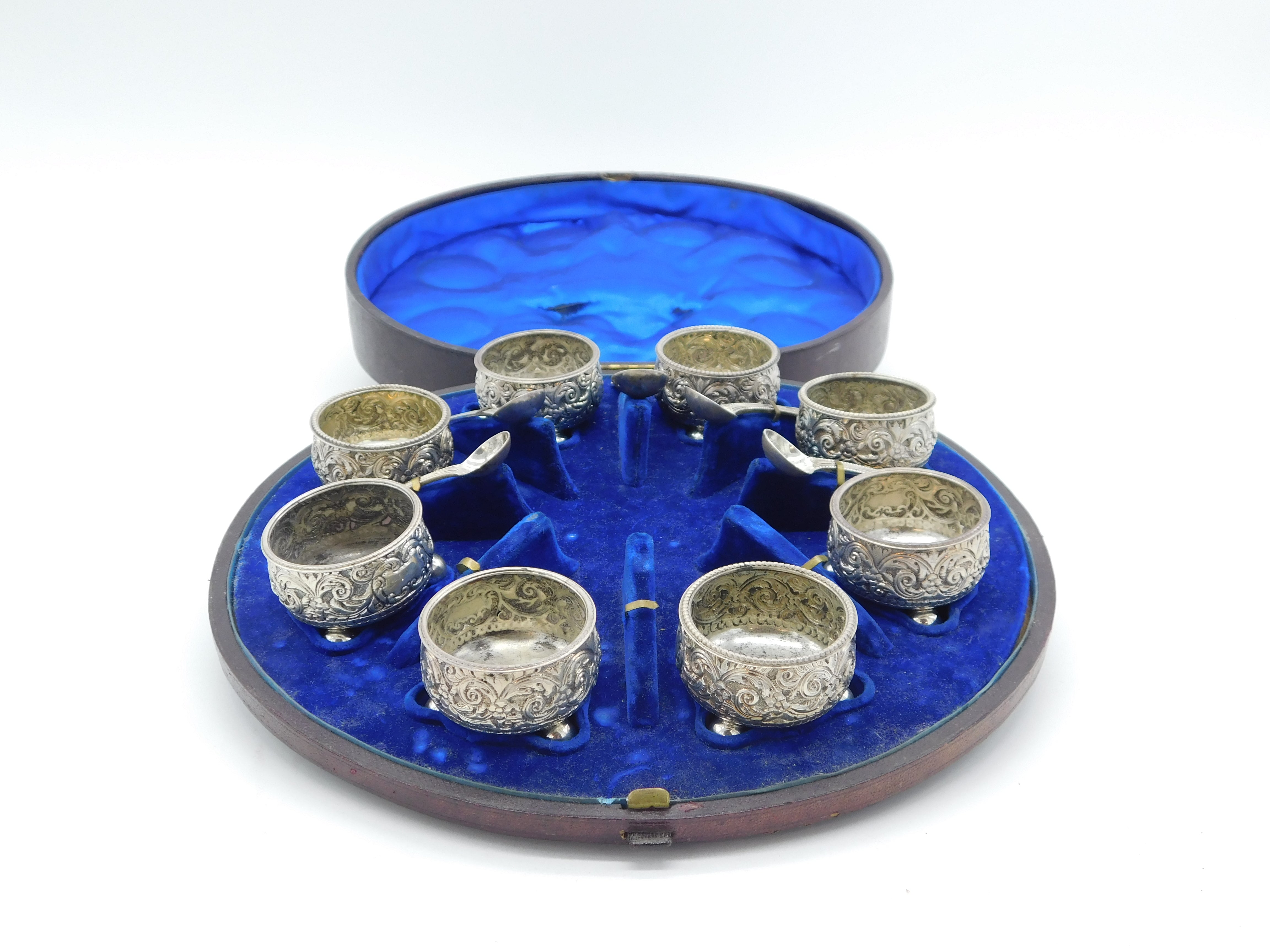 Victorian Boxes Set of Eight Sterling Silver Floral Salt Cellars Antique 1881 London