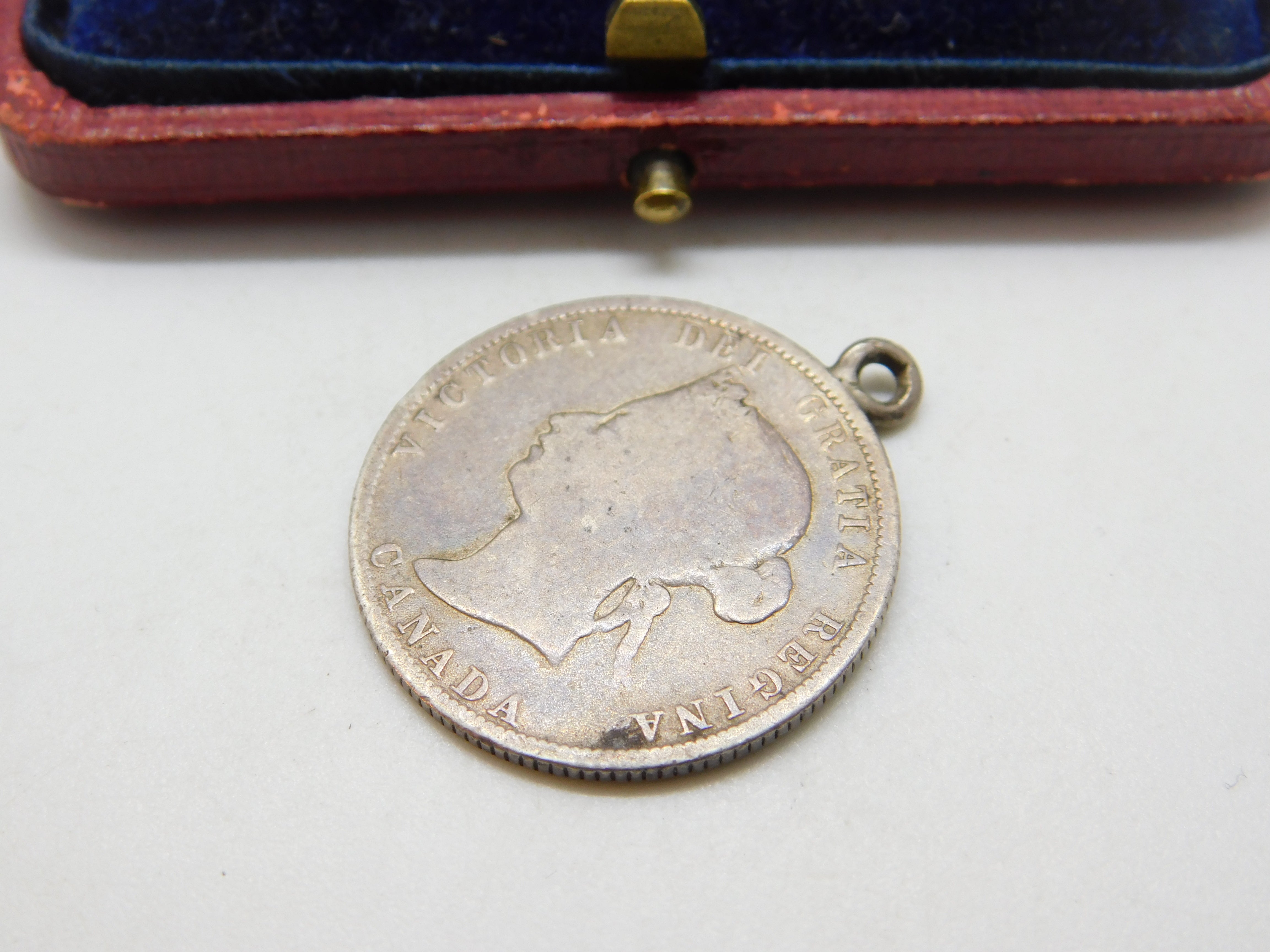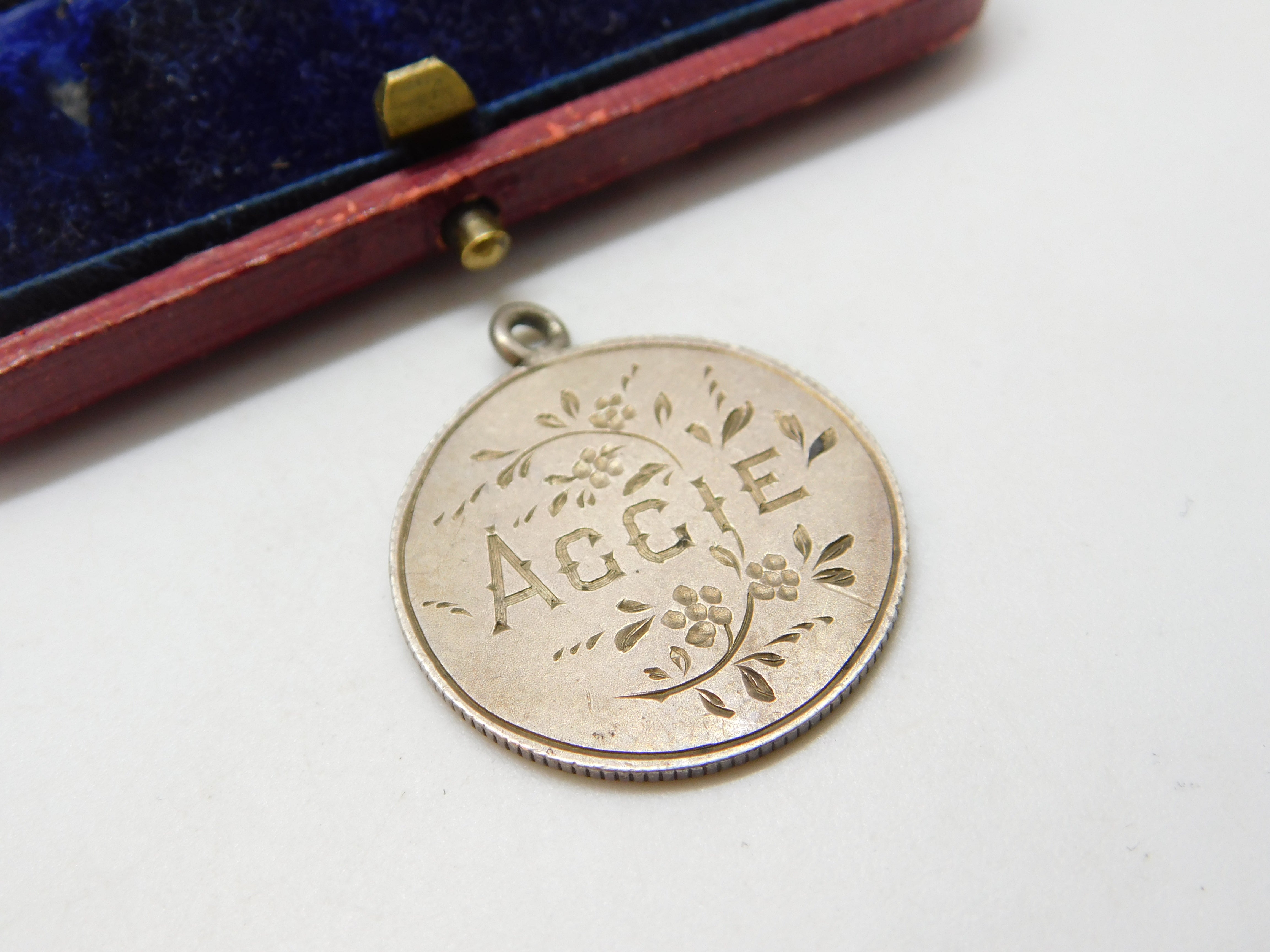 Victorian Canadian Sterling Silver 'Aggie' Love Token Shilling Pendant Antique