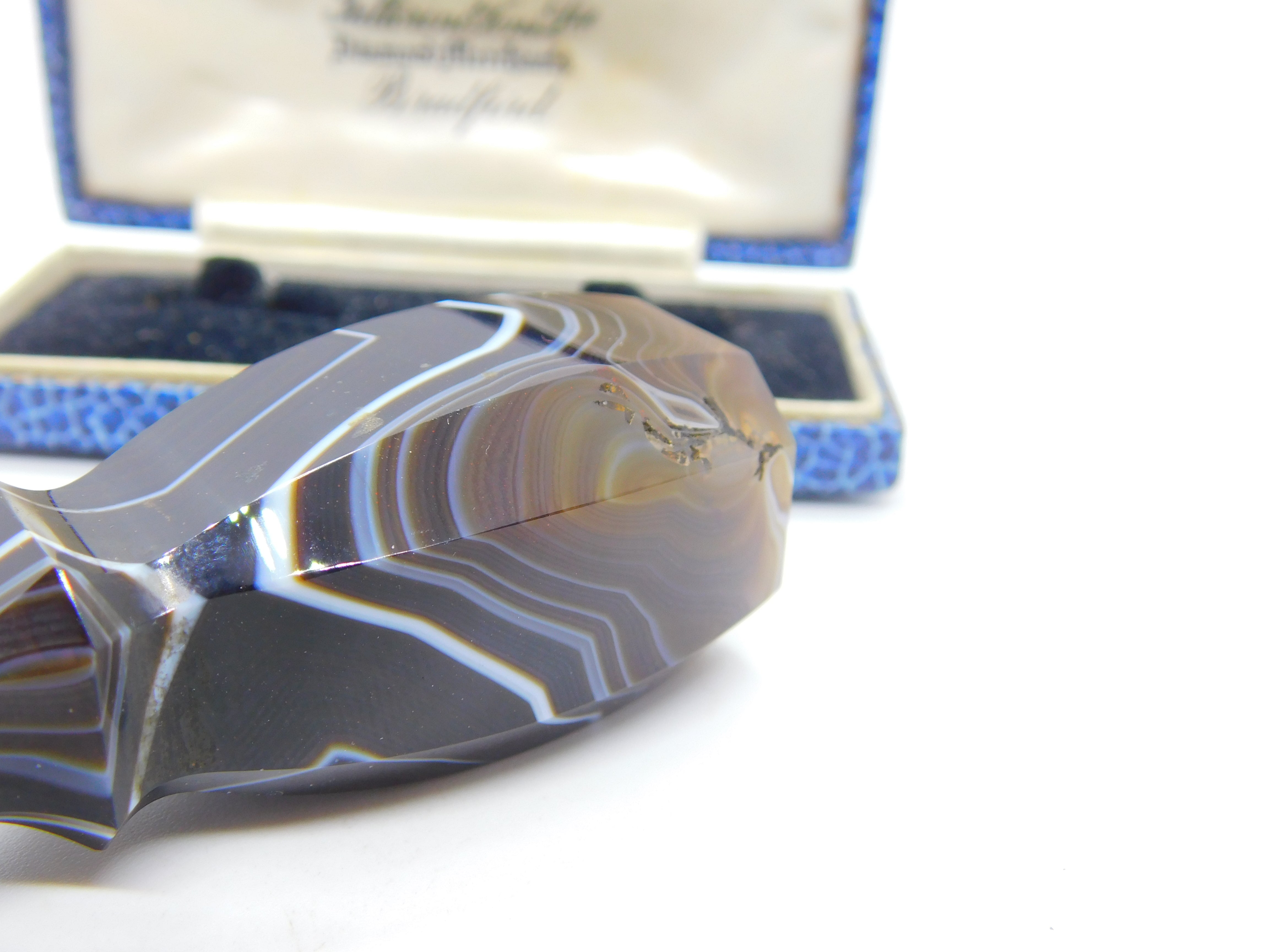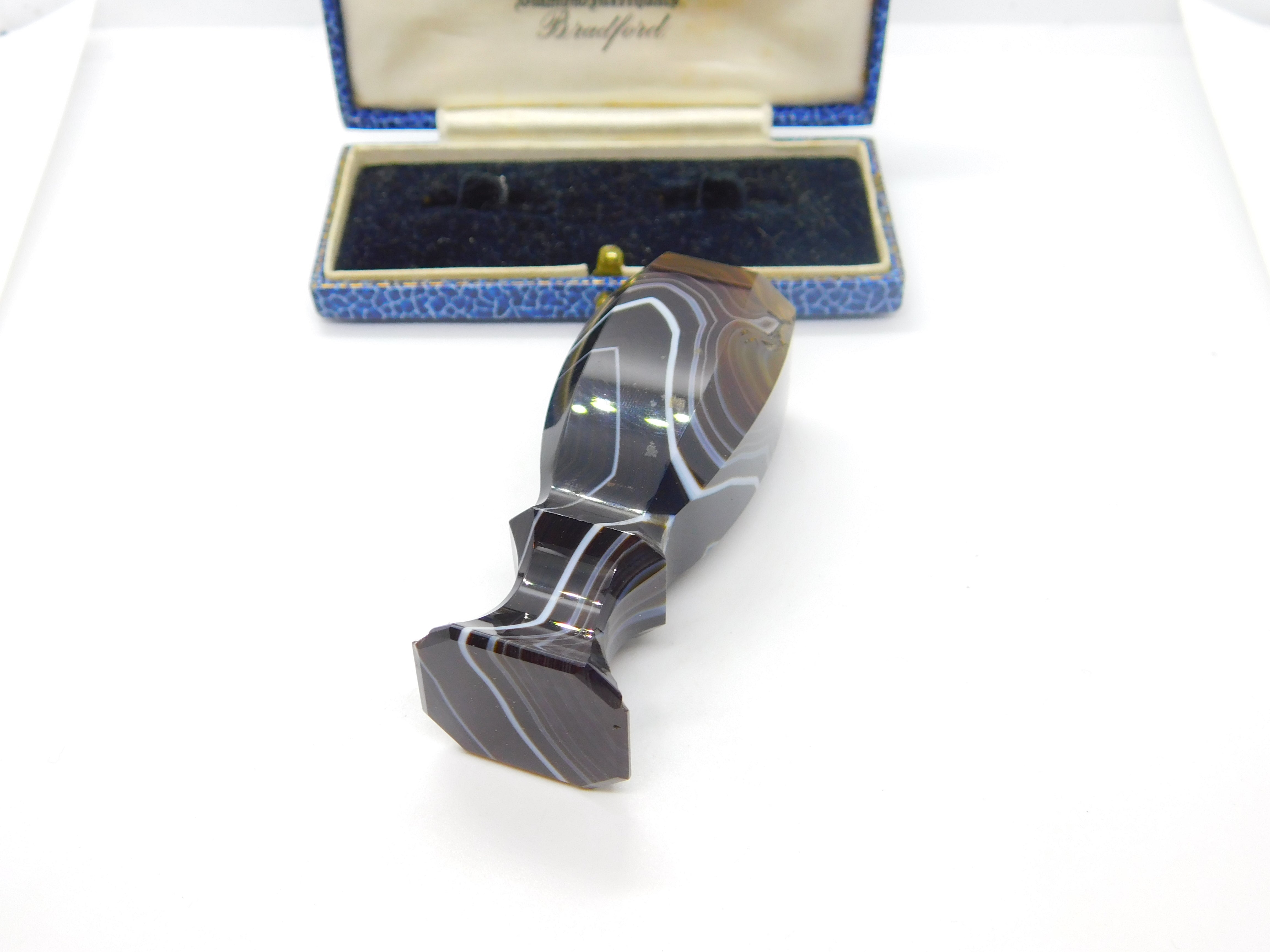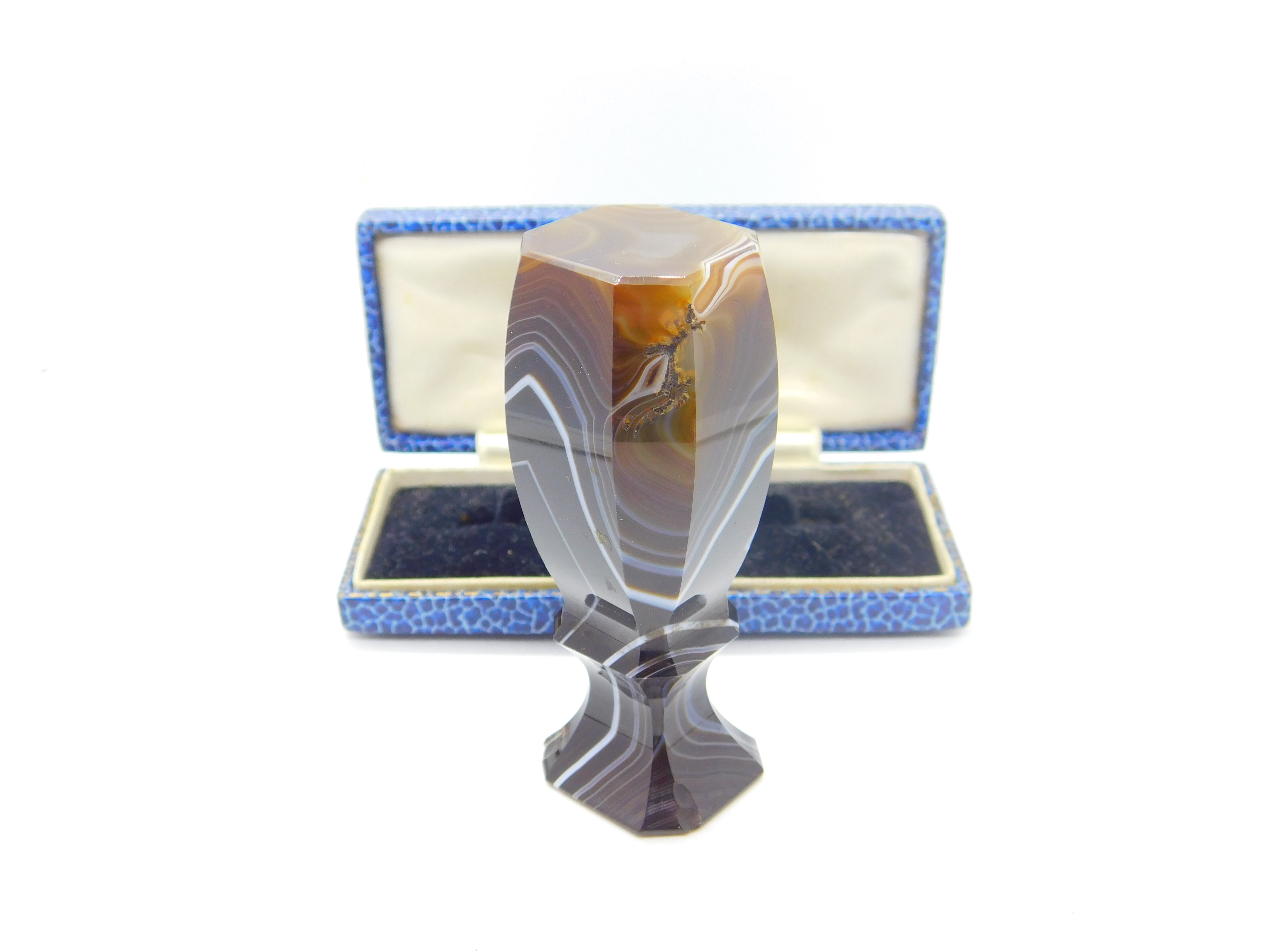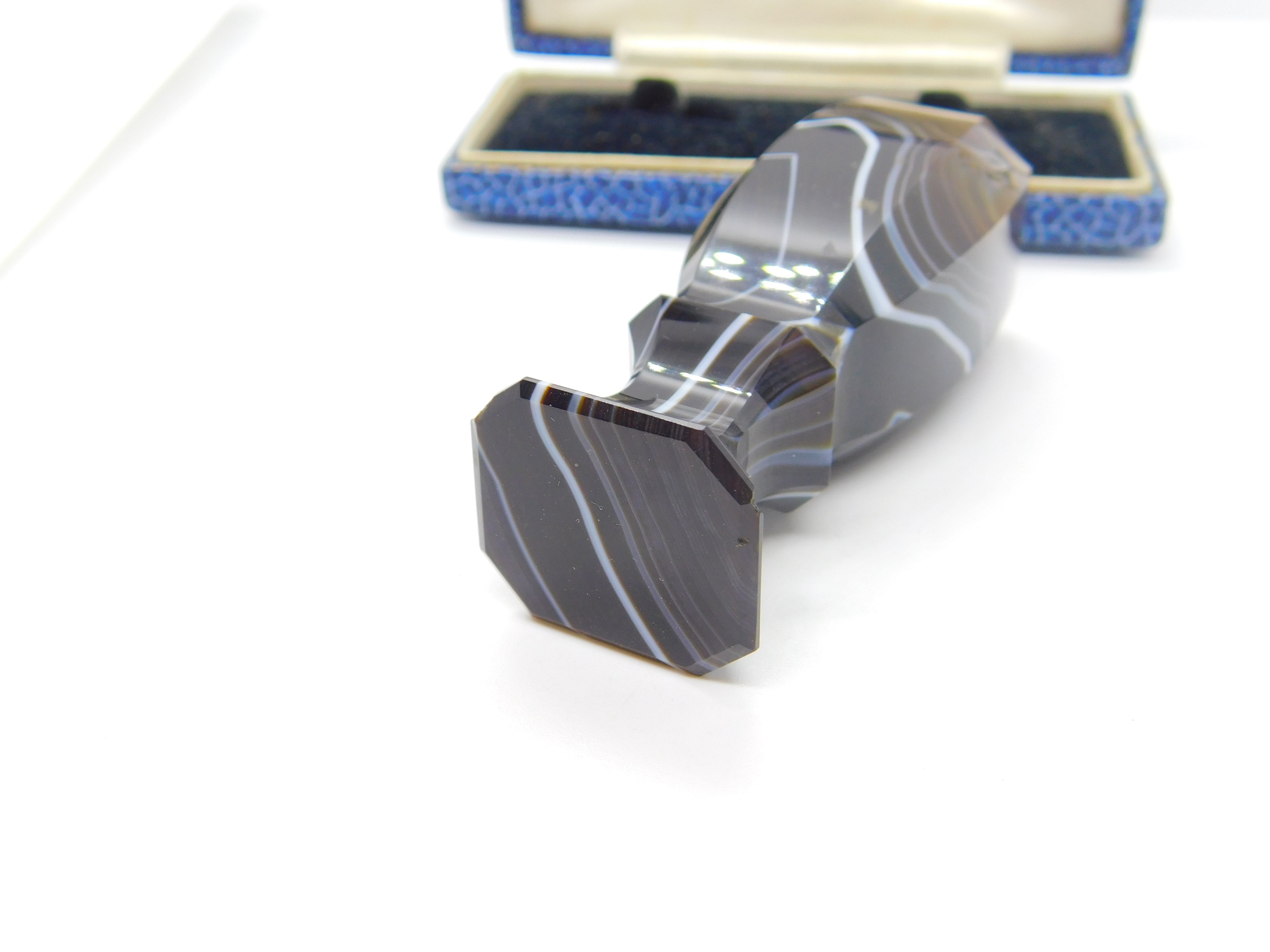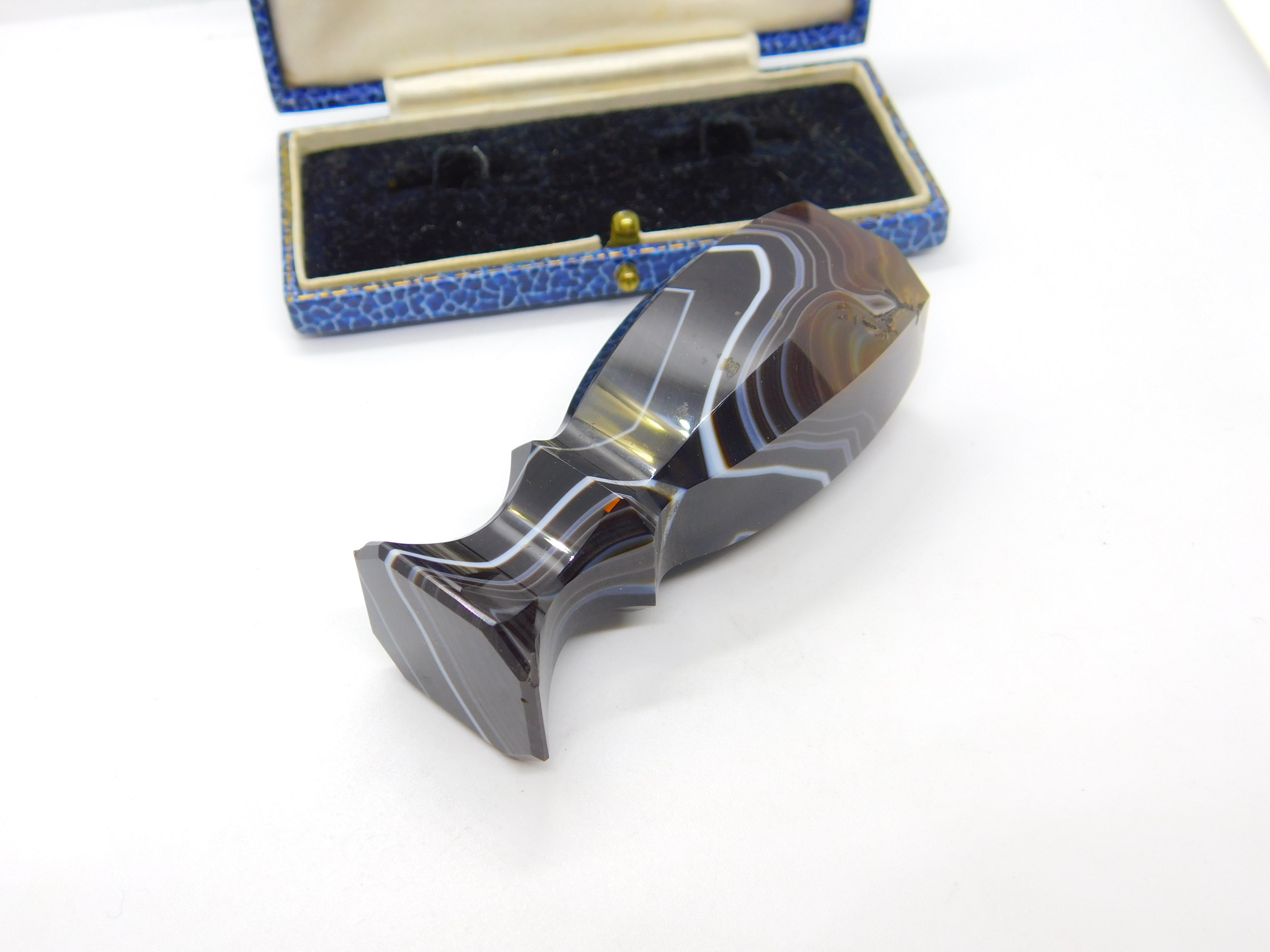 Victorian Carved Banded Agate Uncut Desk Seal Stamp Antique c1880