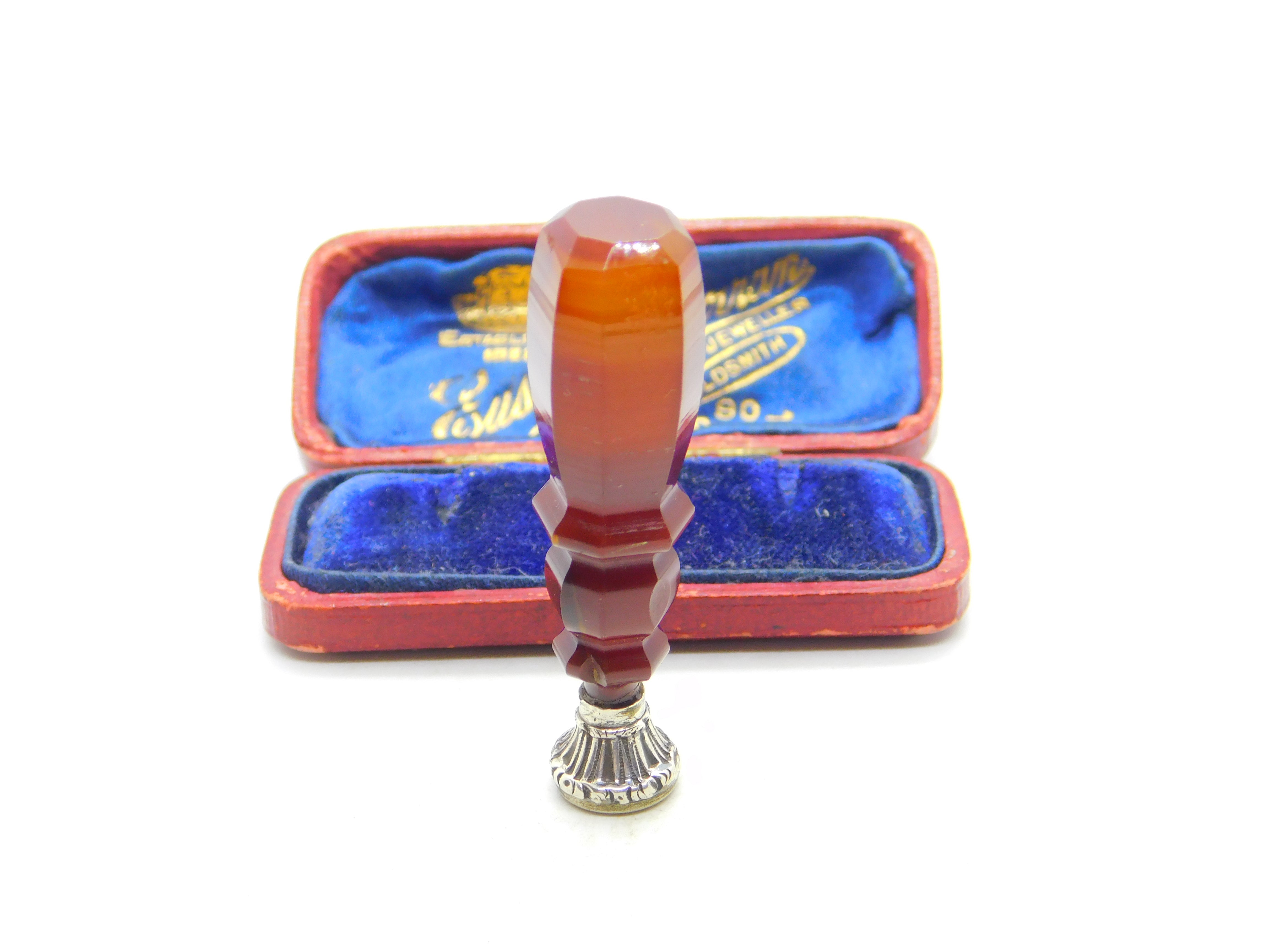 Details: A fantastic and wonderfully designed antique Victorian sterling silver set carnelian carved swallow bird desk seal with stunning carved red banded agate handle c1880. This is a wonderful item that would make a perfect gift or addition to any collection. The BOX pictured is for PRESENTATION ONLY and is NOT included in the listings but used to frame the pictures unless specifically stated otherwise.