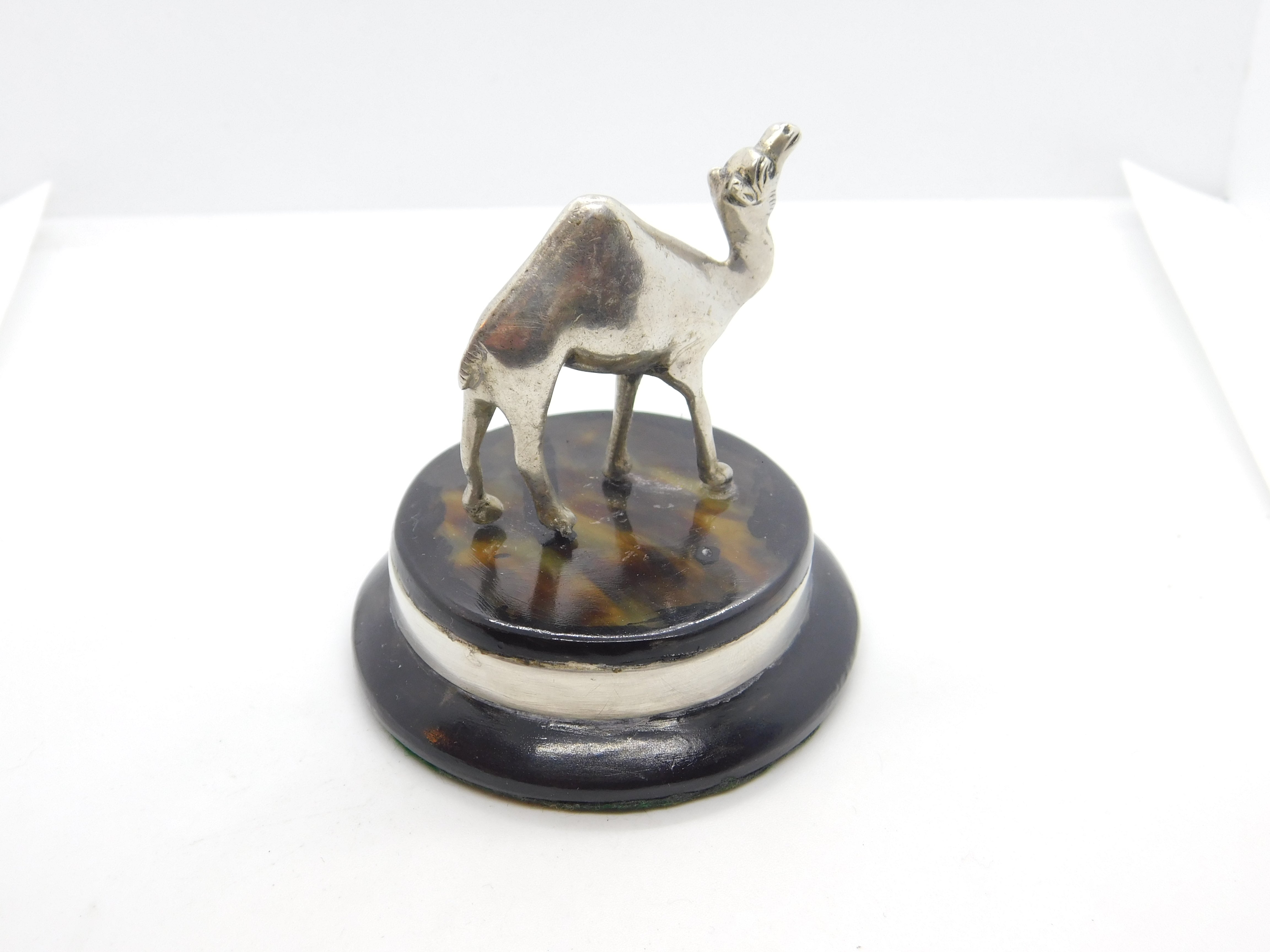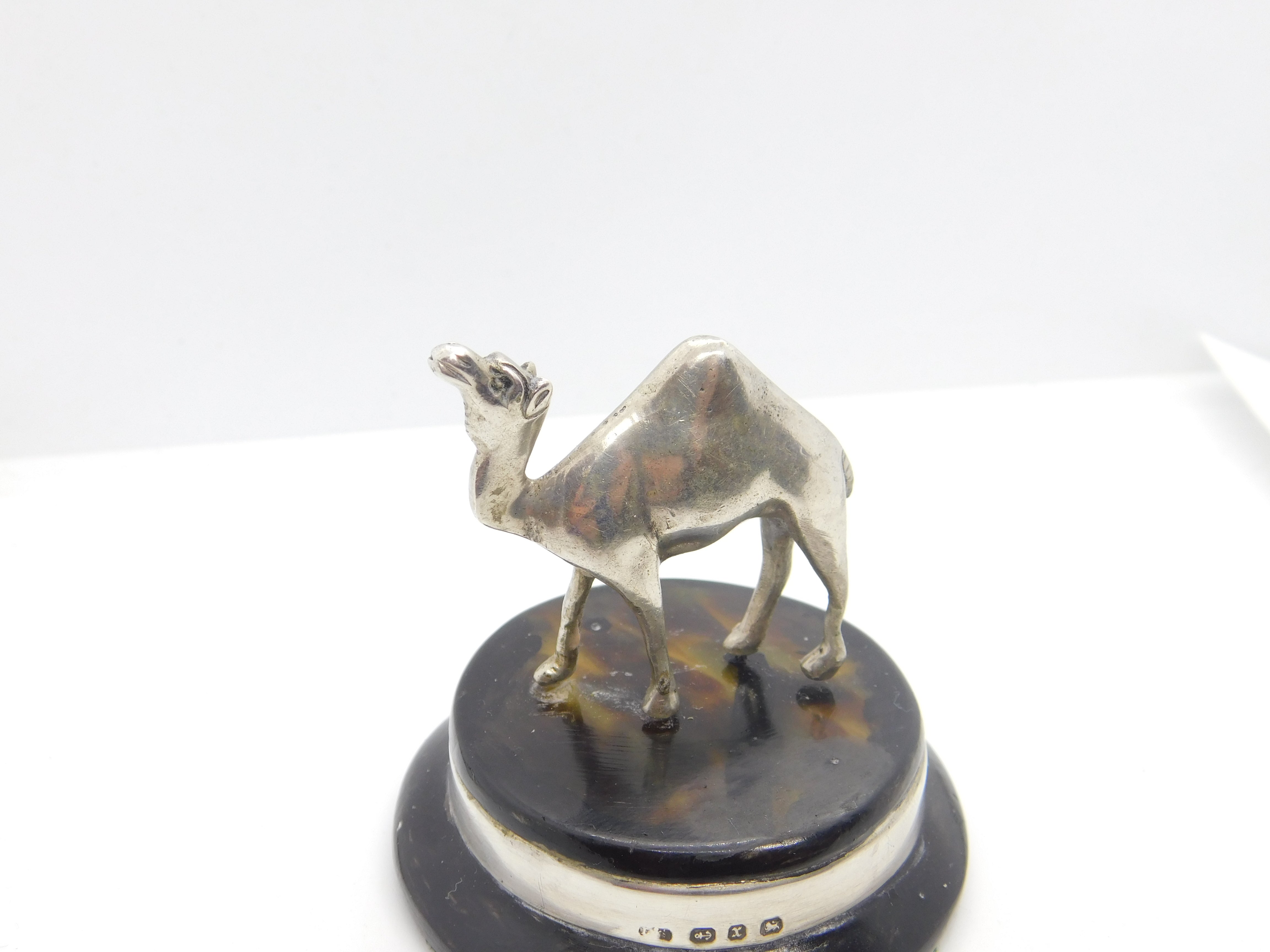 Victorian Cast Sterling Silver Camel on Wooden Plinth Antique 1897 Birmingham