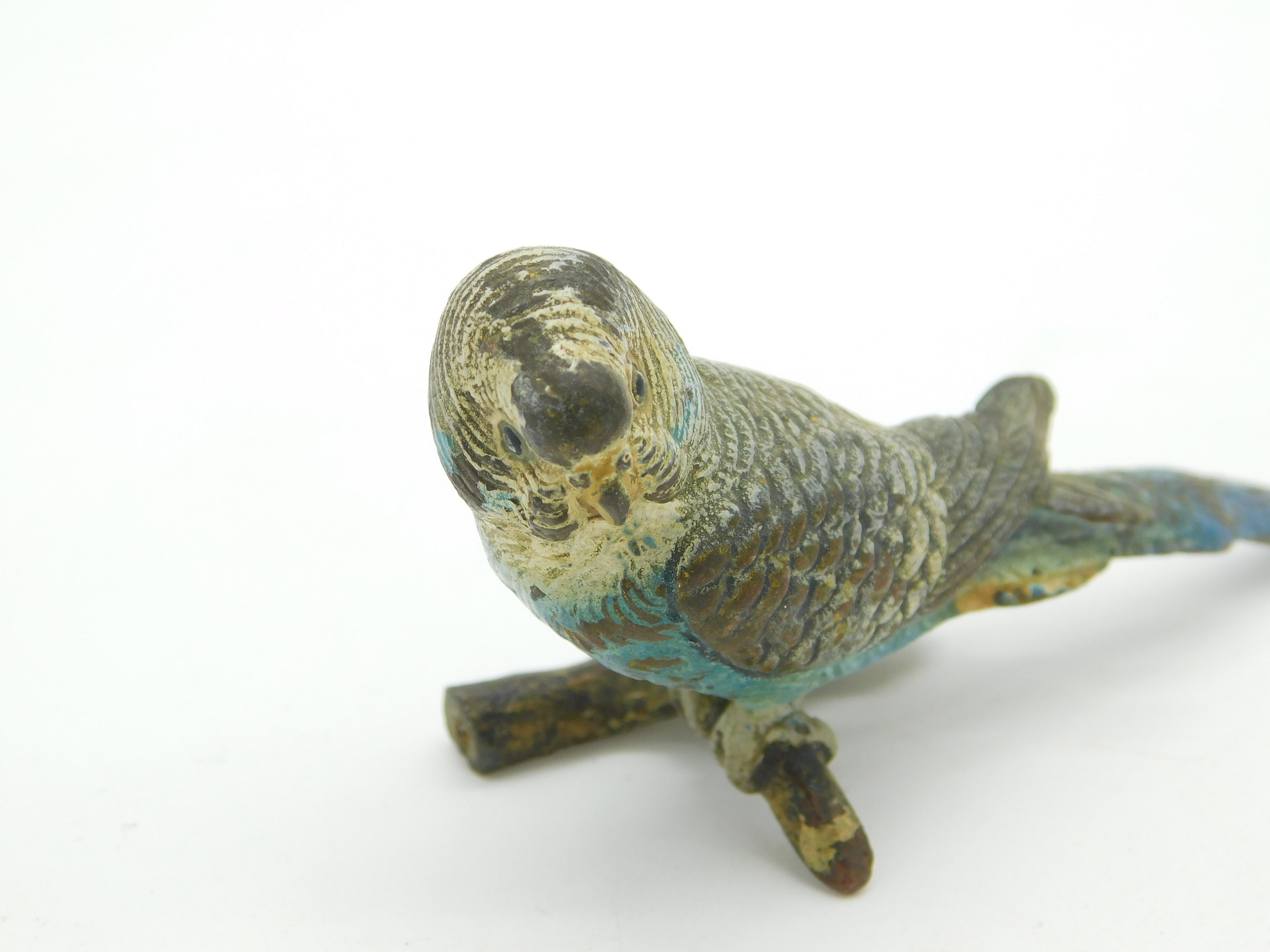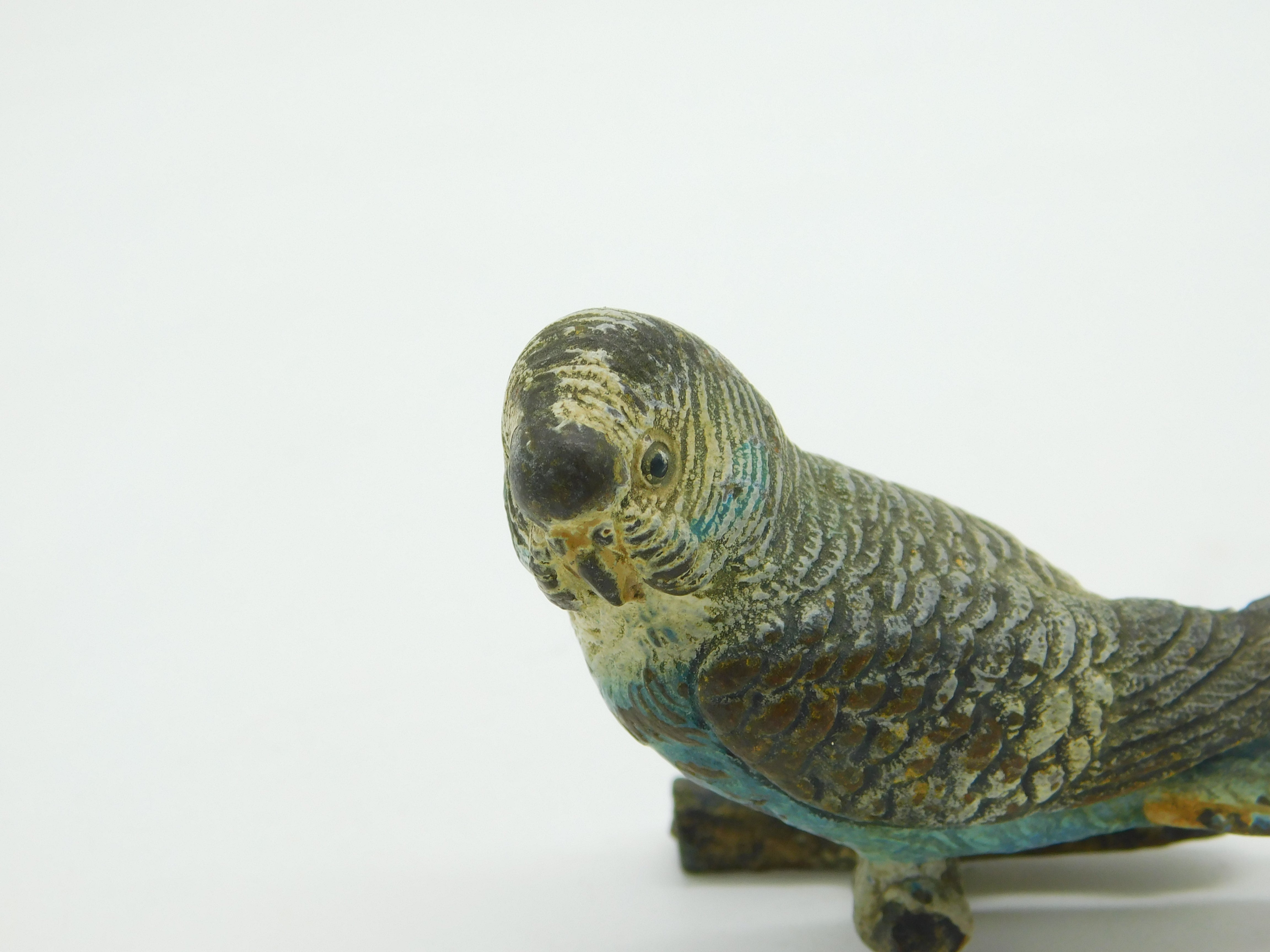 Victorian Cold Painted Vienna Bronze Blue Budgerigar Figure Antique c1860