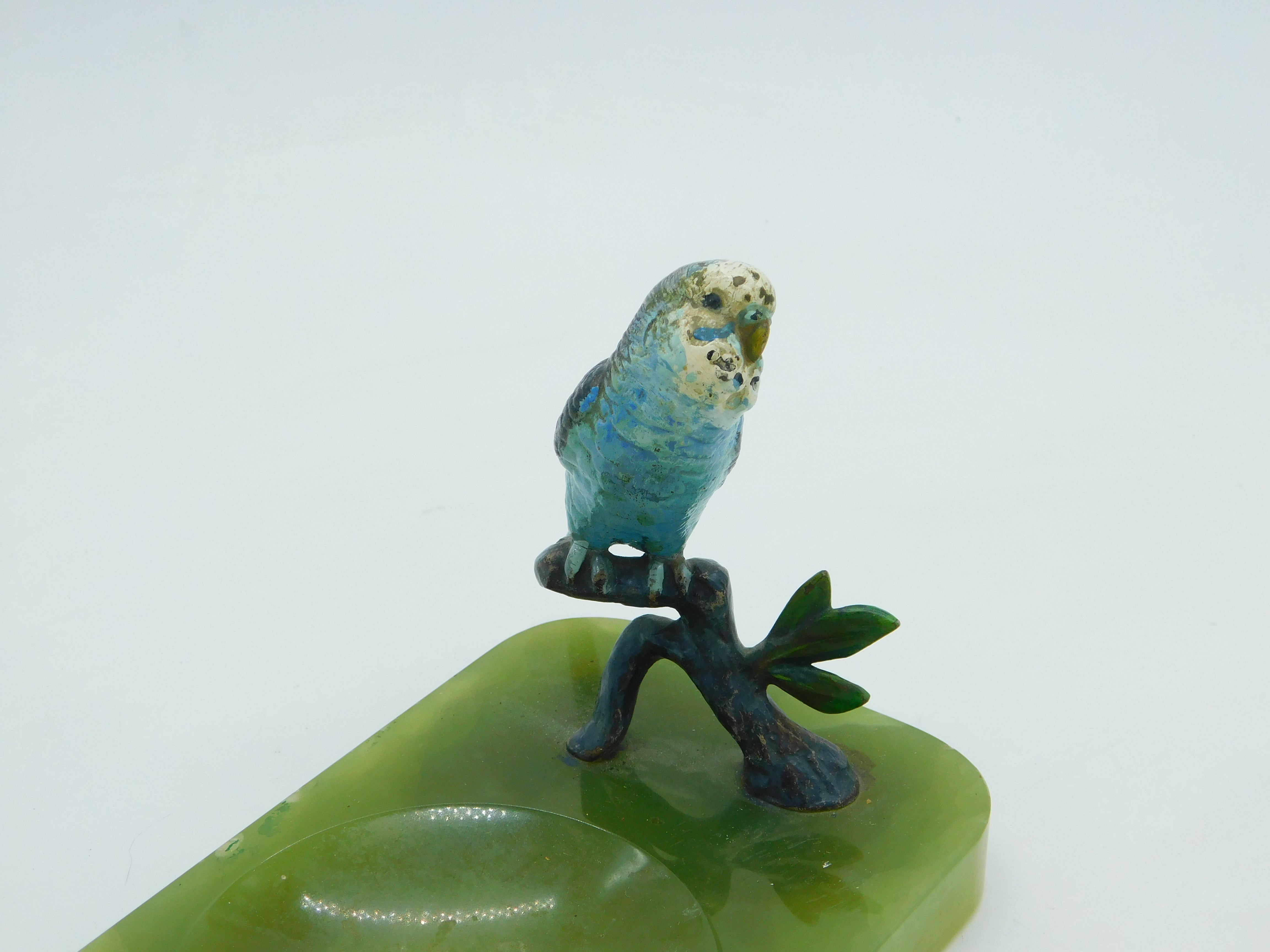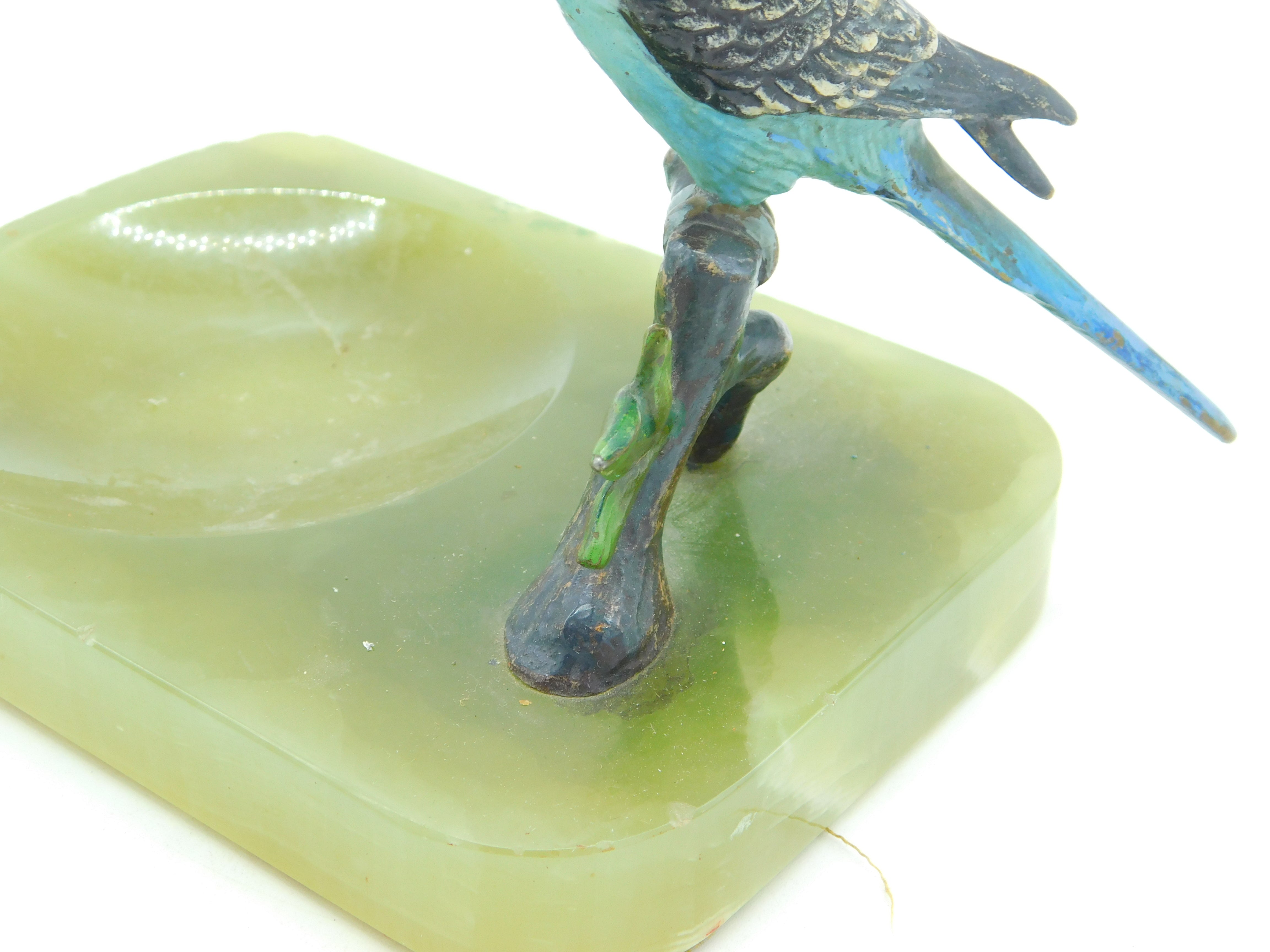 Victorian Cold Painted Vienna Bronze Budgie on Green Onyx Ashtray Antique c1860