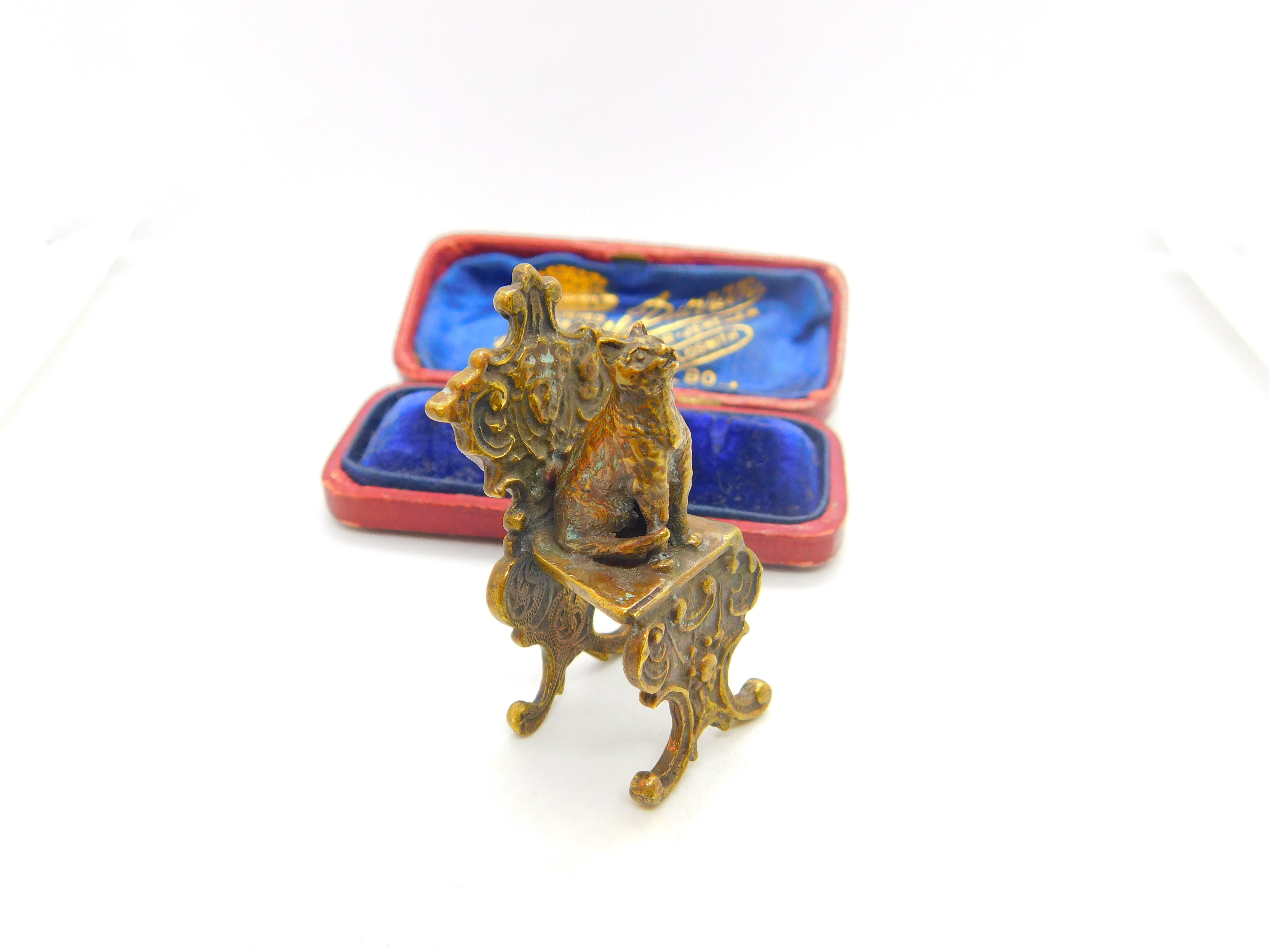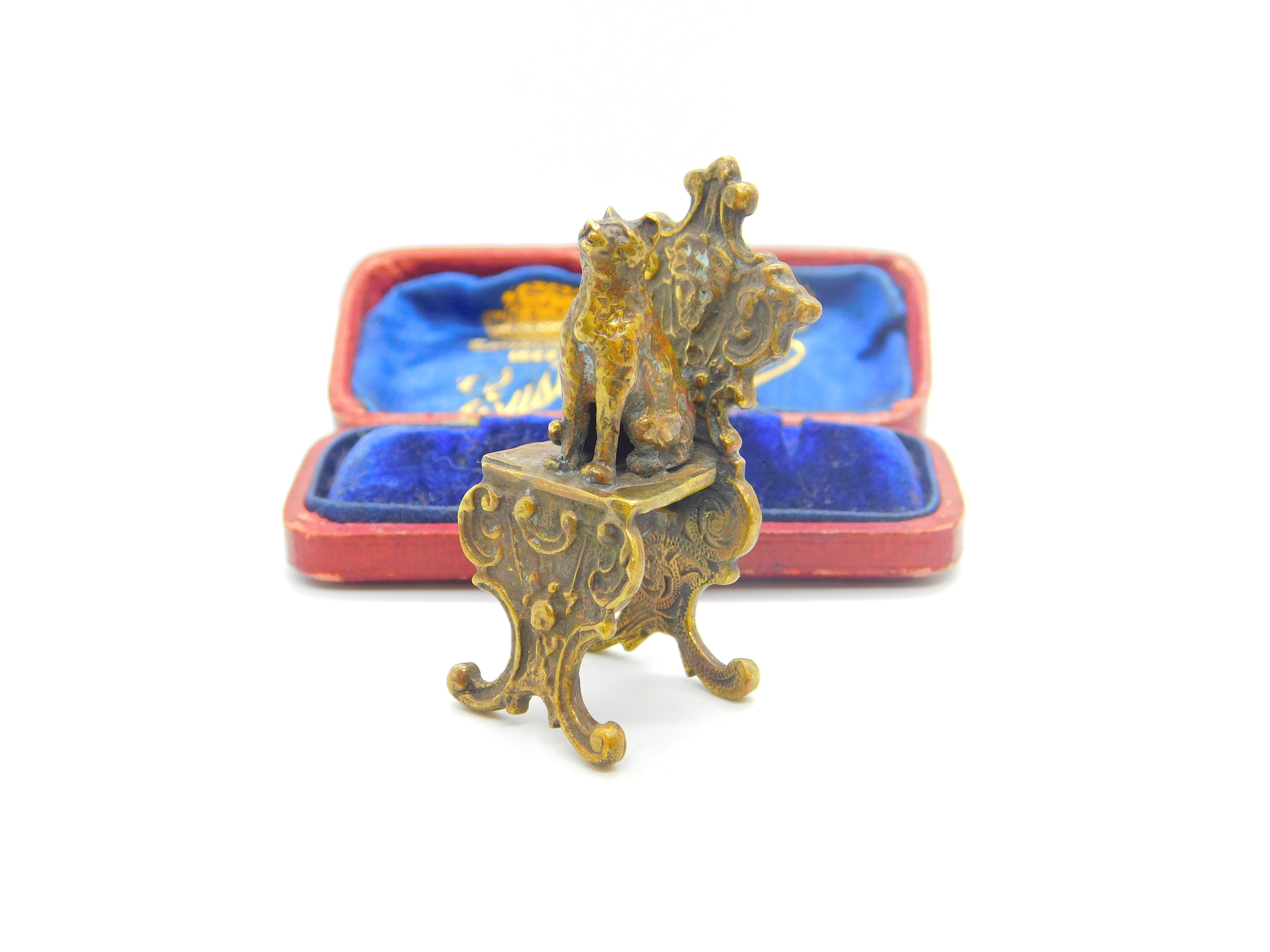Details: A fantastic and wonderfully designed antique Victorian cold painted vienna bronze with lovely detailing in the form of a cat sitting on a gilded throne c1860. This is a wonderful item that would make a perfect gift or addition to any collection. The BOX pictured is for PRESENTATION ONLY and is NOT included in the listings but used to frame the pictures unless specifically stated otherwise.