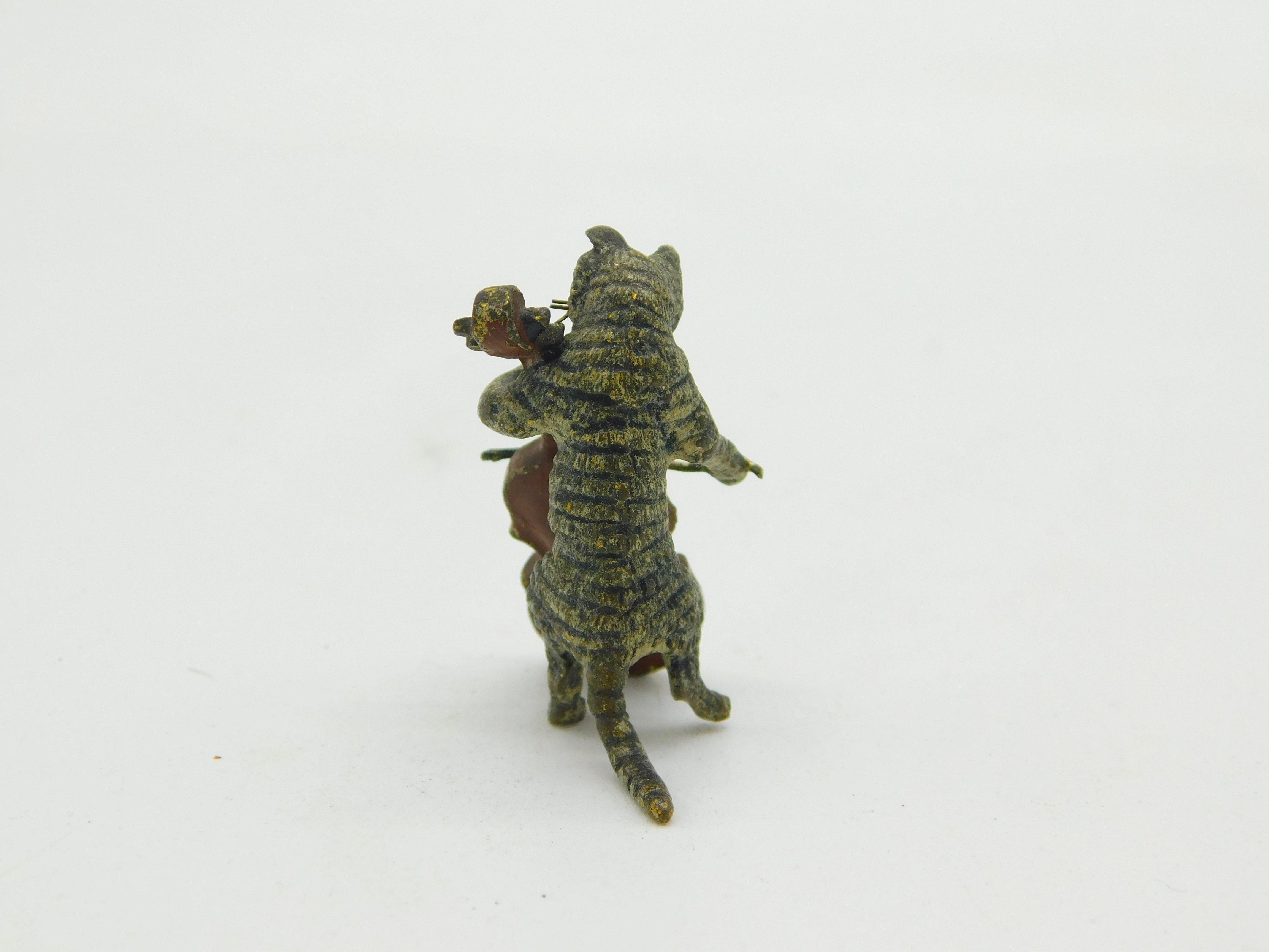 Victorian Cold Painted Vienna Bronze Cat Playing Cello Miniature Figure Antique c1860