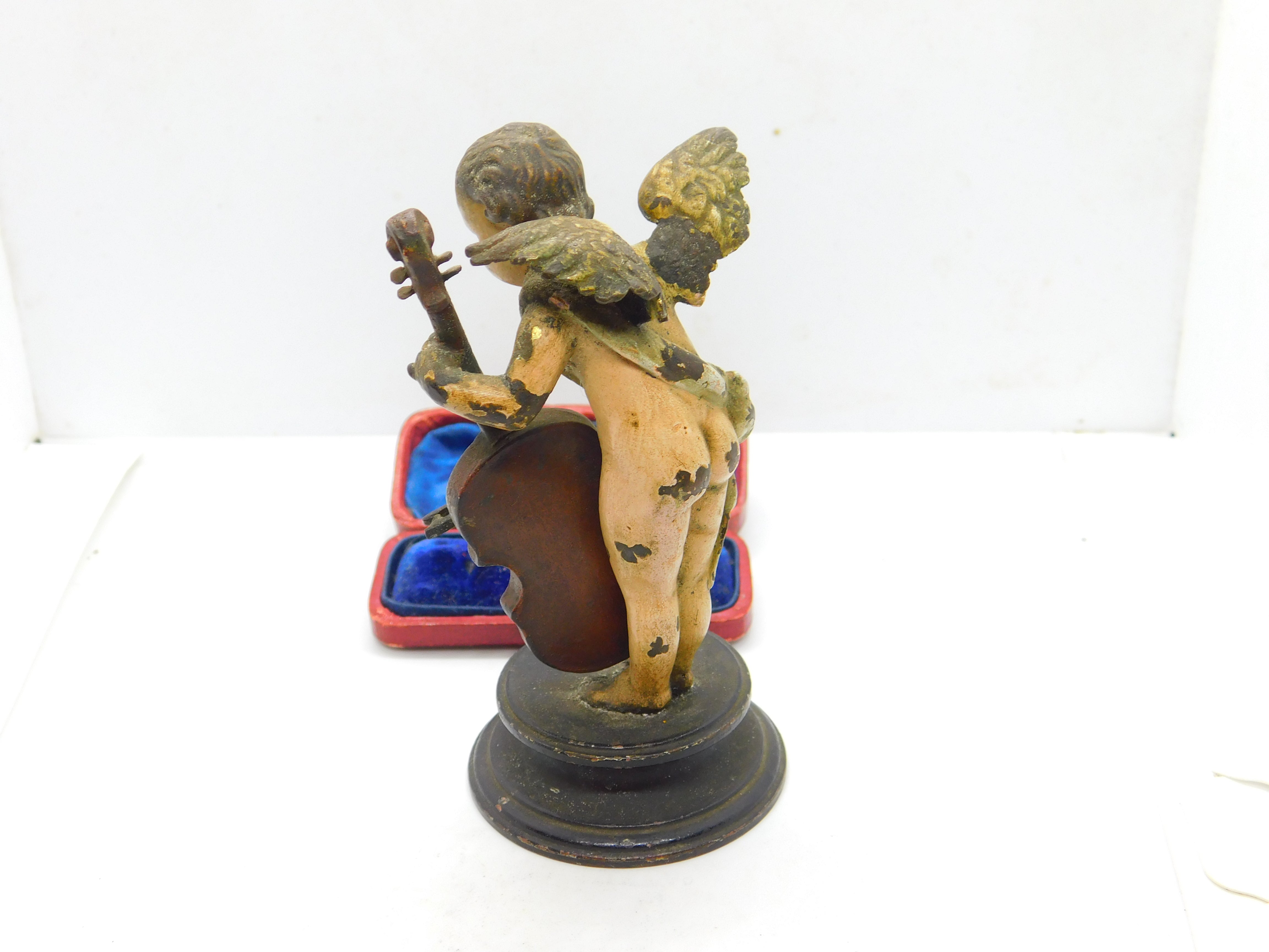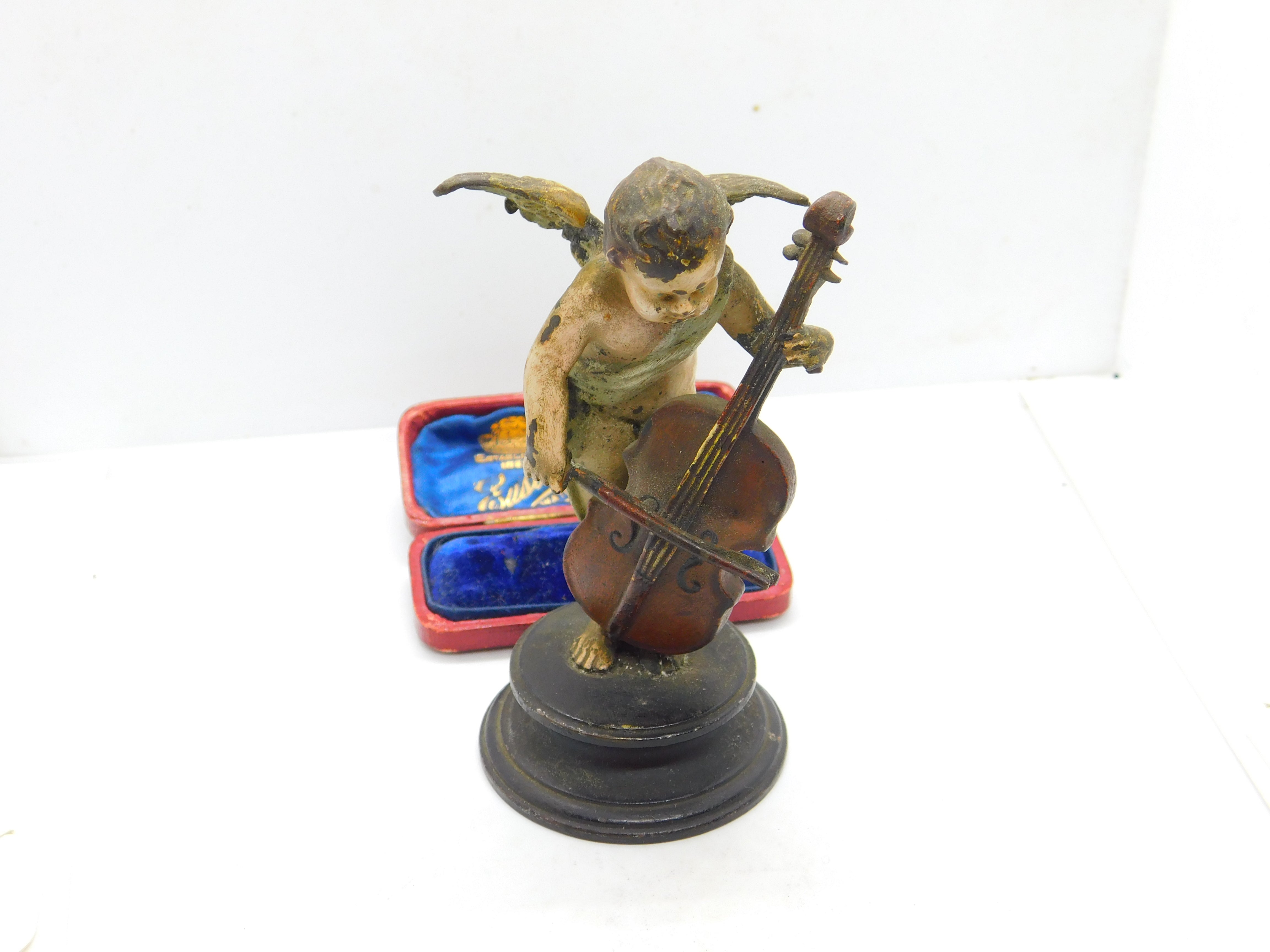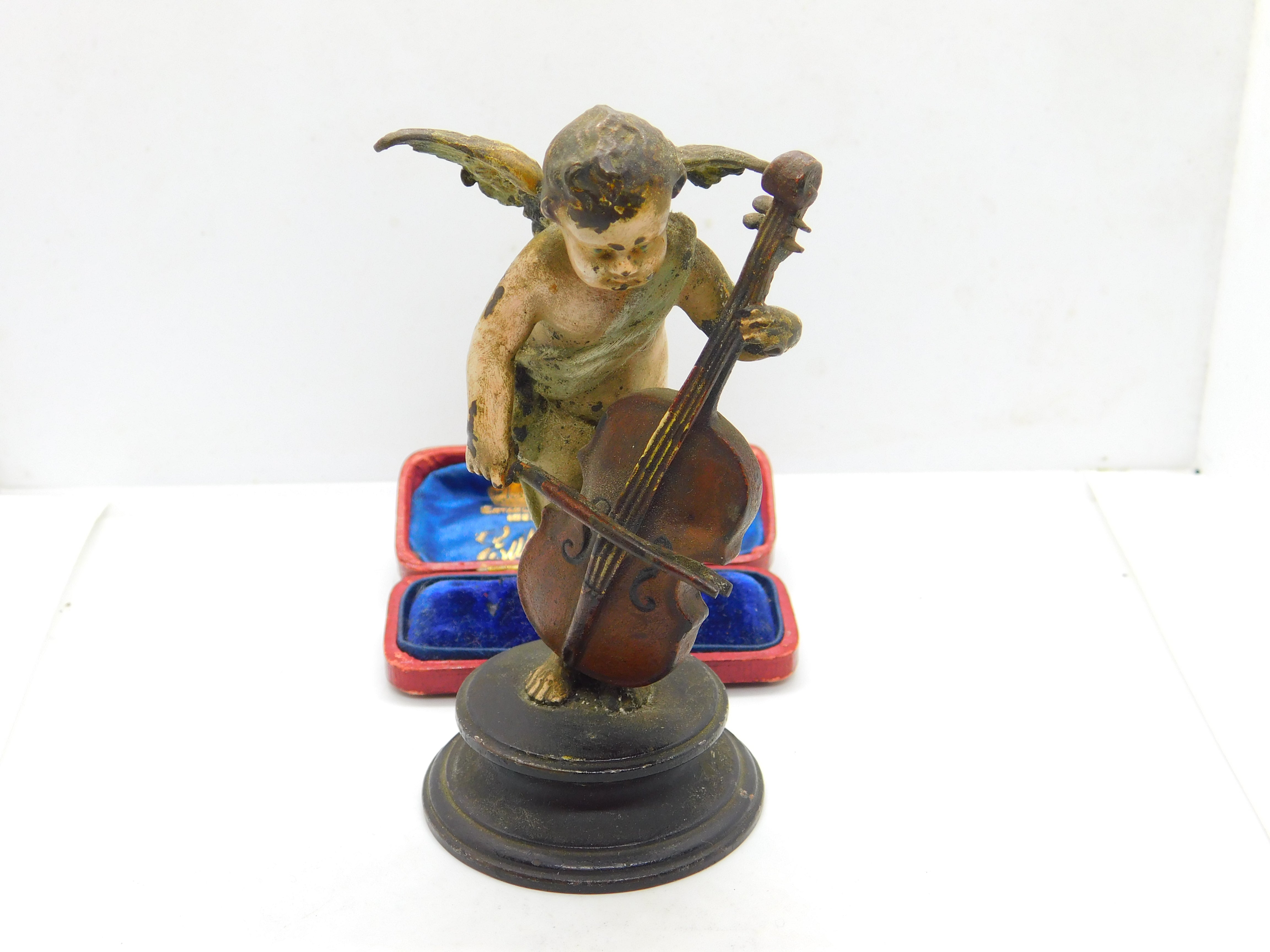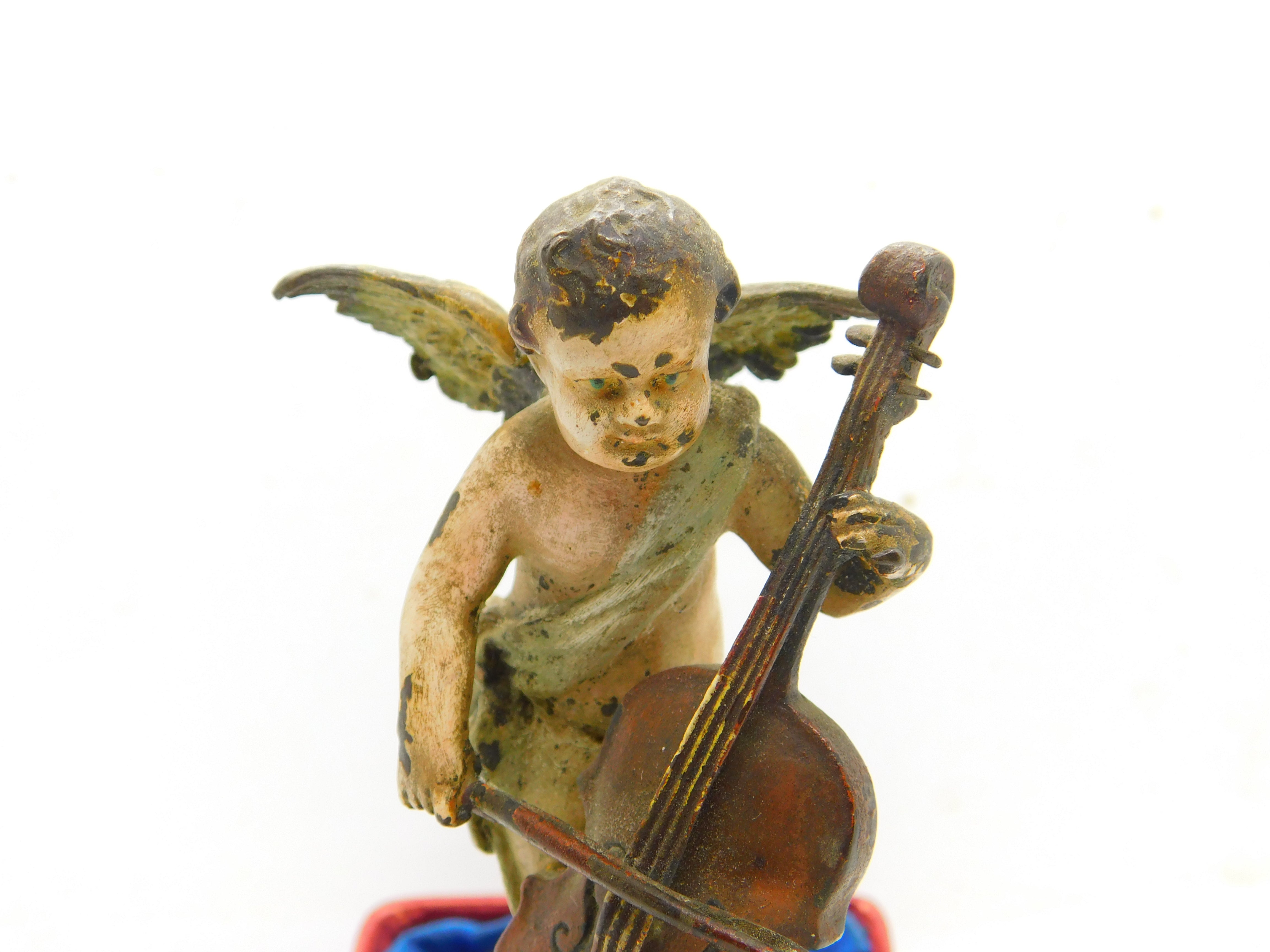 Victorian Cold Painted Vienna Bronze Cherub Playing Cello Sculpture Antique 1860
