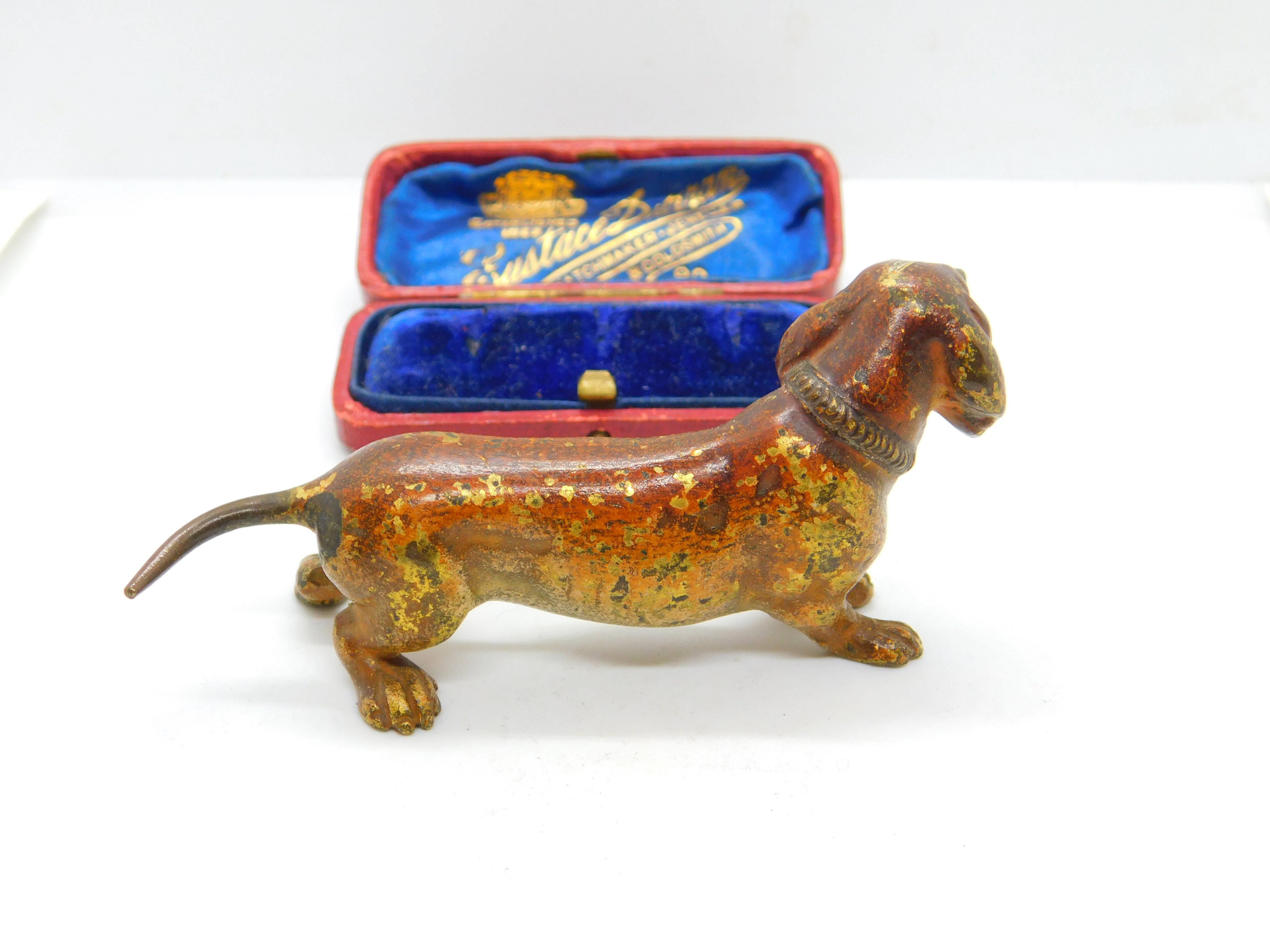 Victorian Cold Painted Vienna Bronze Dachshund Dog Sculpture Antique c1860