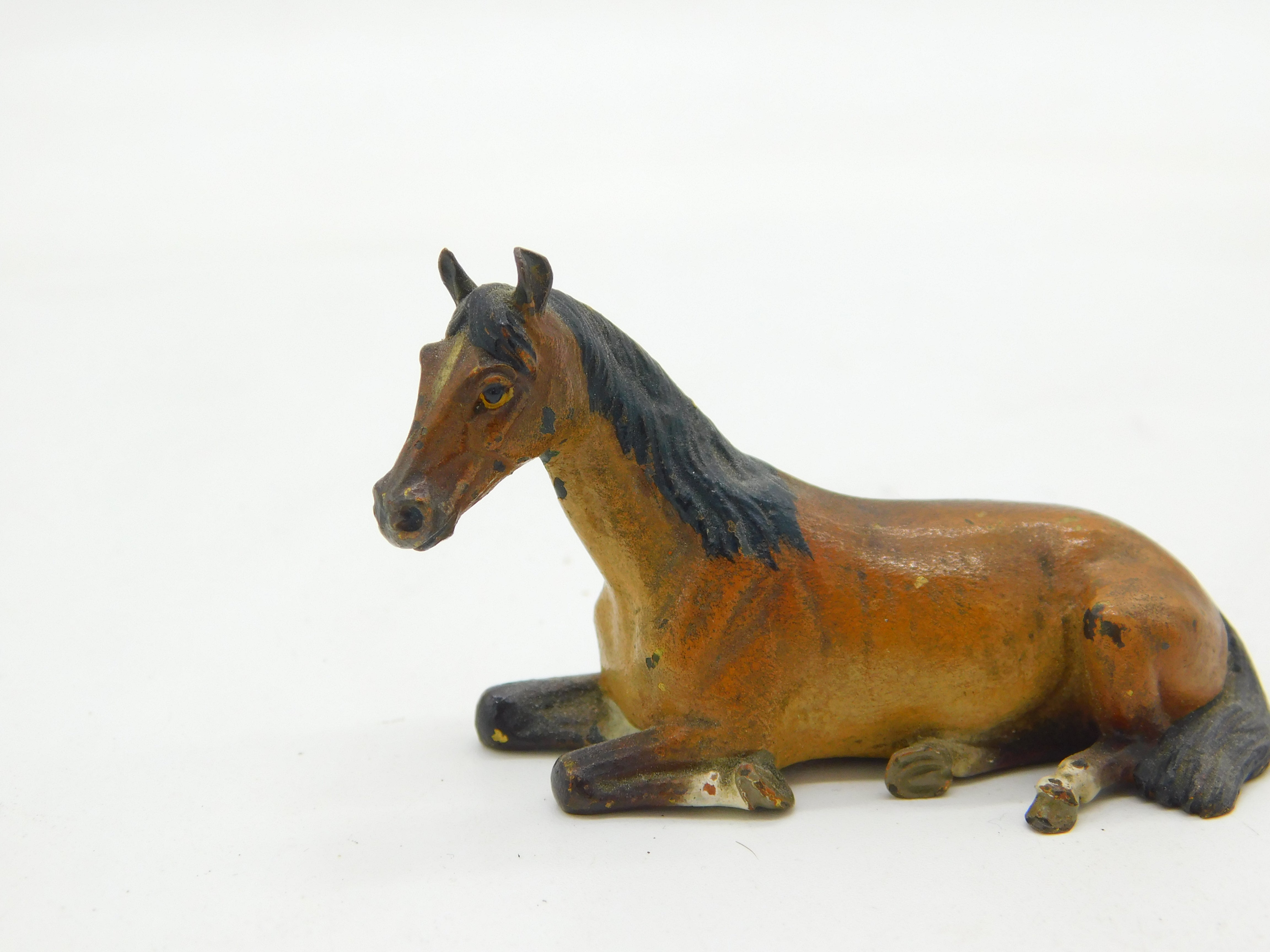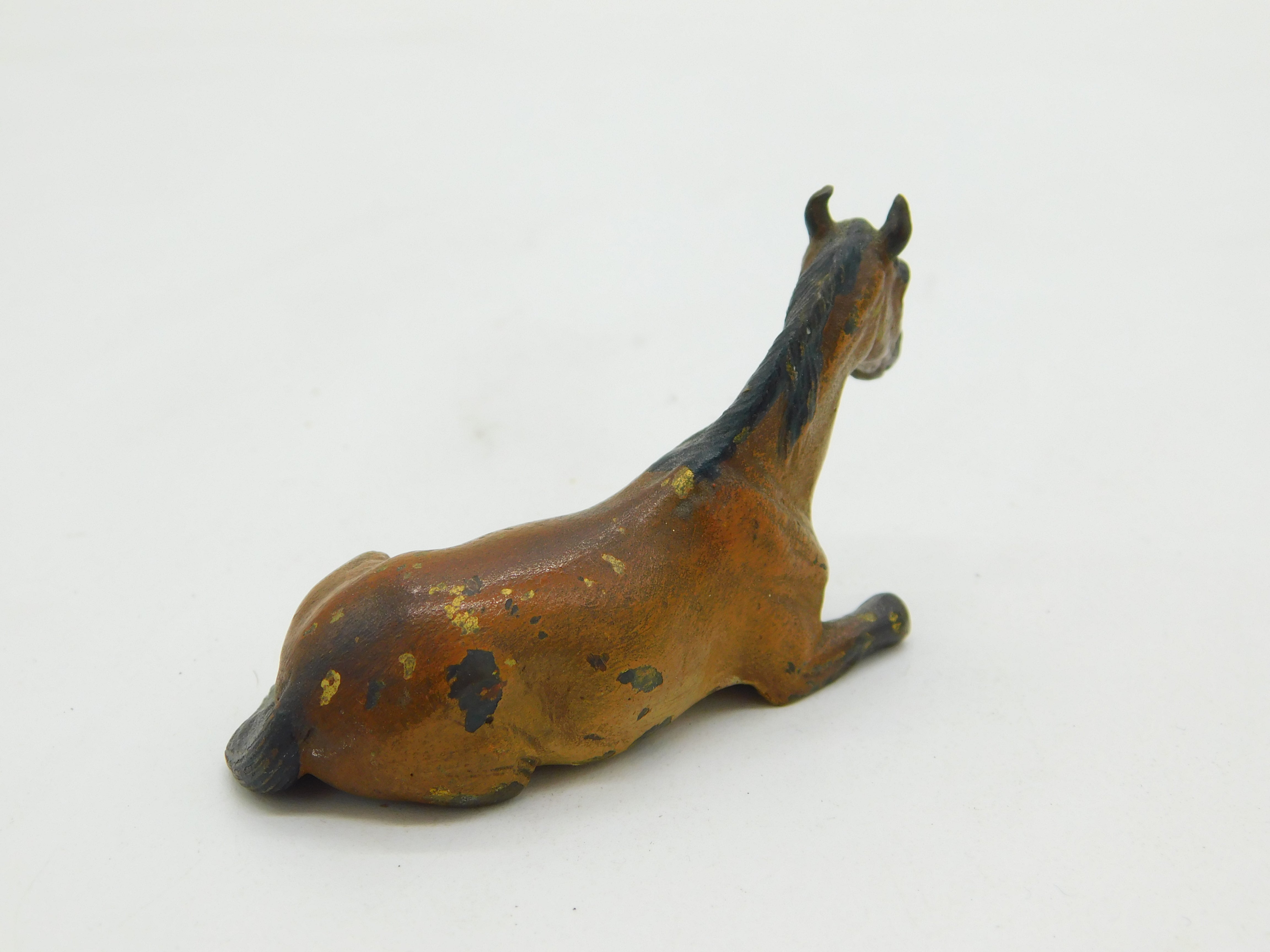 Victorian Cold Painted Vienna Bronze Resting Horse Figurine Ornament Antique c1860