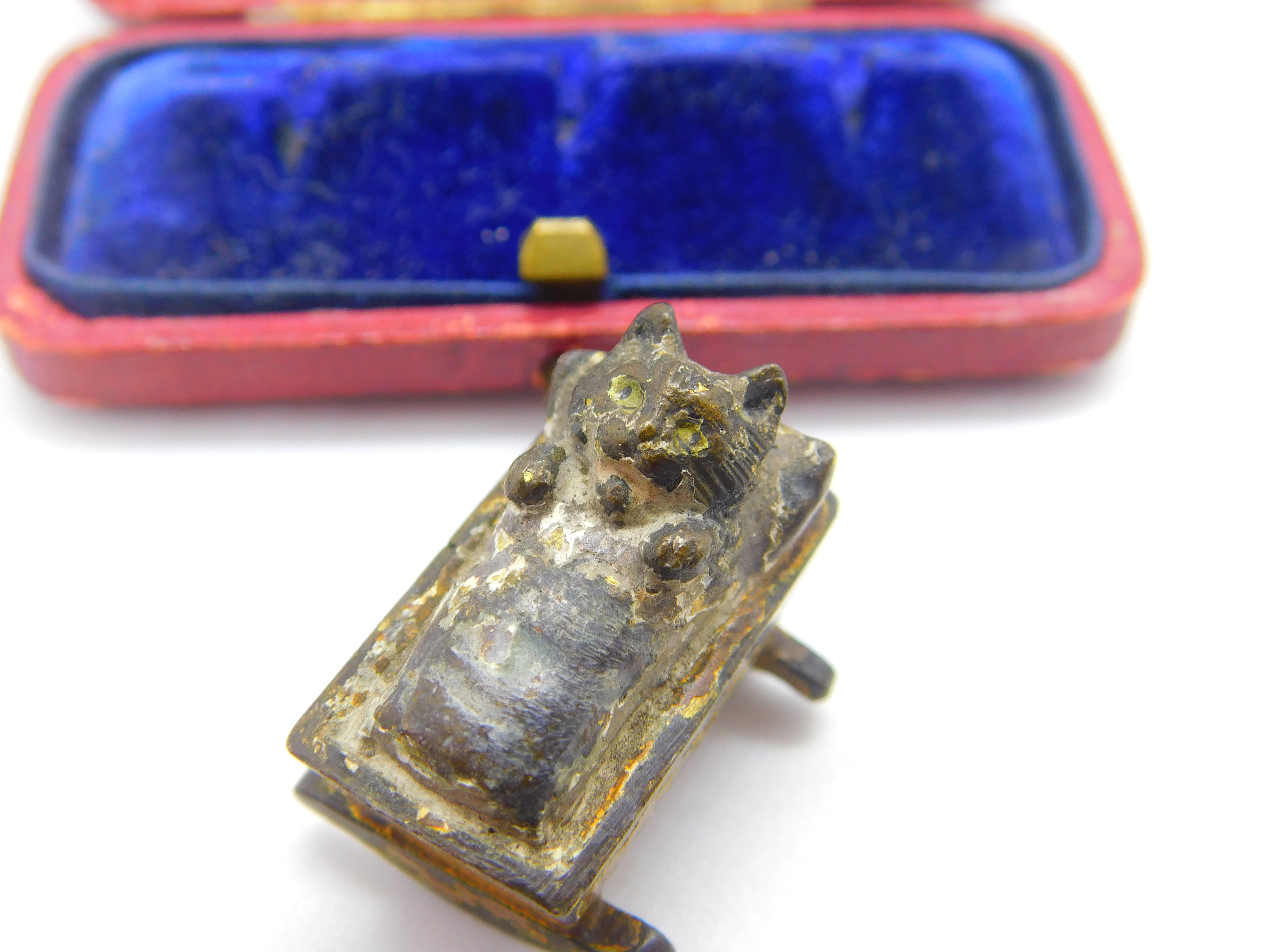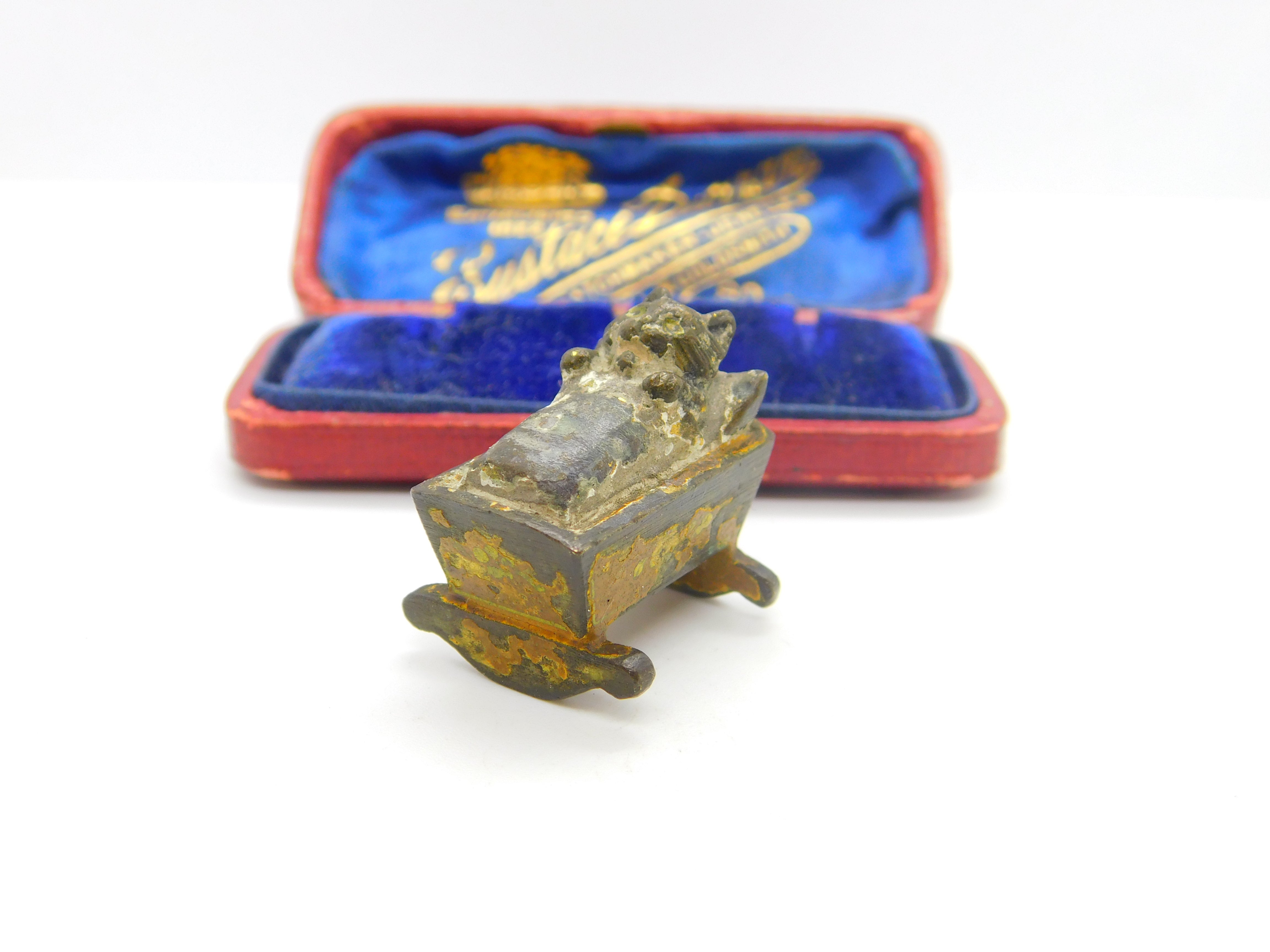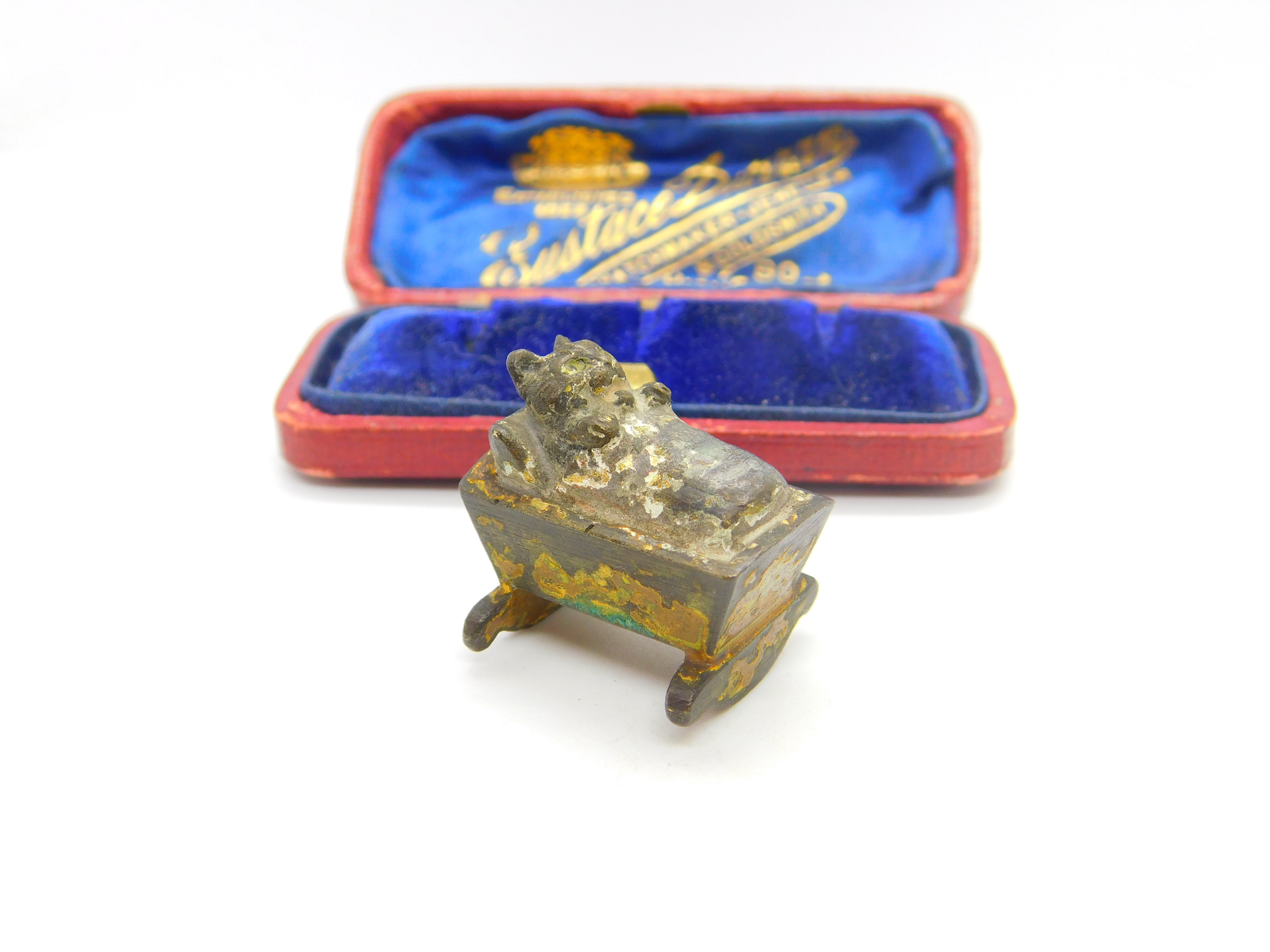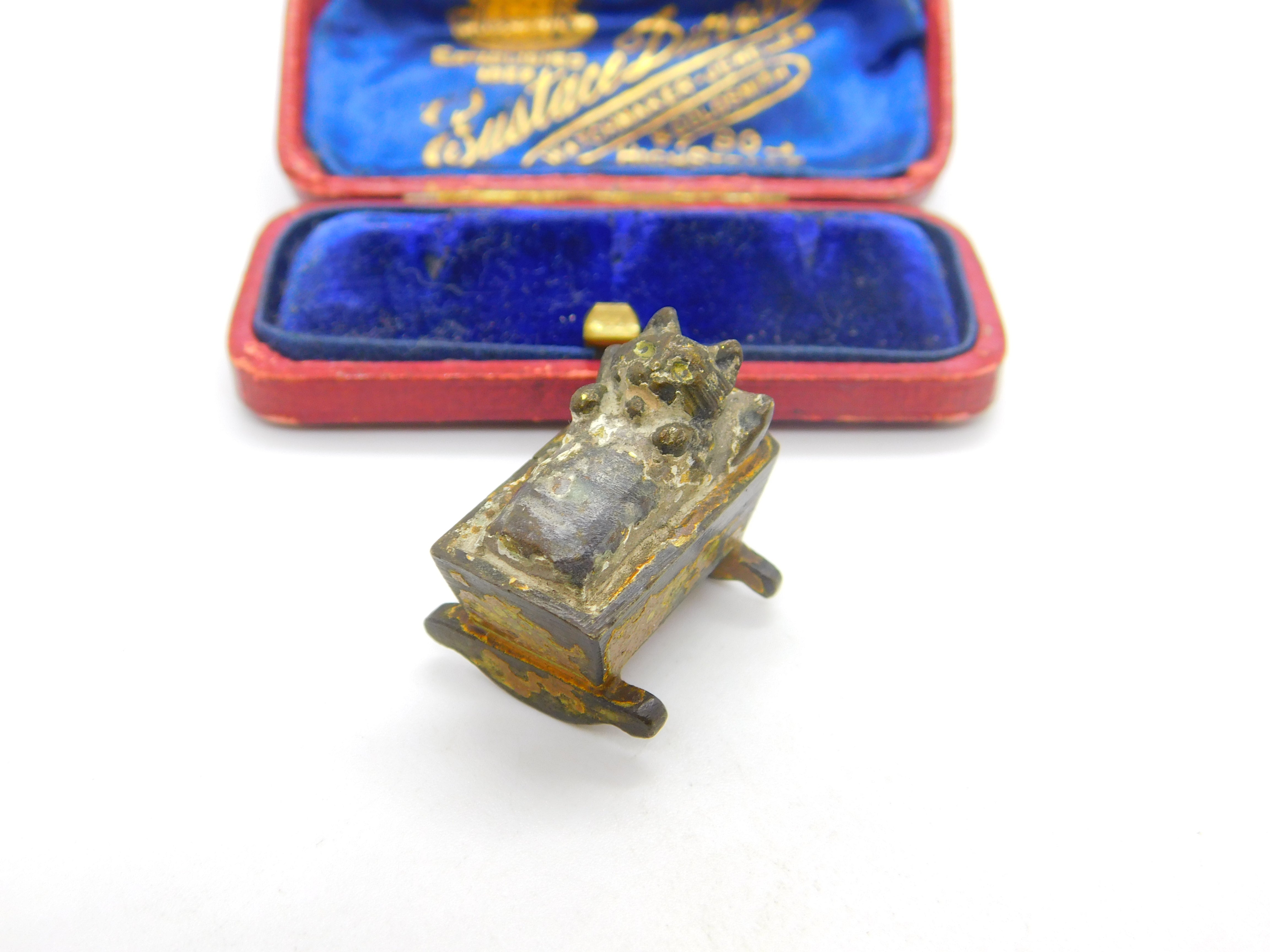 Victorian Cold Painted Vienna Bronze Small Cat in the Cradle Figure Antique 1860
