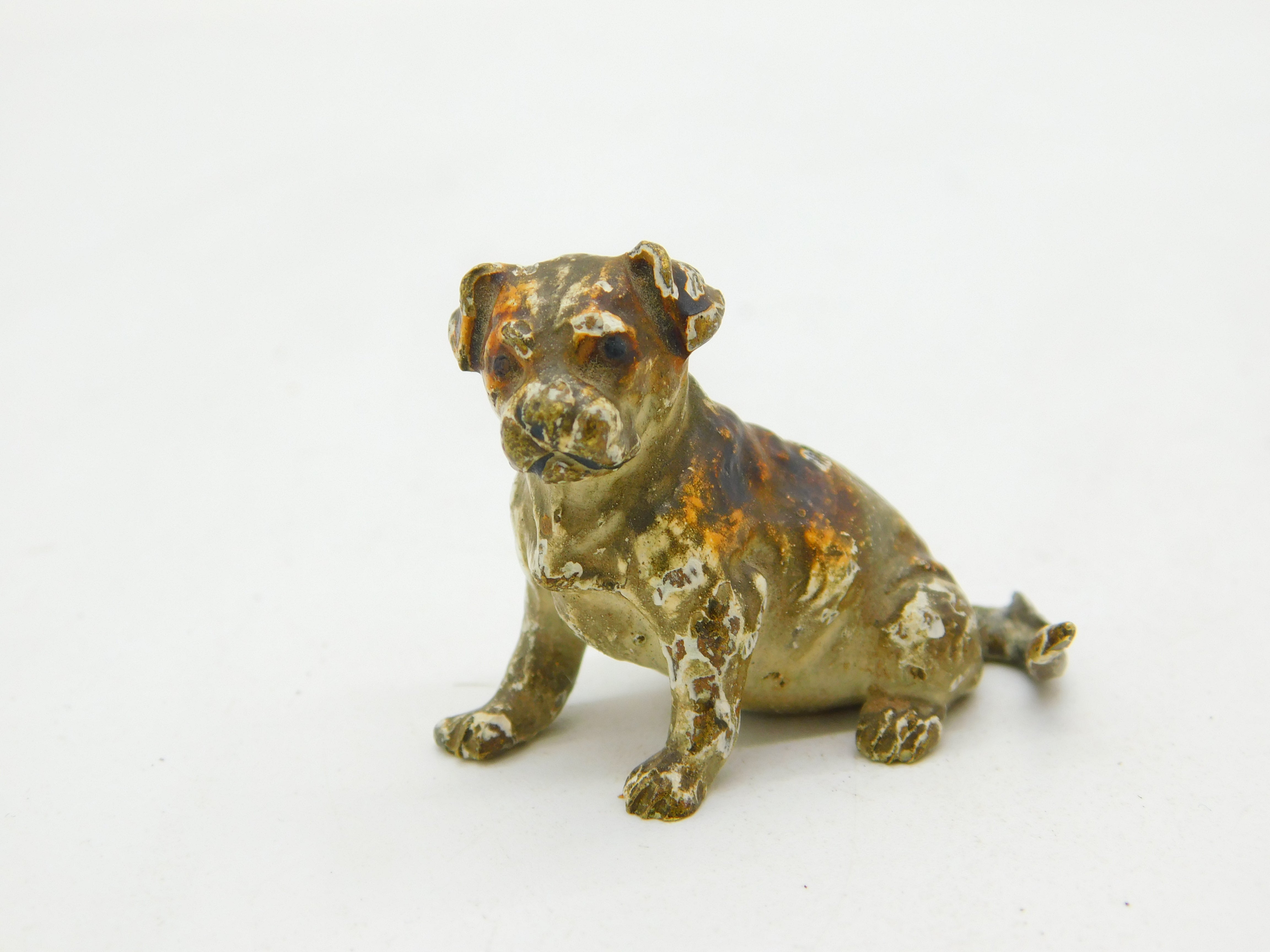 Victorian Cold Painted Vienna Bronze Terrier Dog Miniature Figure Antique c1860